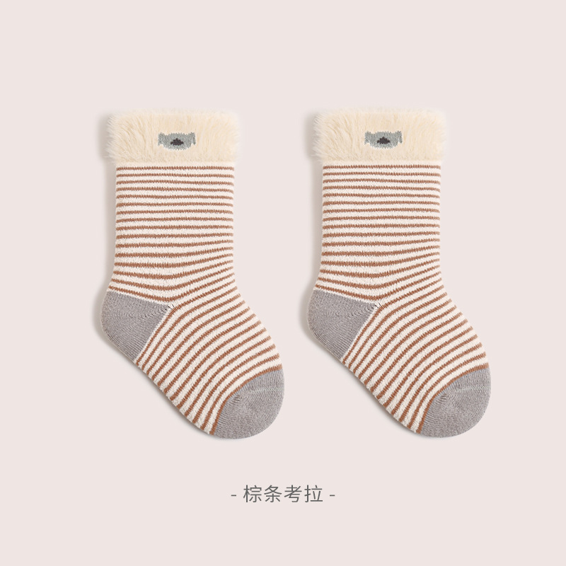 가을 겨울 두꺼운 아기 양말 신생아 A급 중목 양말 밍크 벨벳 어린이 무봉제 루즈핏 양말스토어 가기