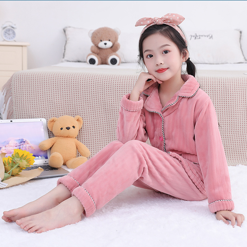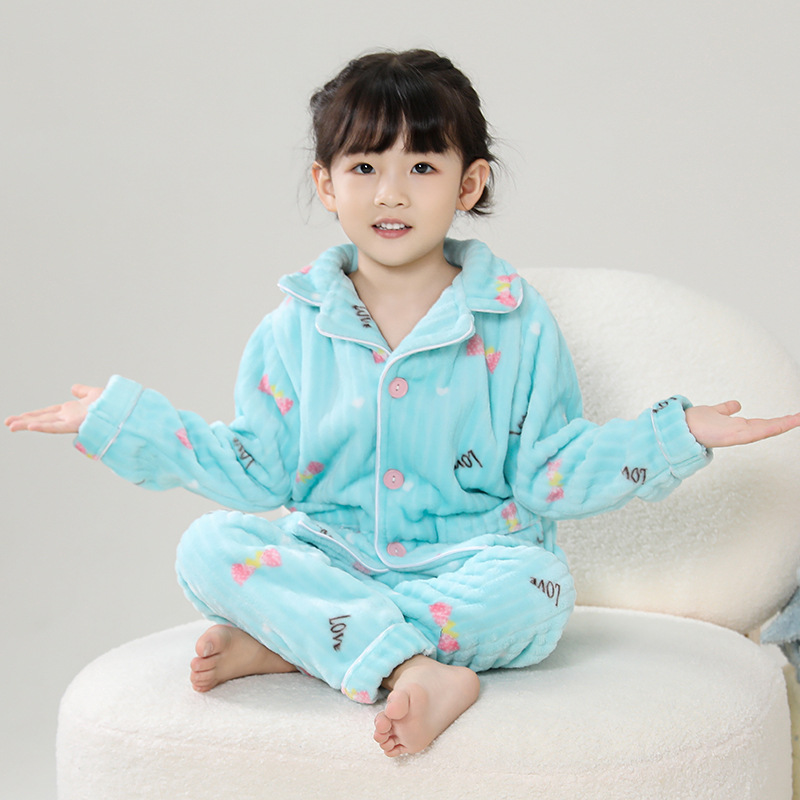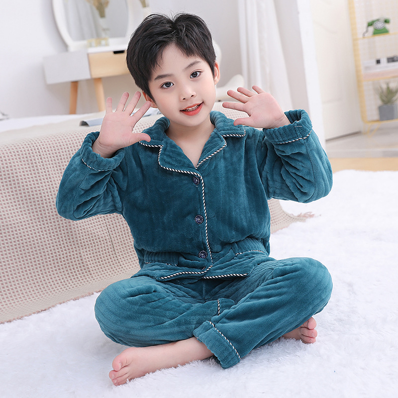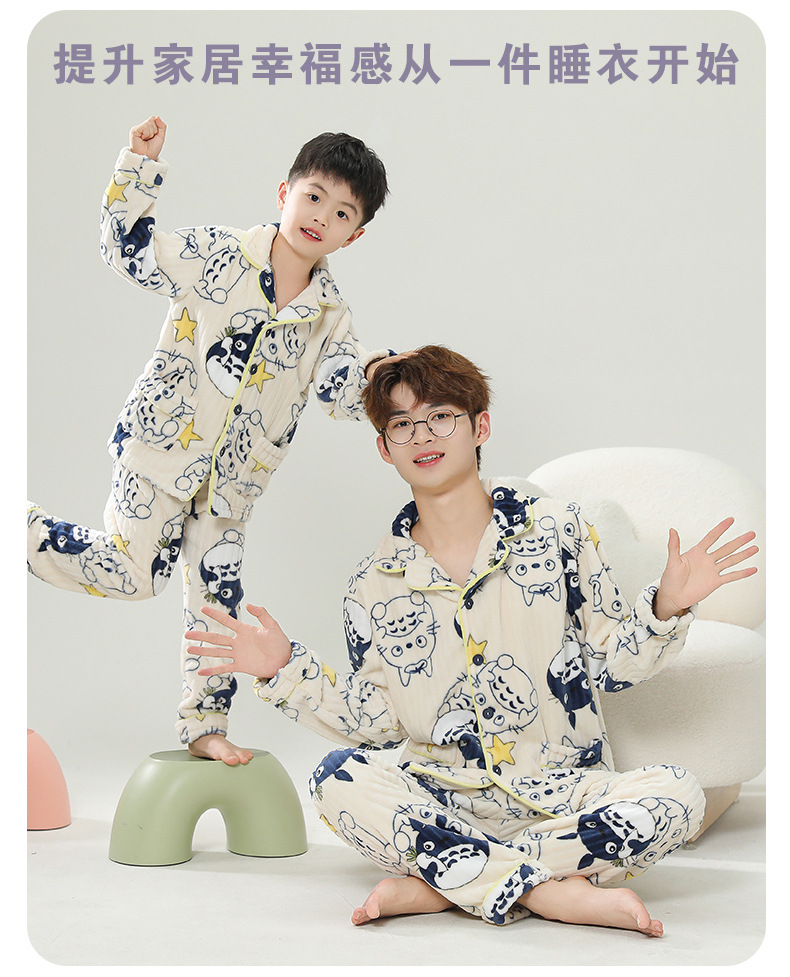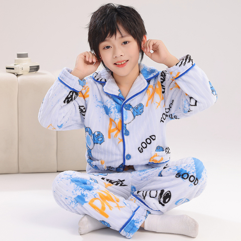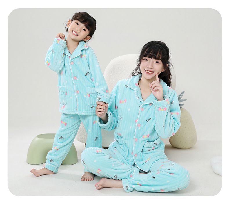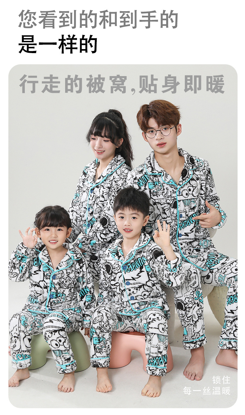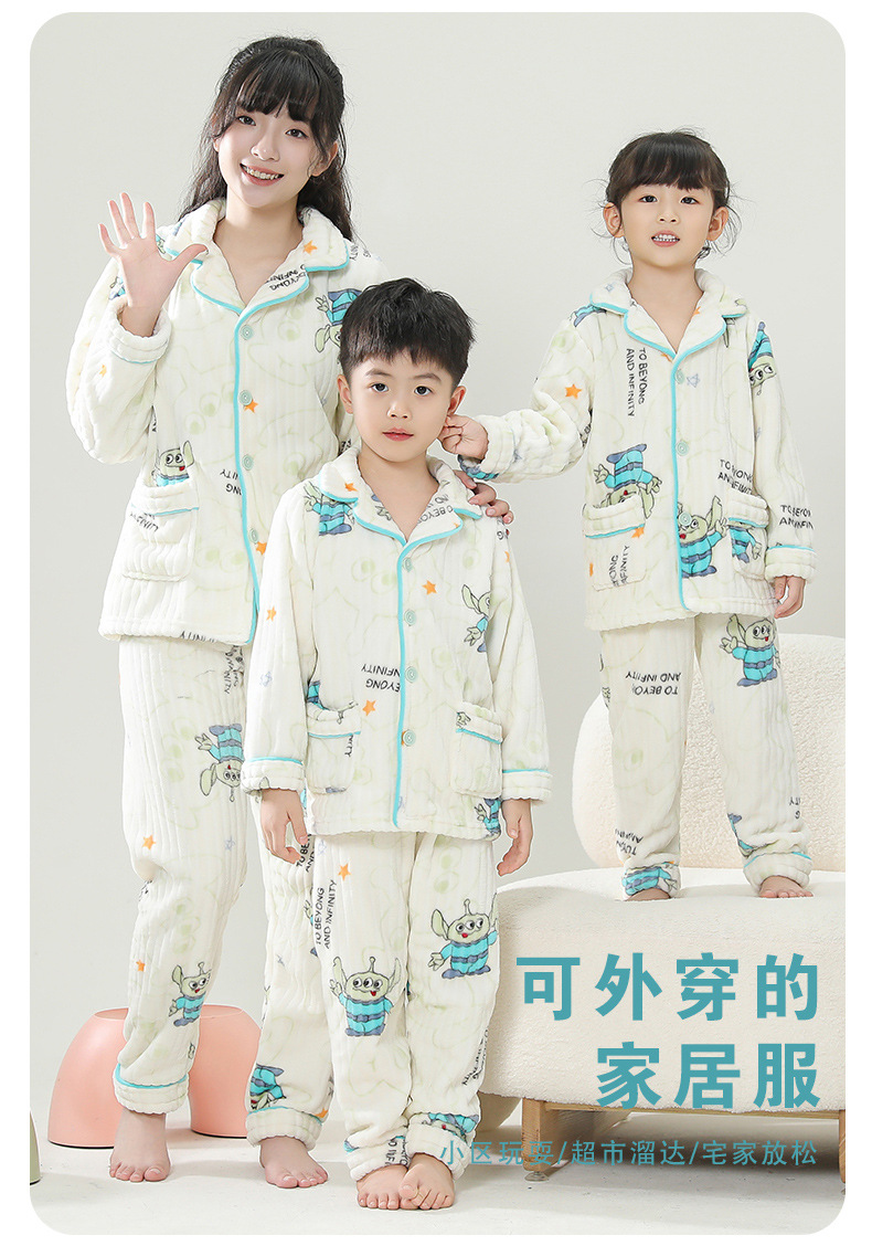 플란넬 파자마 가을과 겨울 어린이 홈 의류 산호 양털 남녀 남녀 한 세대 세트