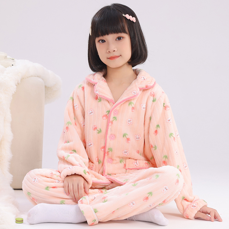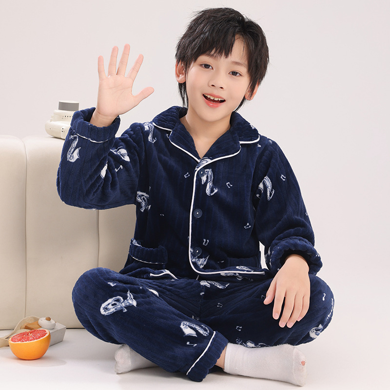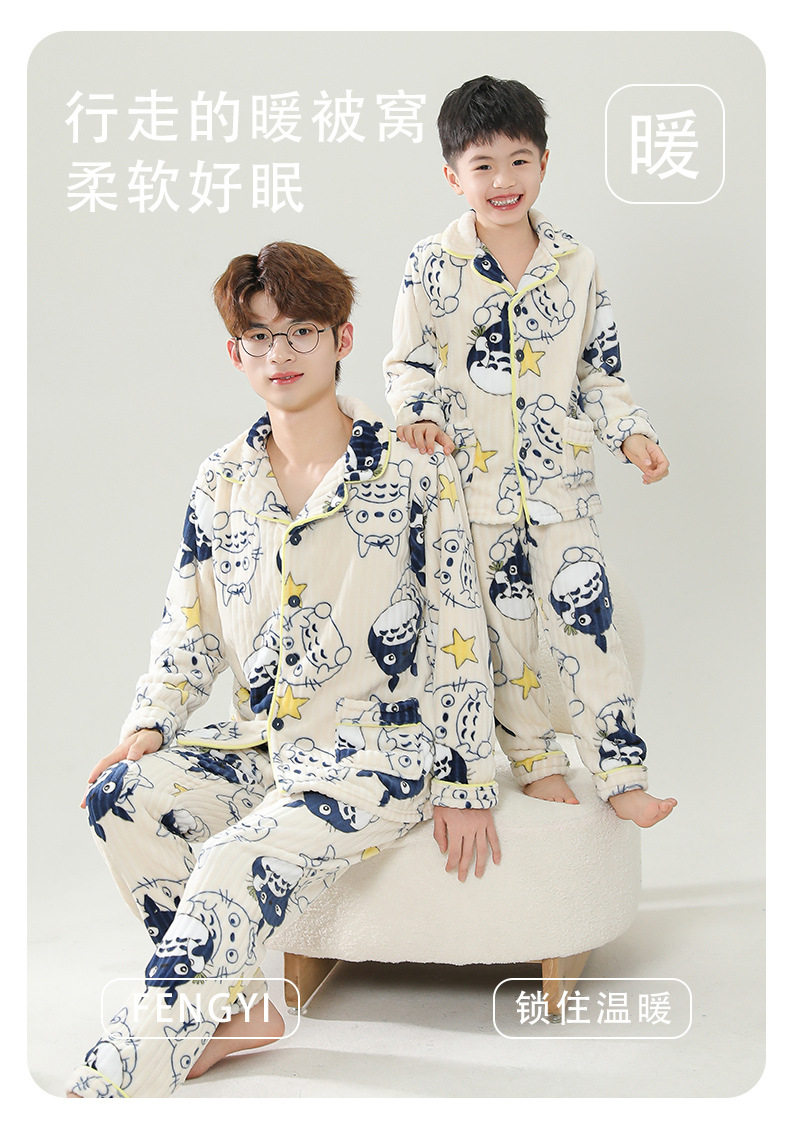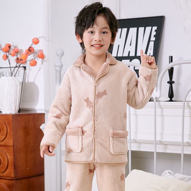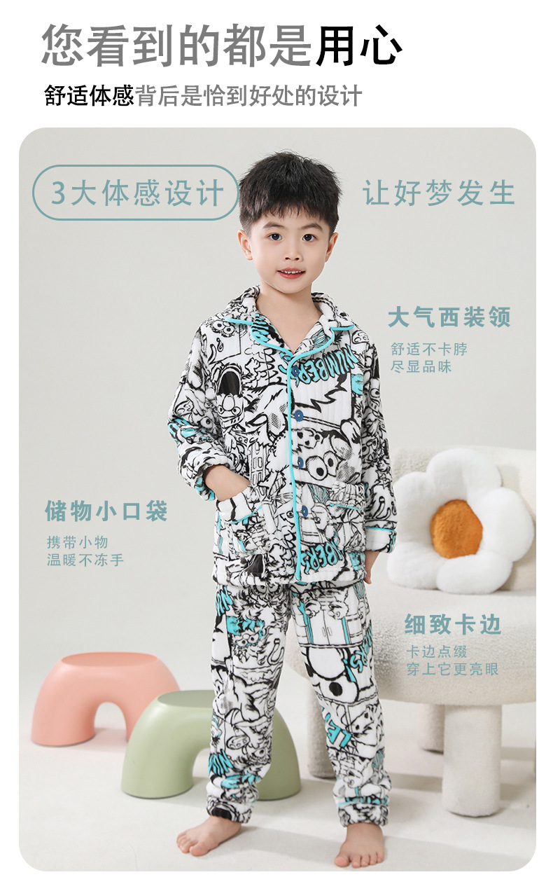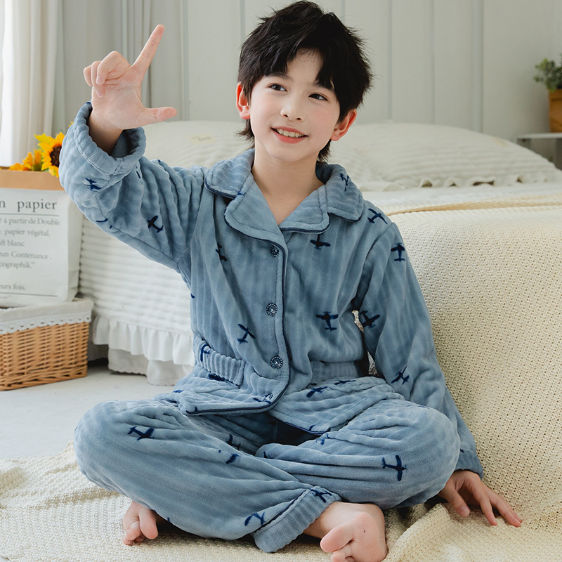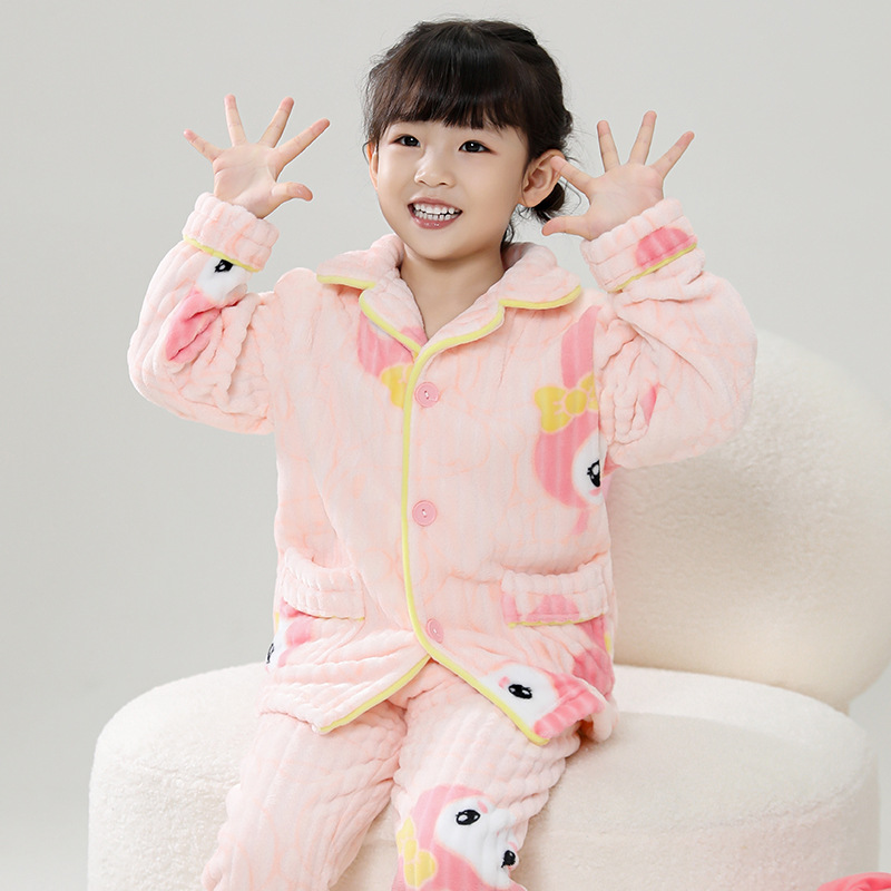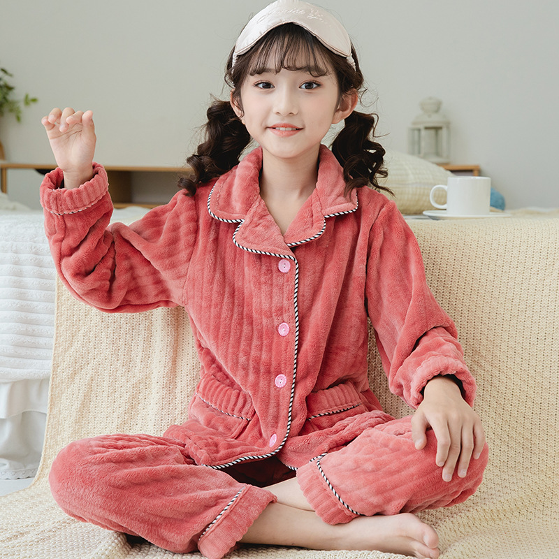 플란넬 파자마 가을과 겨울 어린이 홈 의류 산호 양털 남녀 남녀 한 세대 세트