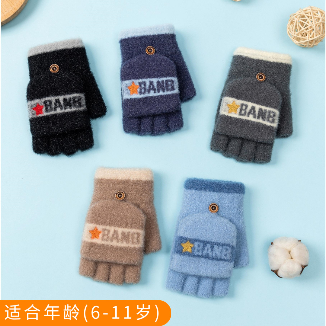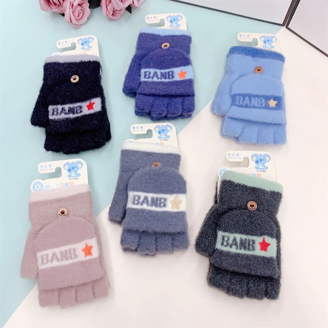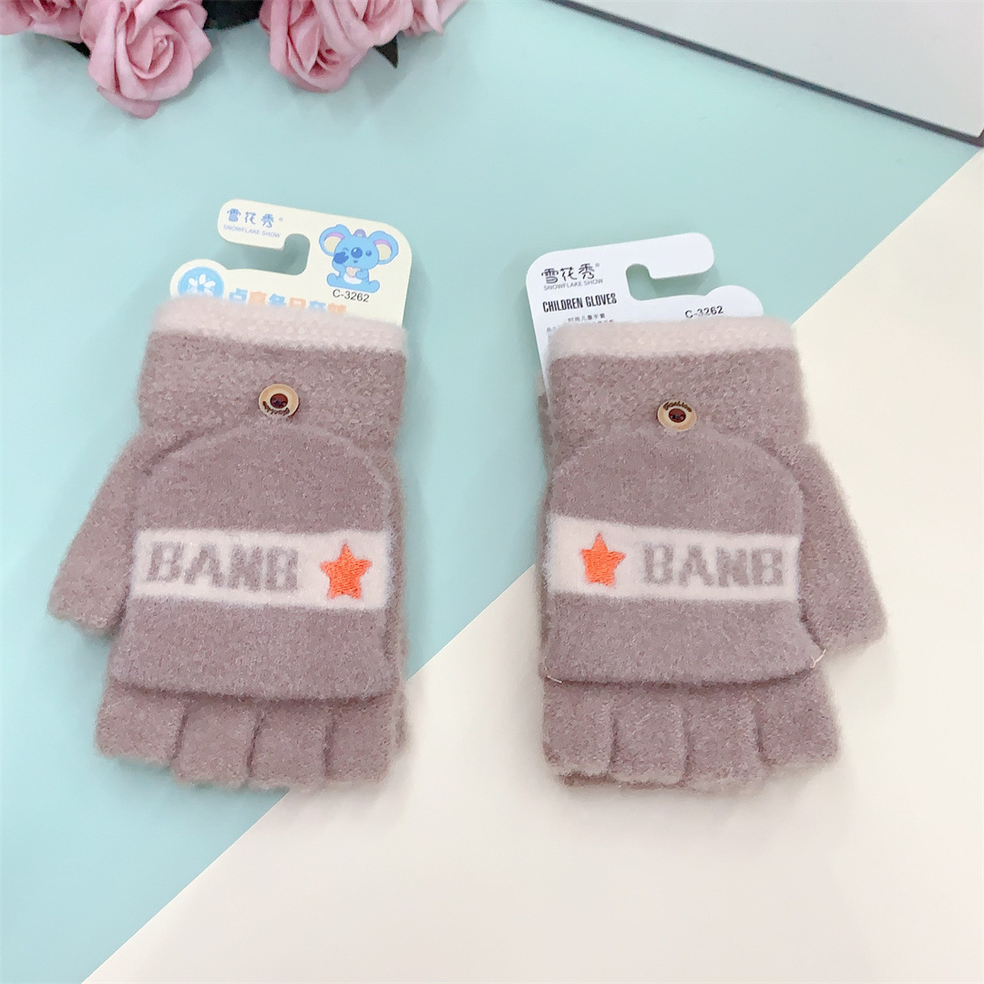 설화수 겨울 따뜻한 어린이용 귀여운 만화 캐릭터 플립형 니트 만능 학생용 글쓰기 장갑스토어 가기