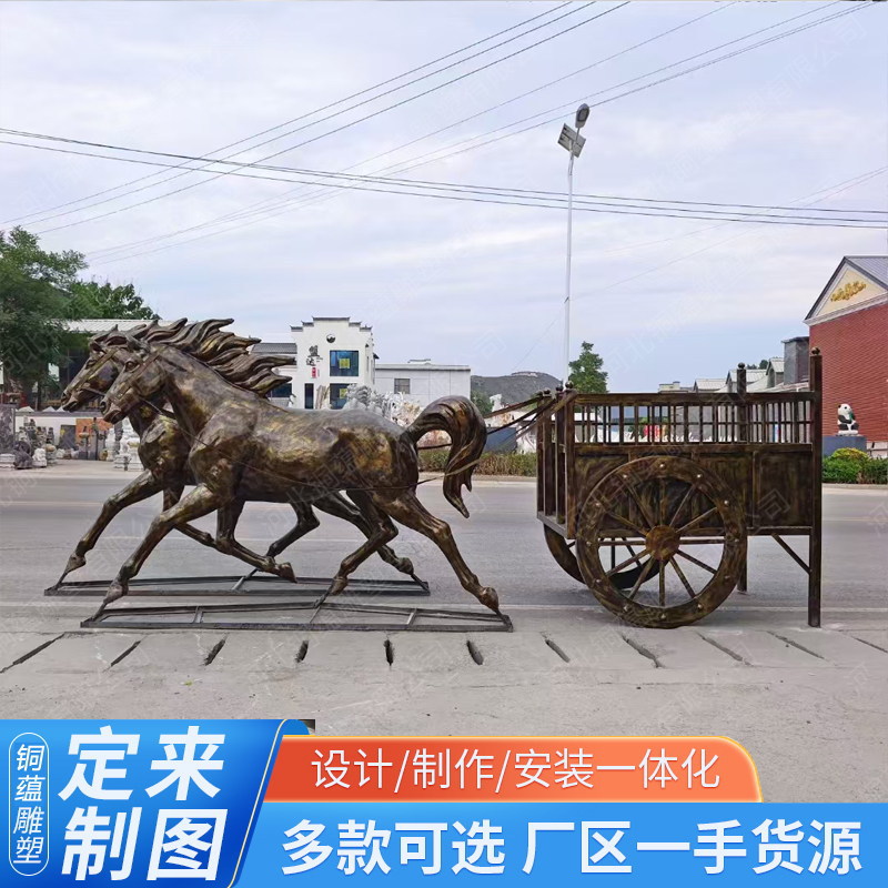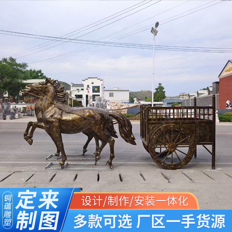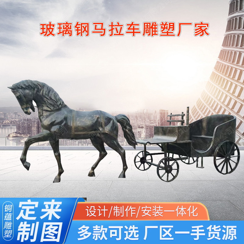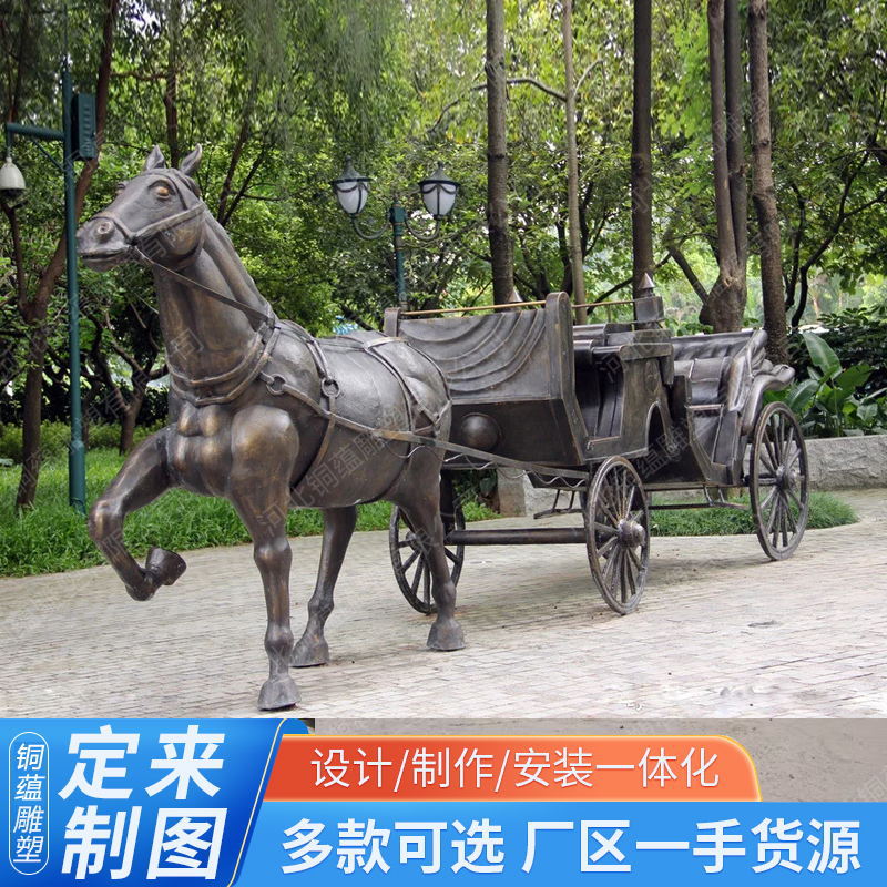 대형 유럽식 마차 조각 맞춤 제작 업체 야외 유리섬유 모조 구리 마차 조각 제조업체 도매스토어 가기