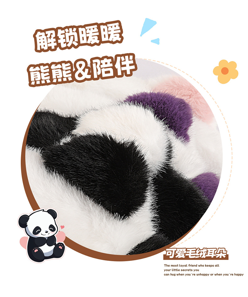 • 2색 곰 플러시 그립 - 둥근 흰색과 보라색