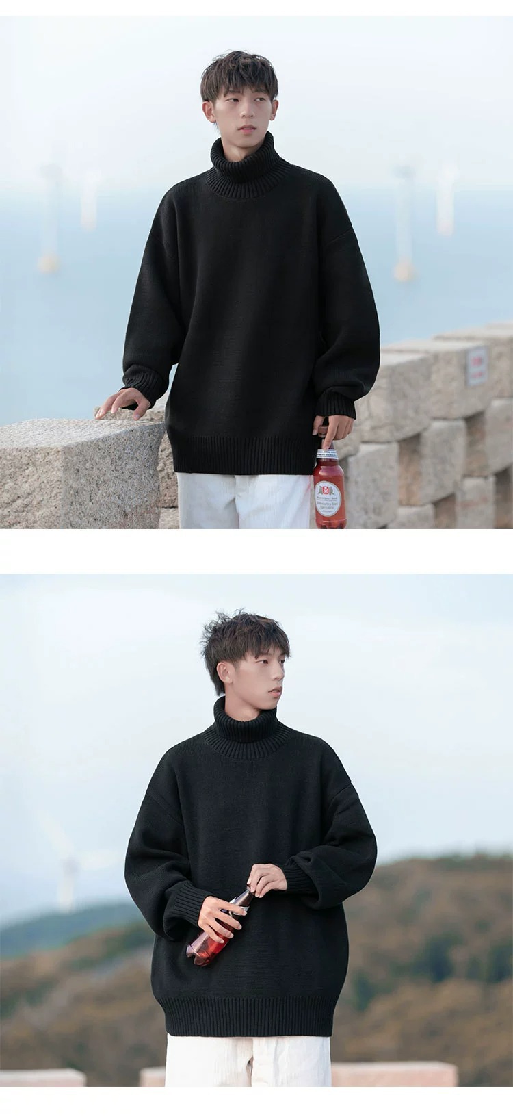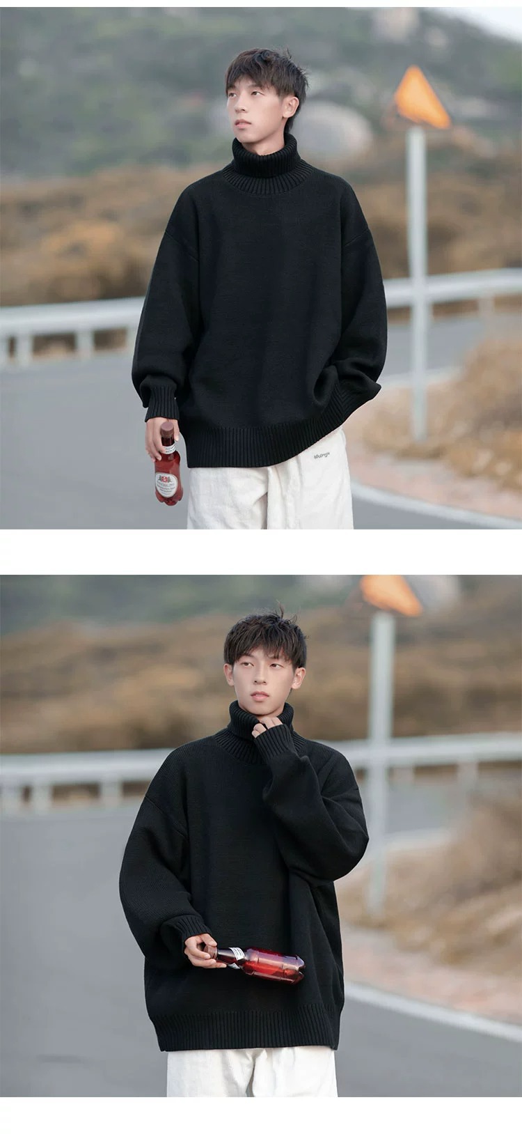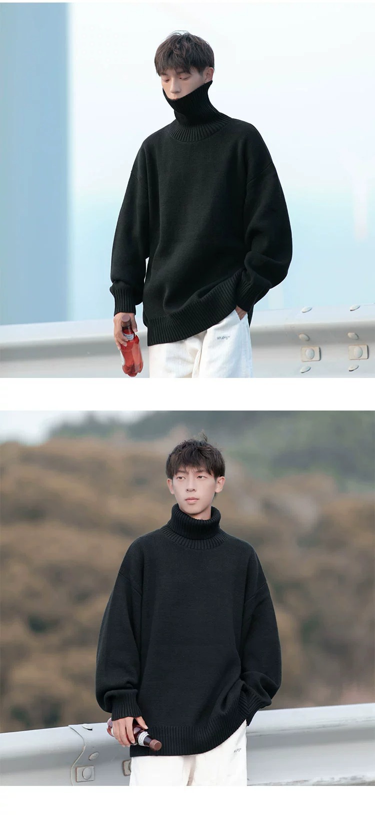 터틀넥 스웨터 남자 겨울 새로운 게으른 하이 엔드 남자베이스 셔츠 두꺼운 느슨한 내부 니트 스웨터 스웨터 스웨터