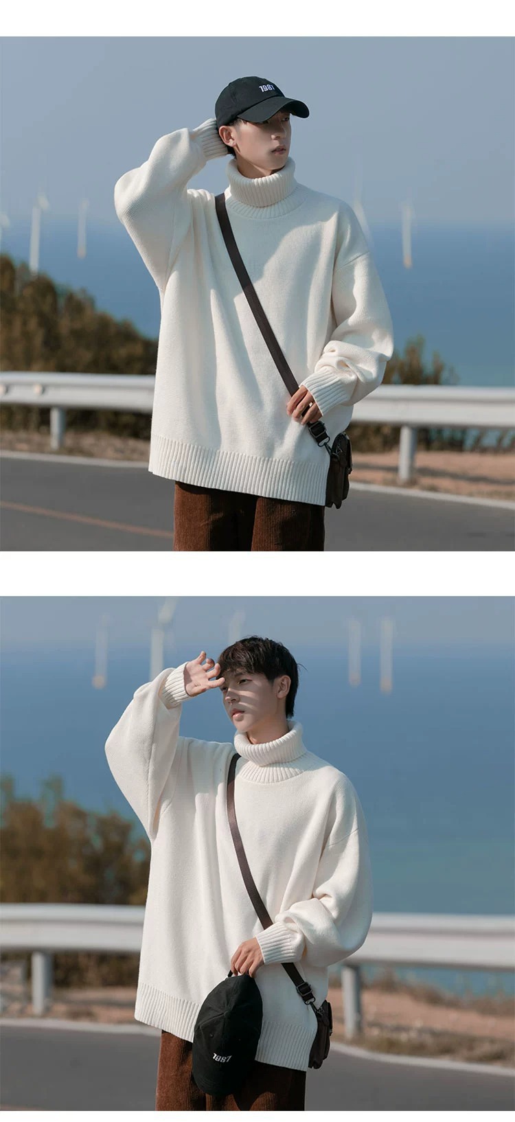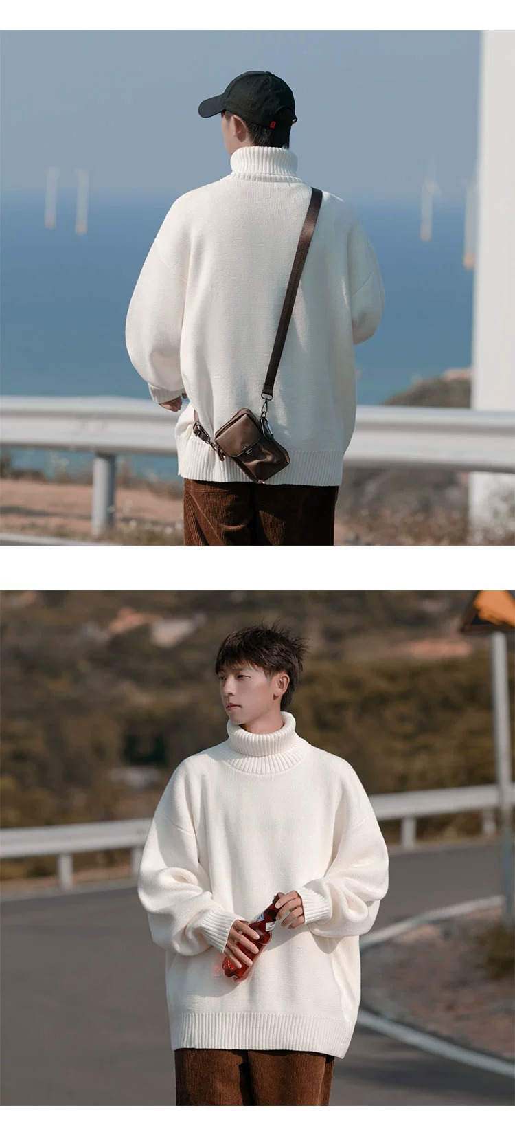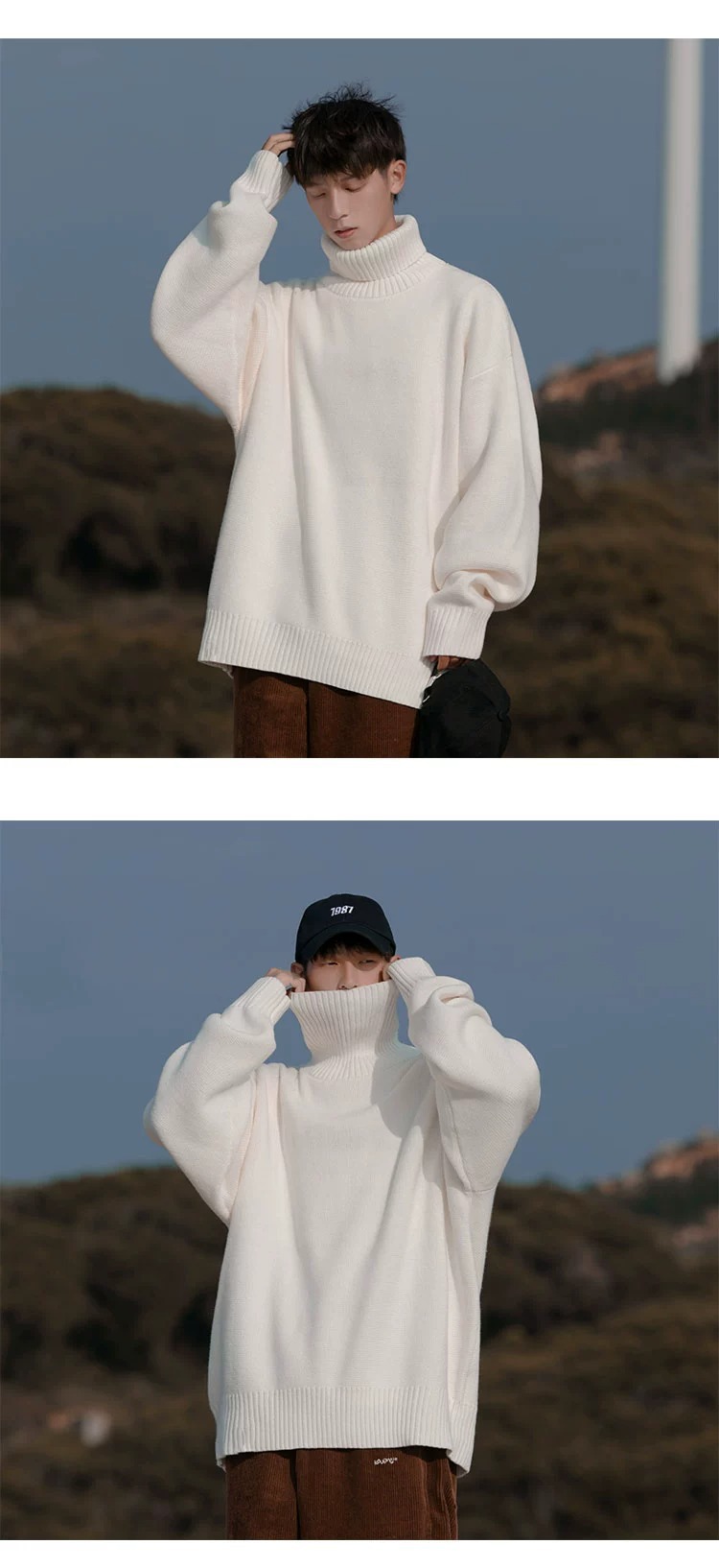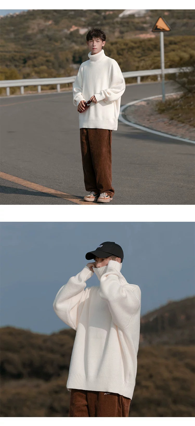 터틀넥 스웨터 남자 겨울 새로운 게으른 하이 엔드 남자베이스 셔츠 두꺼운 느슨한 내부 니트 스웨터 스웨터 스웨터