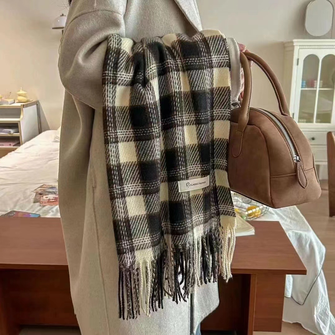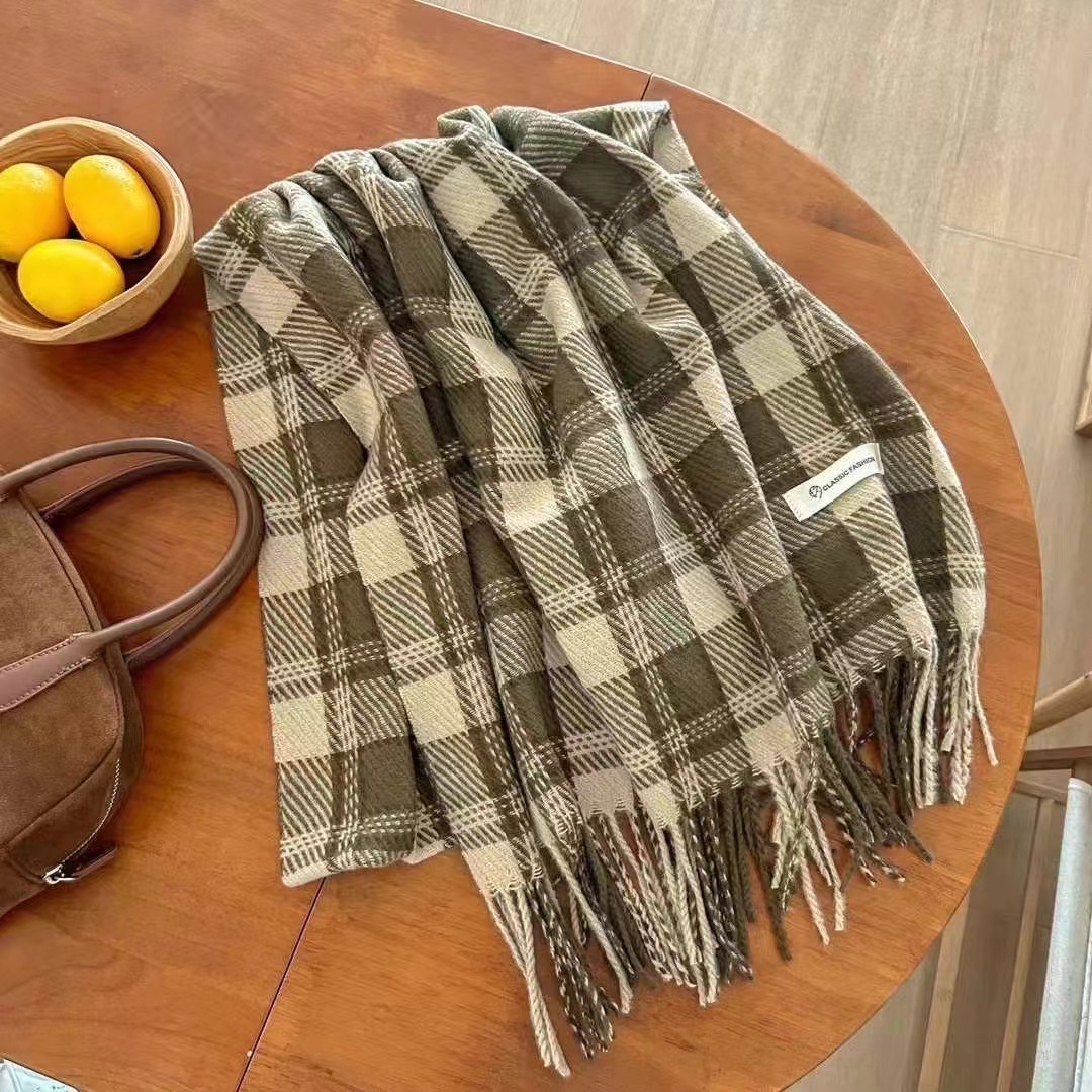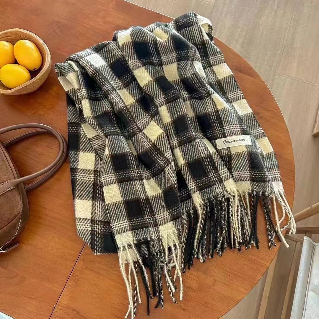 2024 새로운 격자 무늬 스카프 여성의 가을과 겨울 따뜻한 패션 모든 경기 술 스카프 모방 캐시미어 격자 목도리 국경스토어 가기