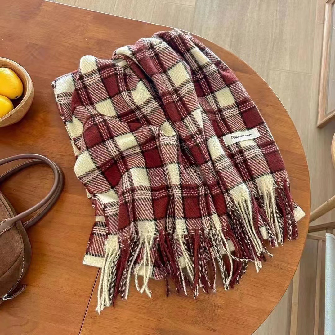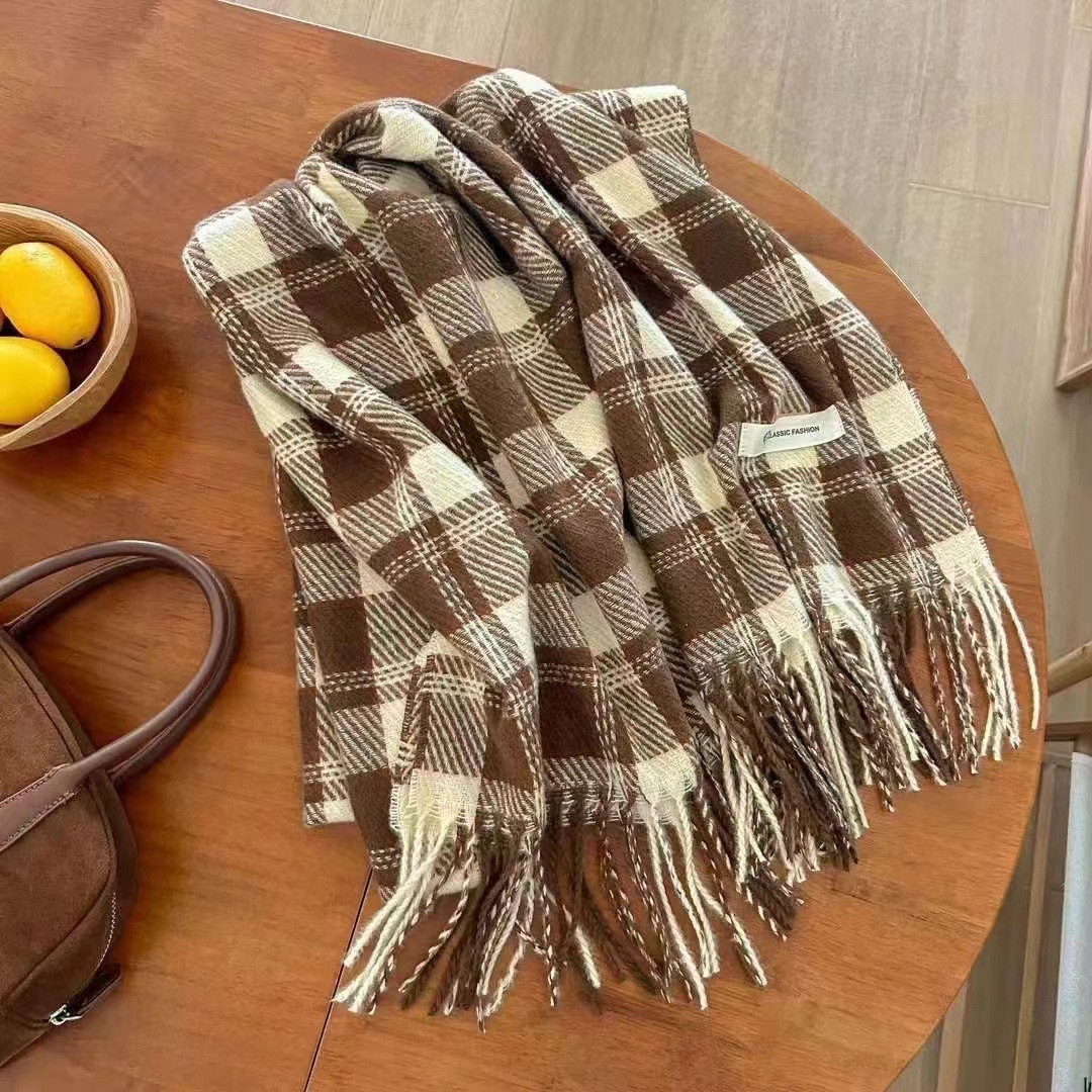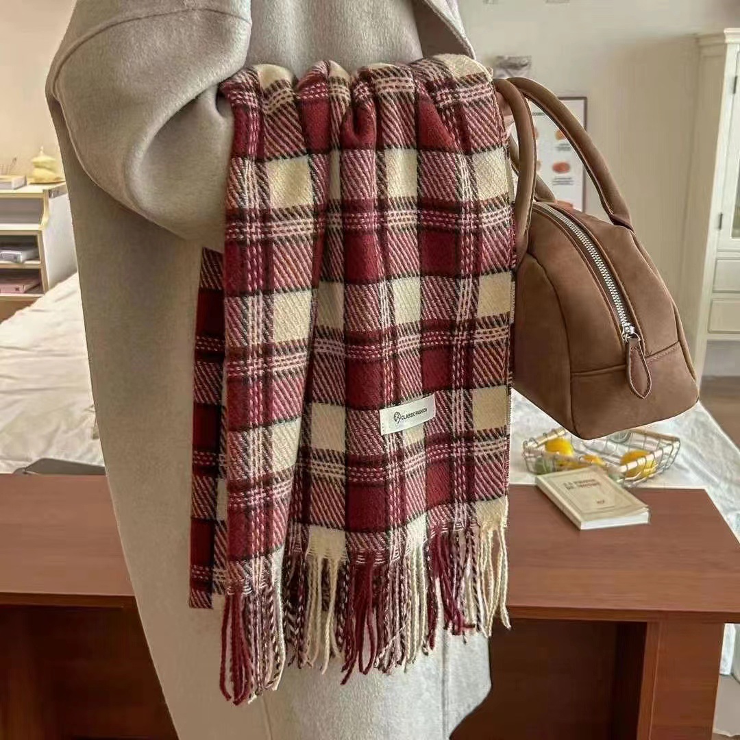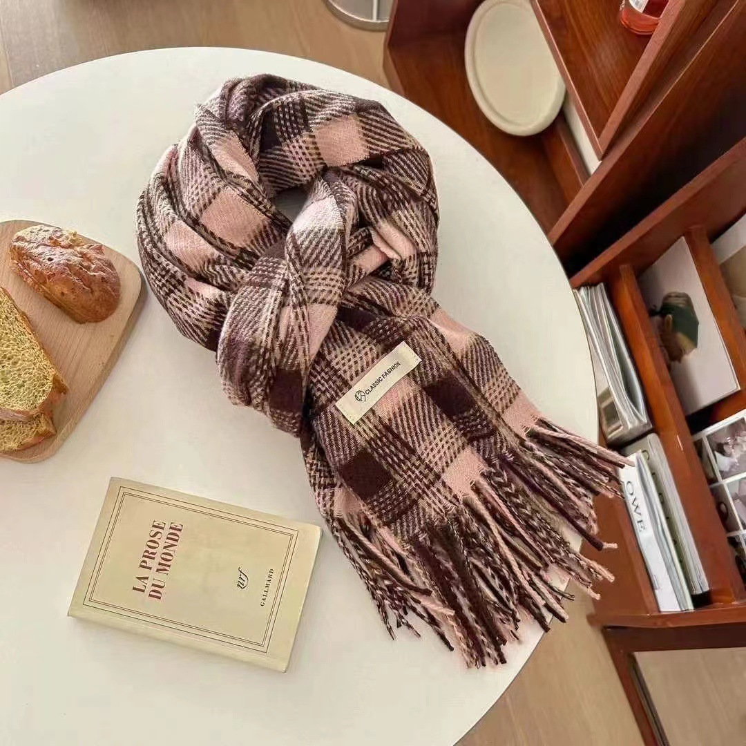 2024 새로운 격자 무늬 스카프 여성의 가을과 겨울 따뜻한 패션 모든 경기 술 스카프 모방 캐시미어 격자 목도리 국경스토어 가기