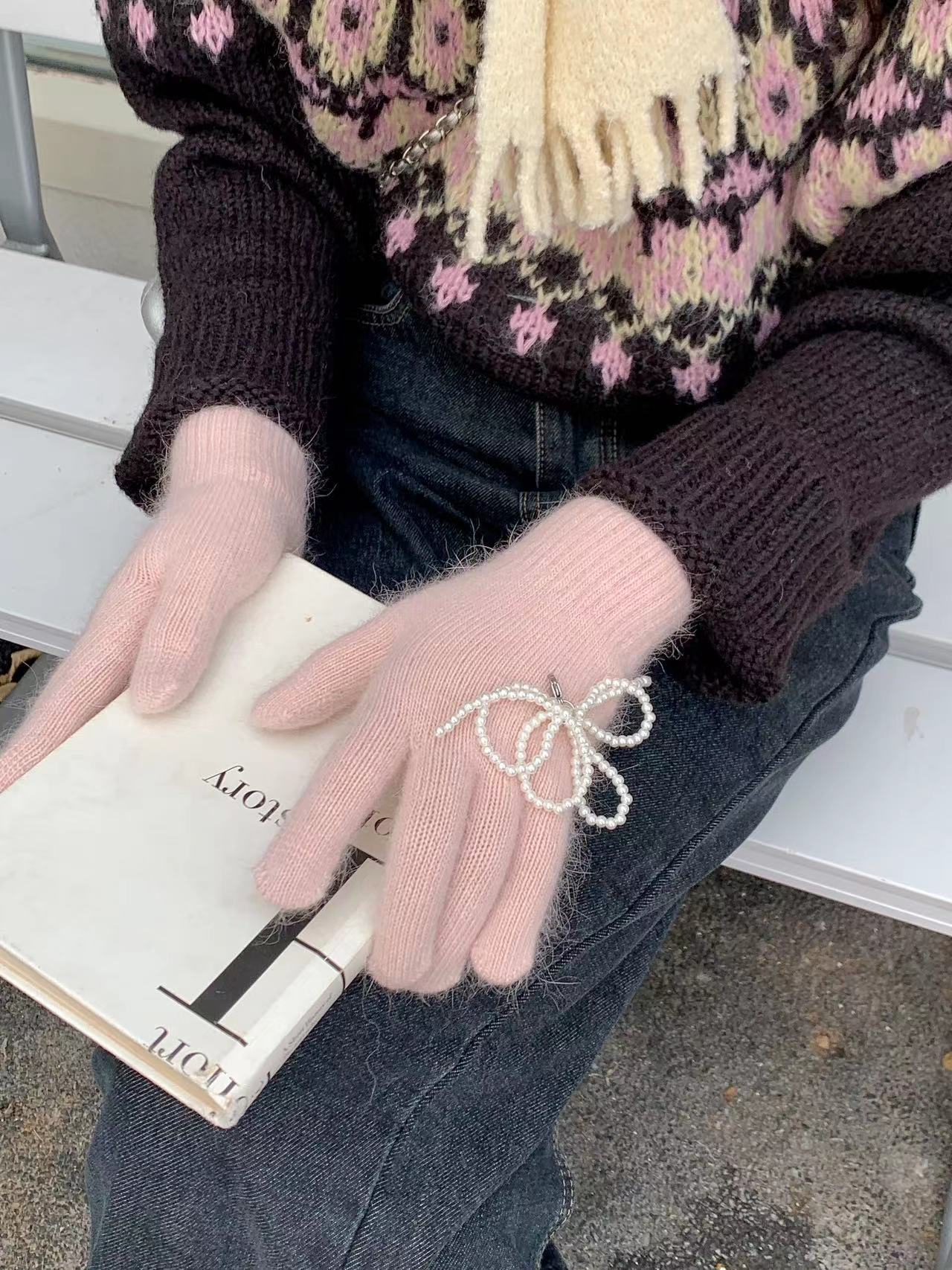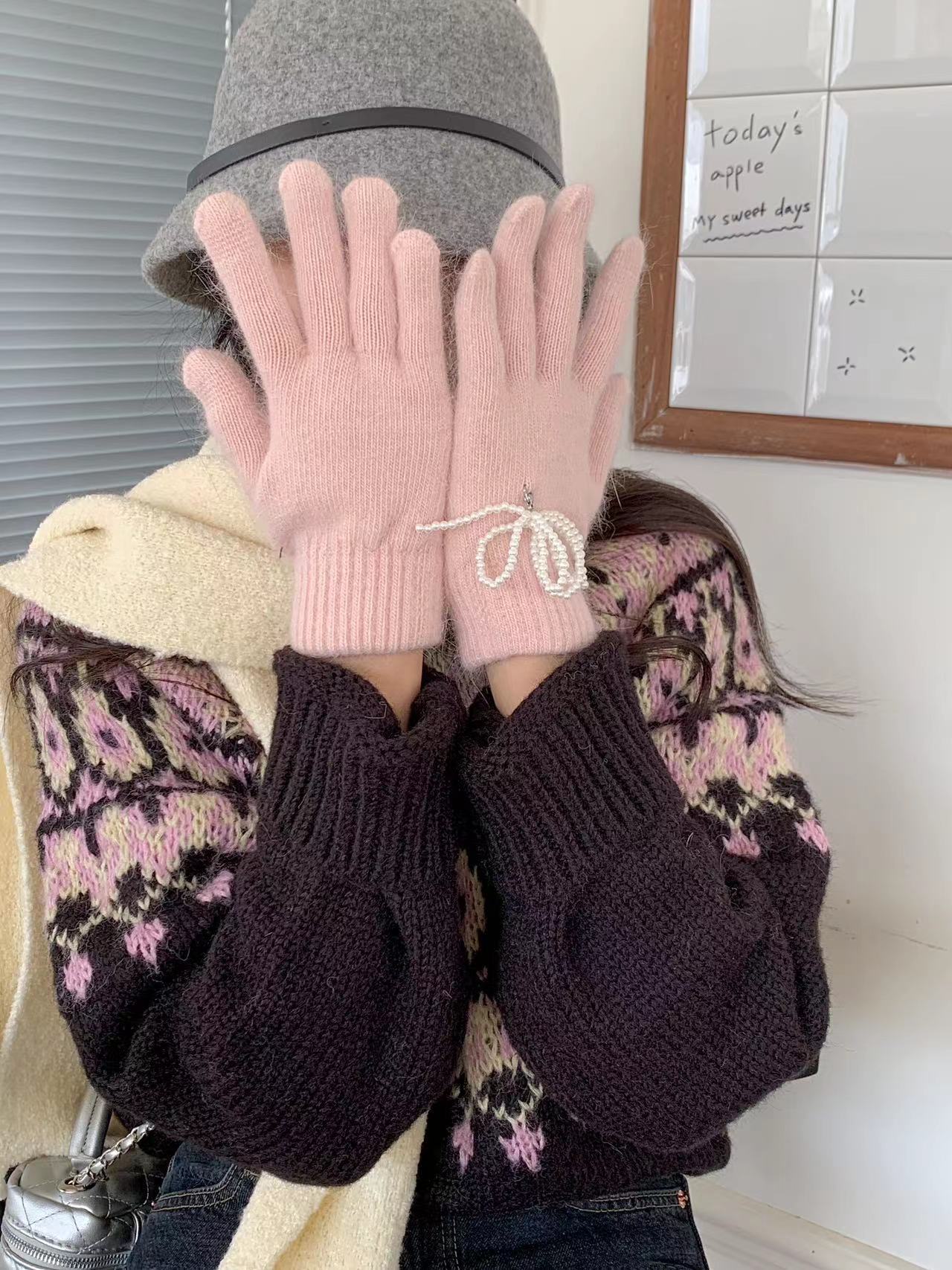 한국 겨울 따뜻한 소녀 달콤한 귀여운 신선한 프랑스 스타일 매일 여성의 새로운 오픈 발가락 승마 장갑스토어 가기
