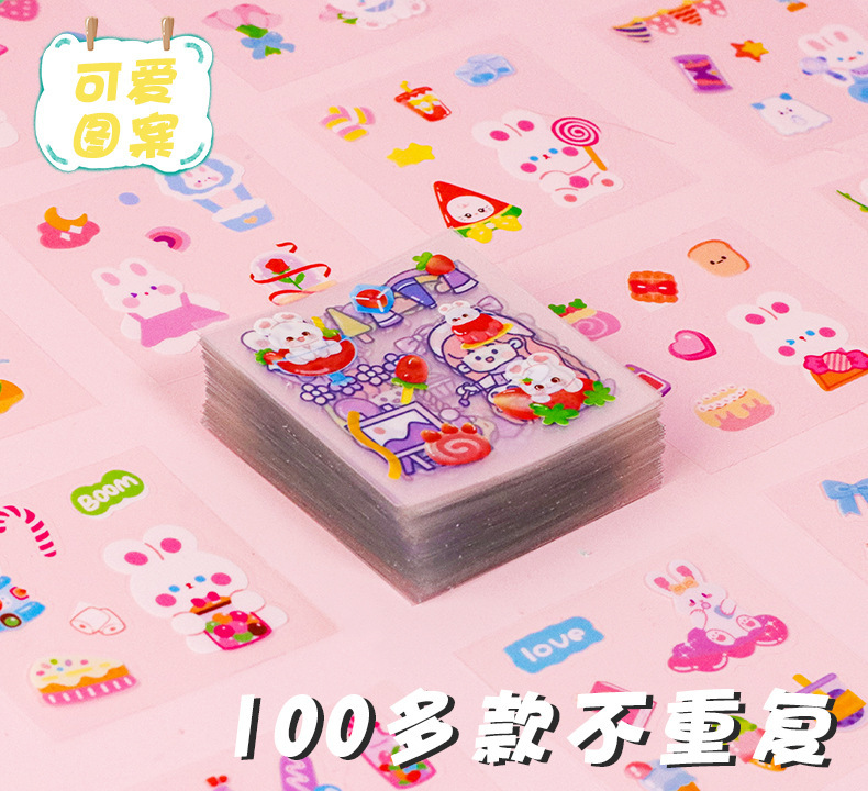100개의 비반복 PET 스티커 만화 귀여운 소녀 DIY 핸드북 장식 재료 일본 및 한국 인스타 스타일 핸드북
