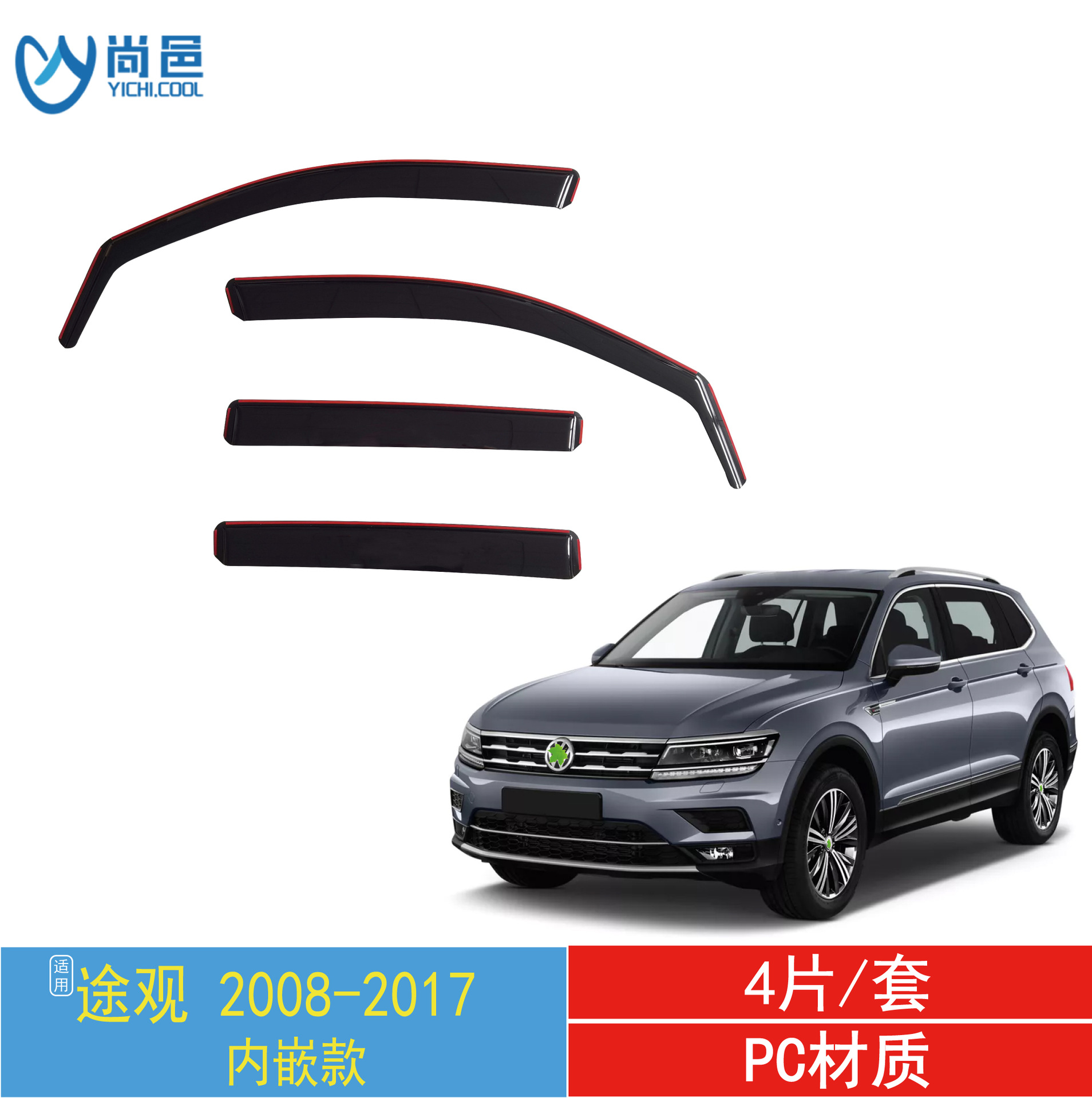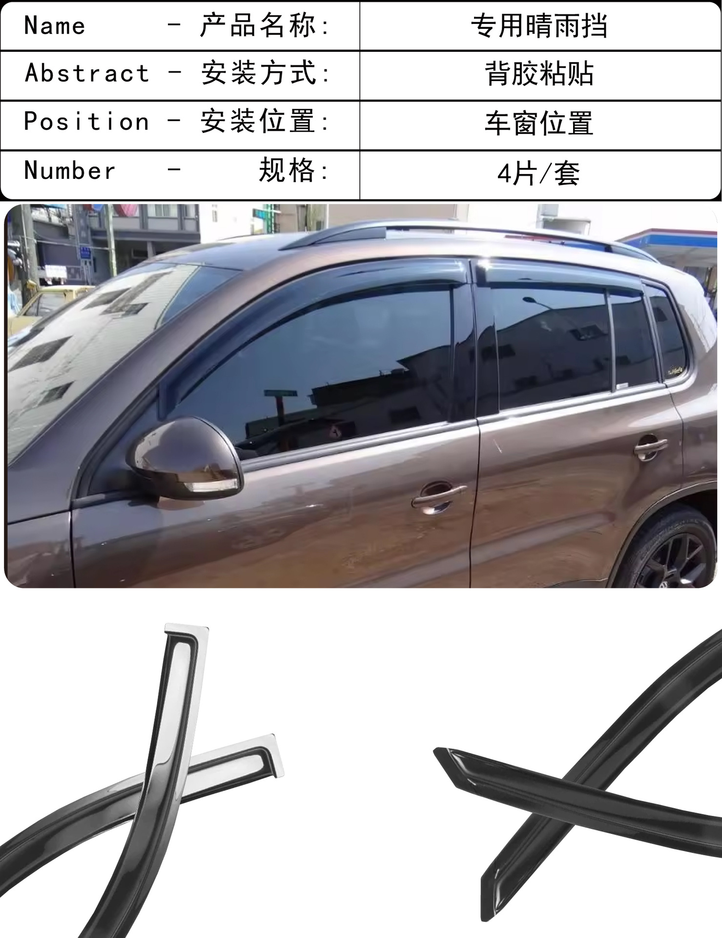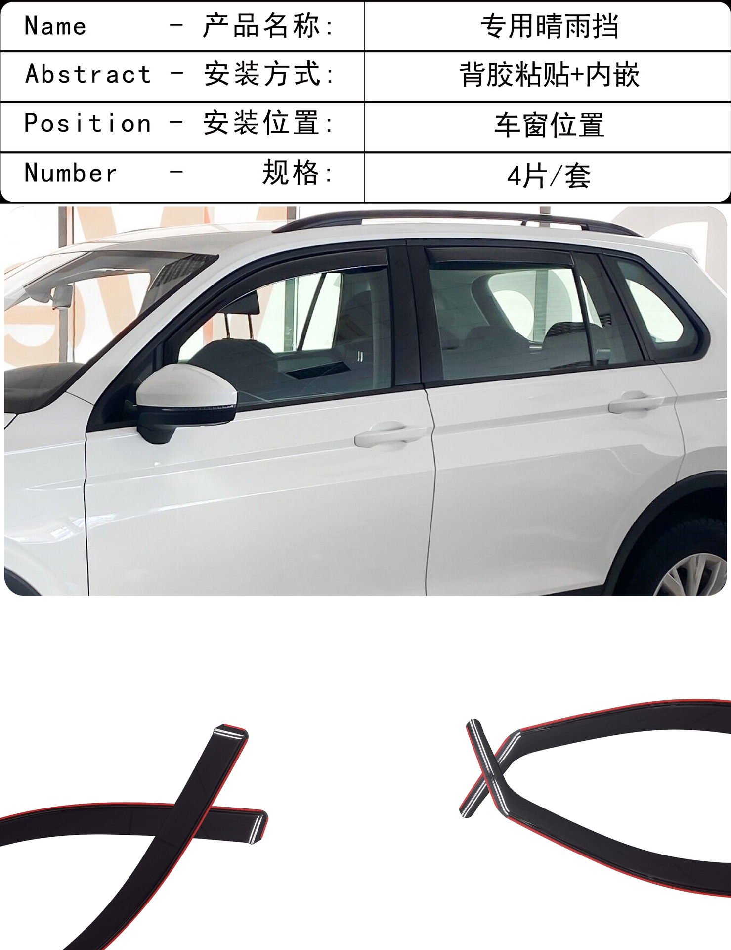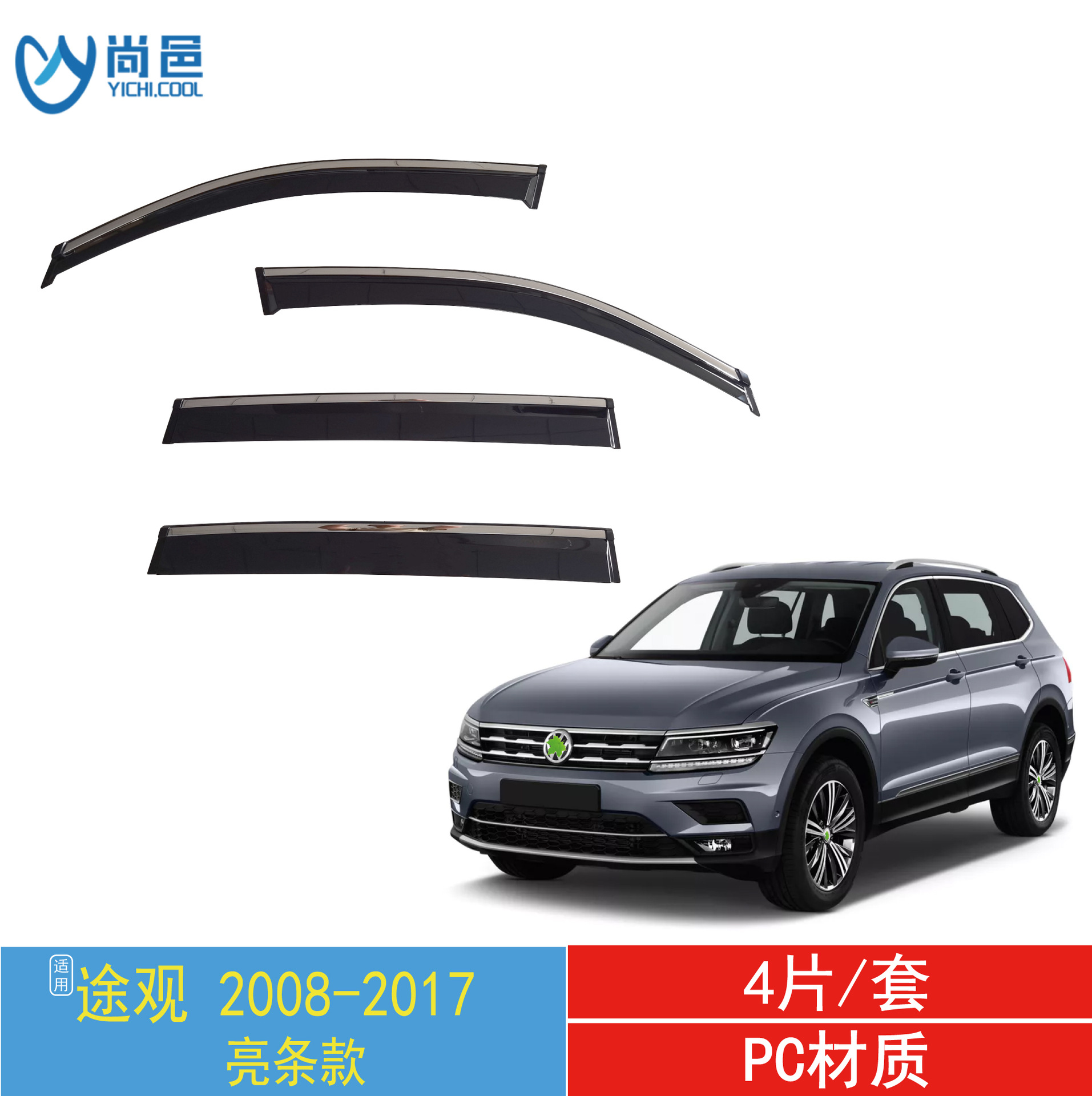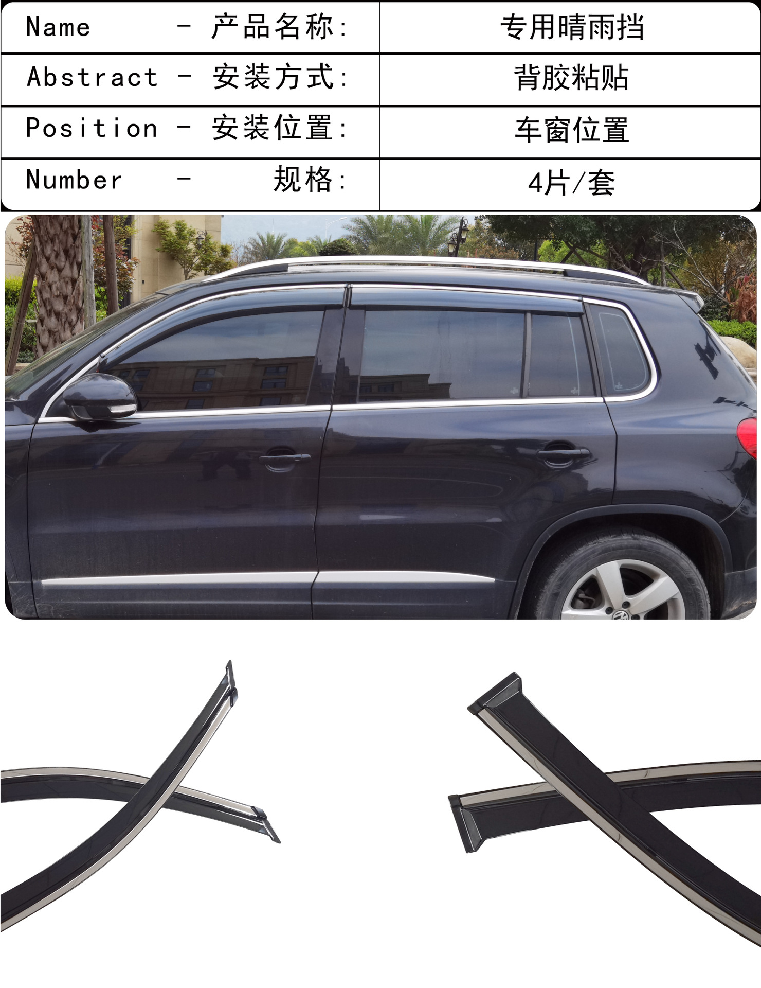 국경 간 적용 가능한 폭스 바겐 Tiguan 자동차 창 수정 비 방패 PC 밝은 스트립 접착제 자동차 방패