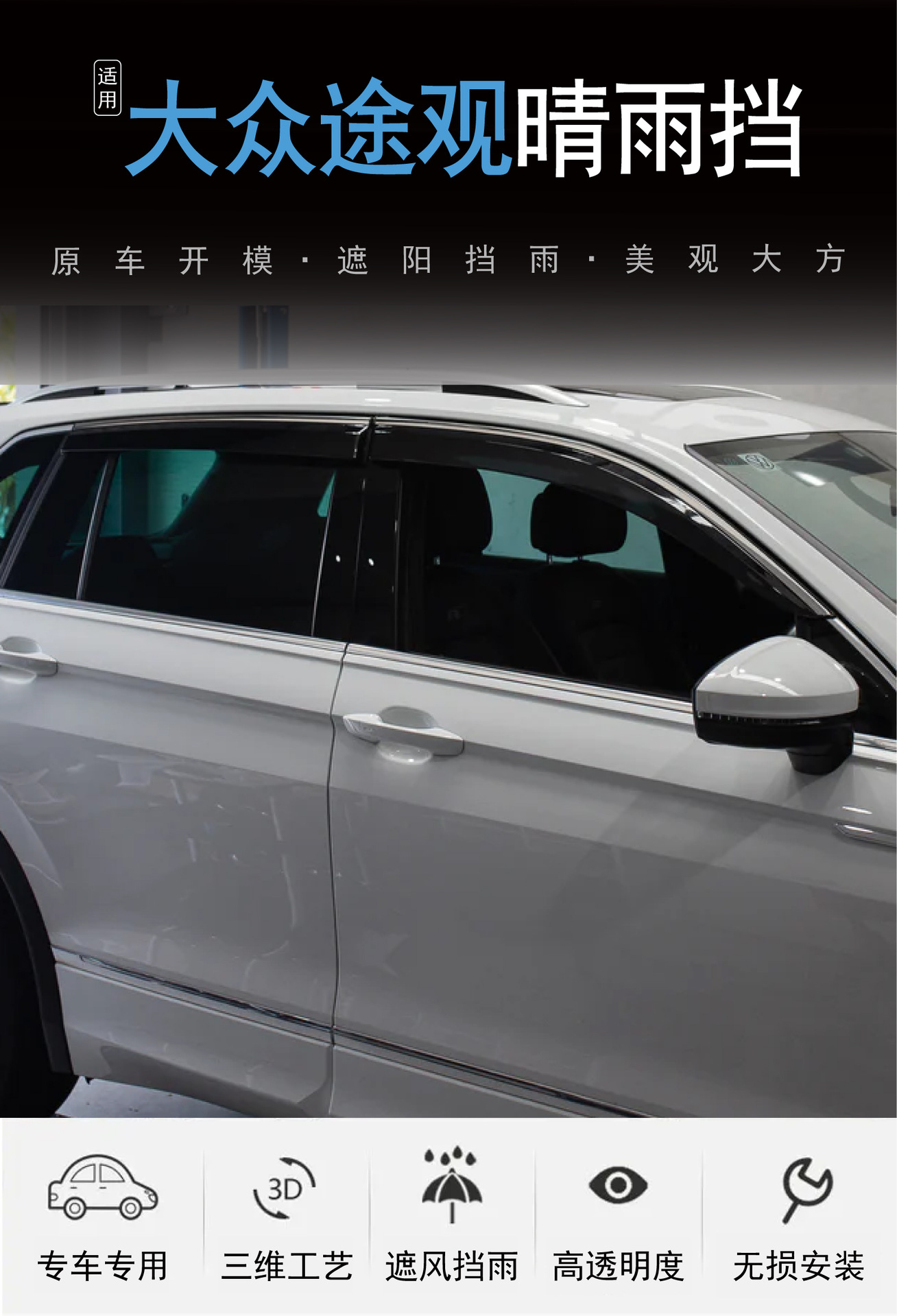 국경 간 적용 가능한 폭스 바겐 Tiguan 자동차 창 수정 비 방패 PC 밝은 스트립 접착제 자동차 방패스토어 가기