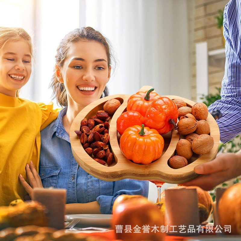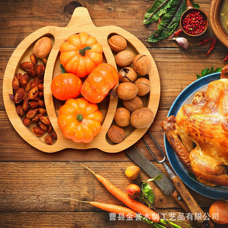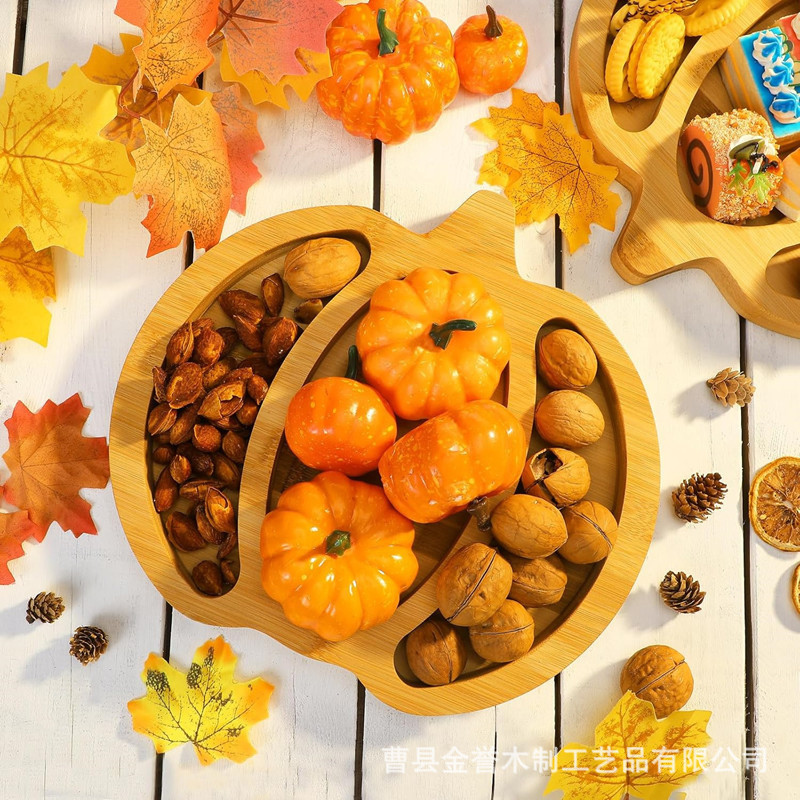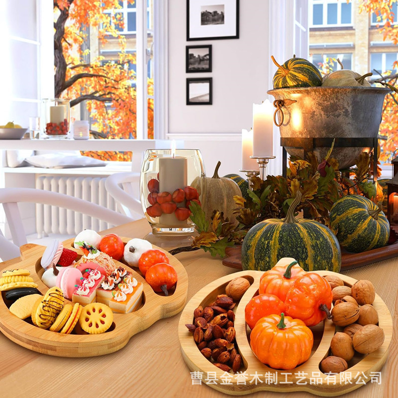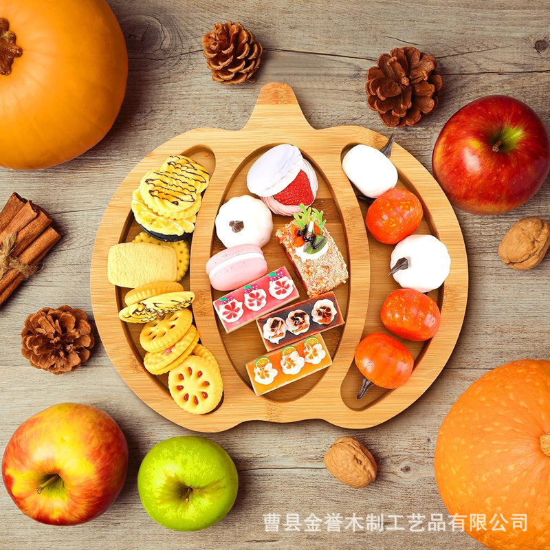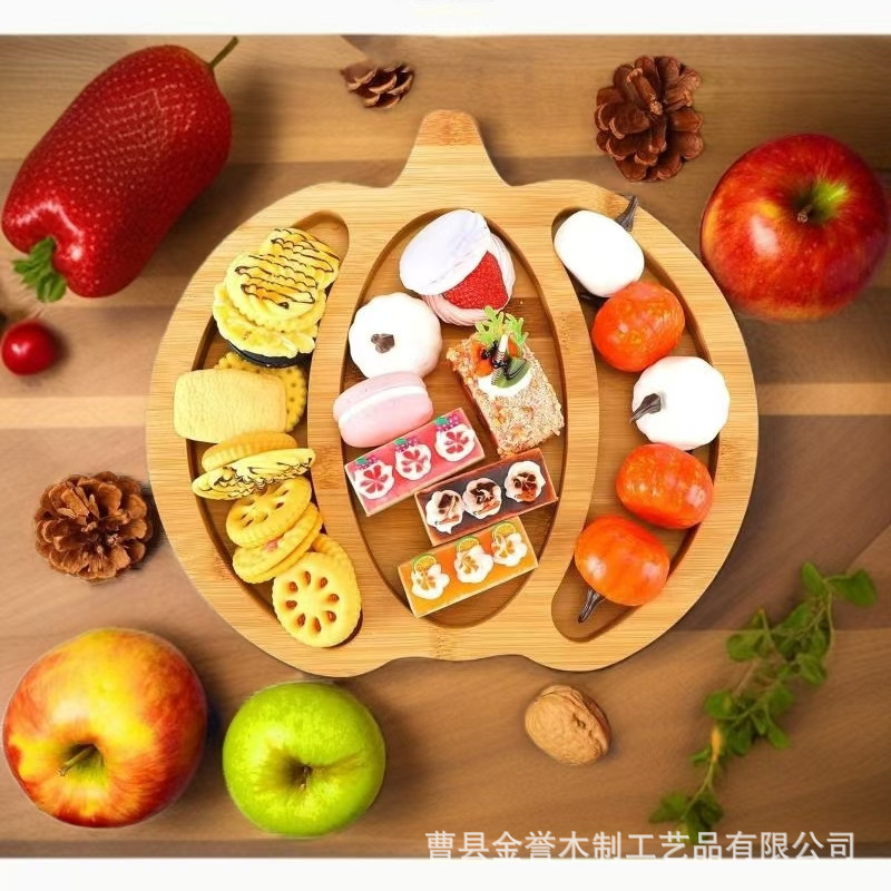 나무 트레이 창조적 인 할로윈 파티 장식 대나무 트레이 과일 디저트 트레이 호박 모양의 단단한 나무 디너 플레이트