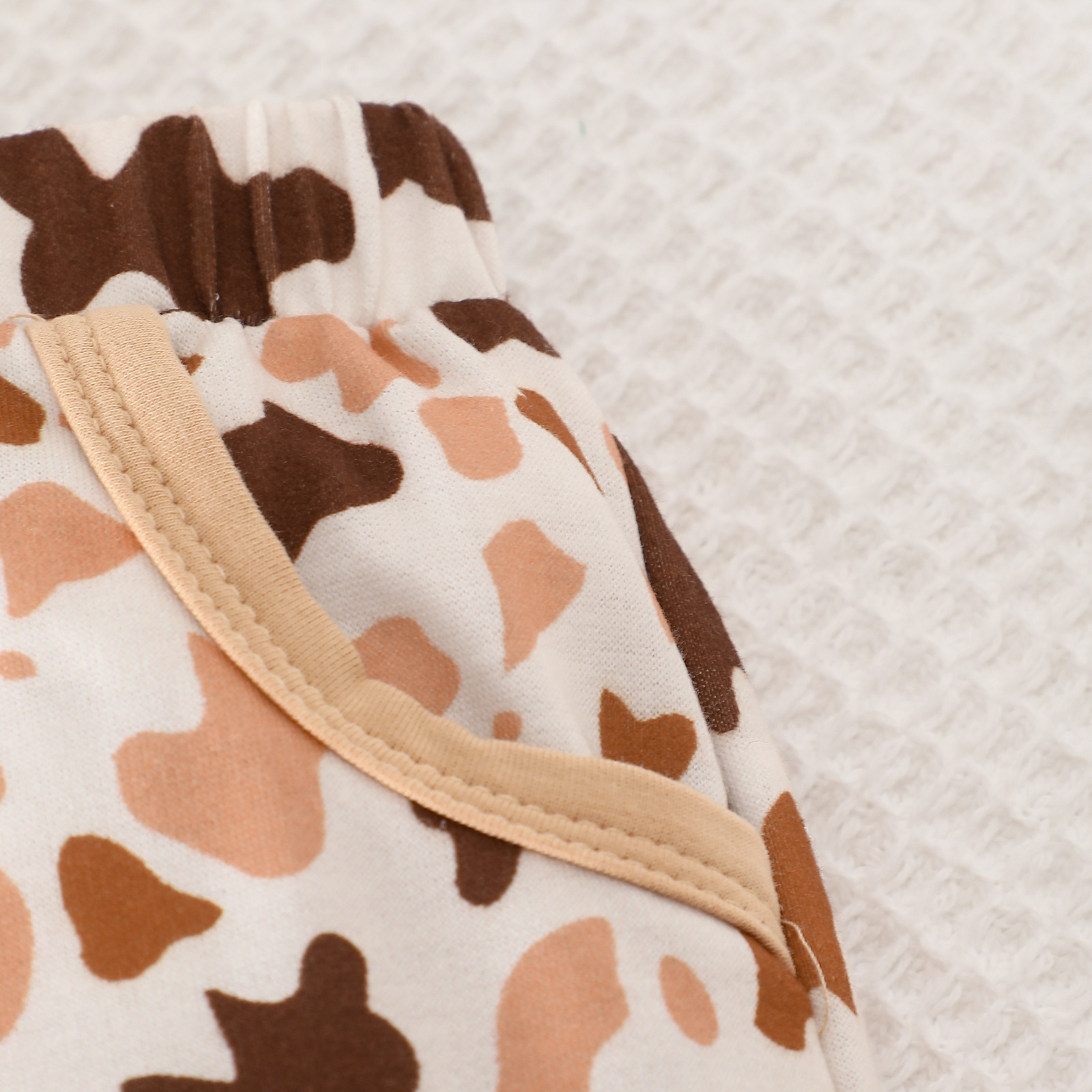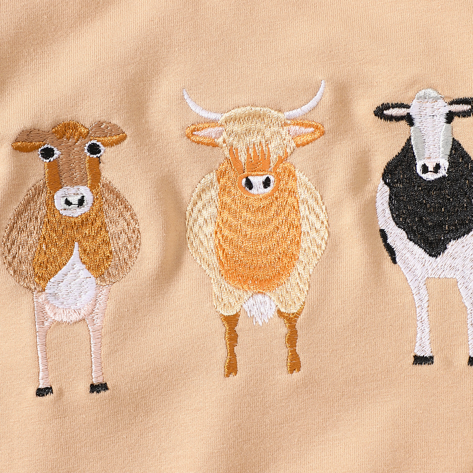 2024 가을 신상 유아 남아 농장 스타일 만화 소 자수 스웨트셔츠와 바지 세트 캐주얼 홈웨어스토어 가기