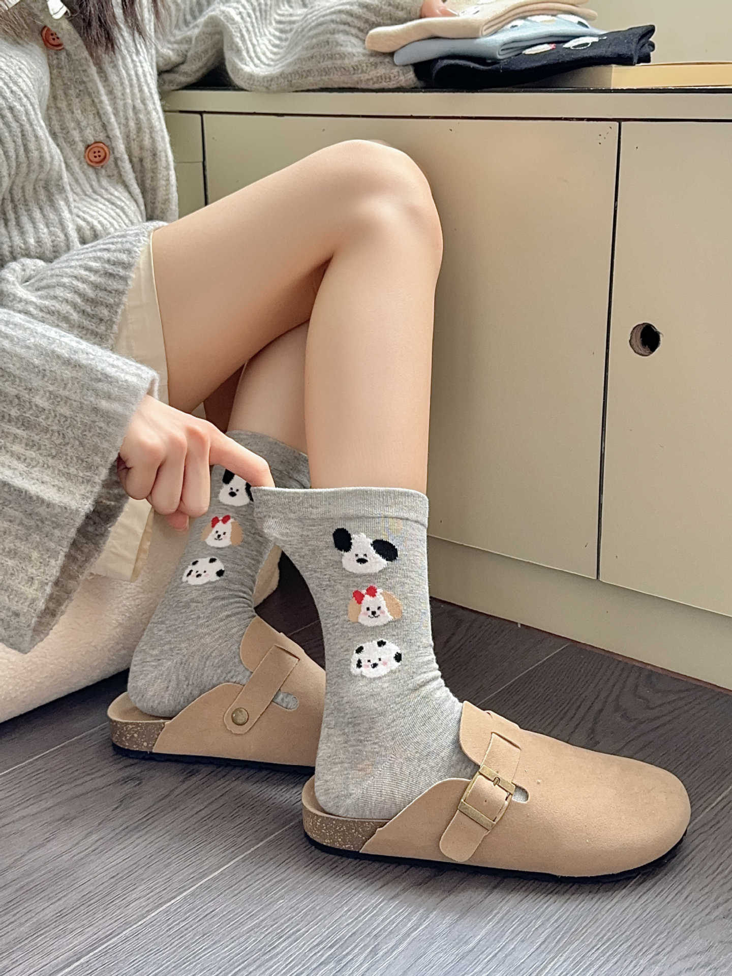 양말 여성의 새로운 귀여운 강아지 양말 한국면 양말 동물 자수 학술 스타일 파일 양말 주지 양말