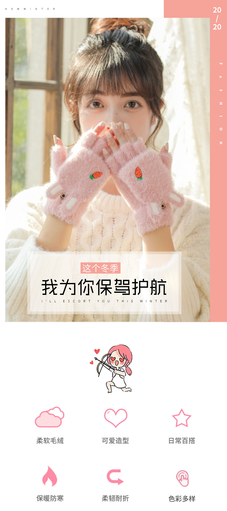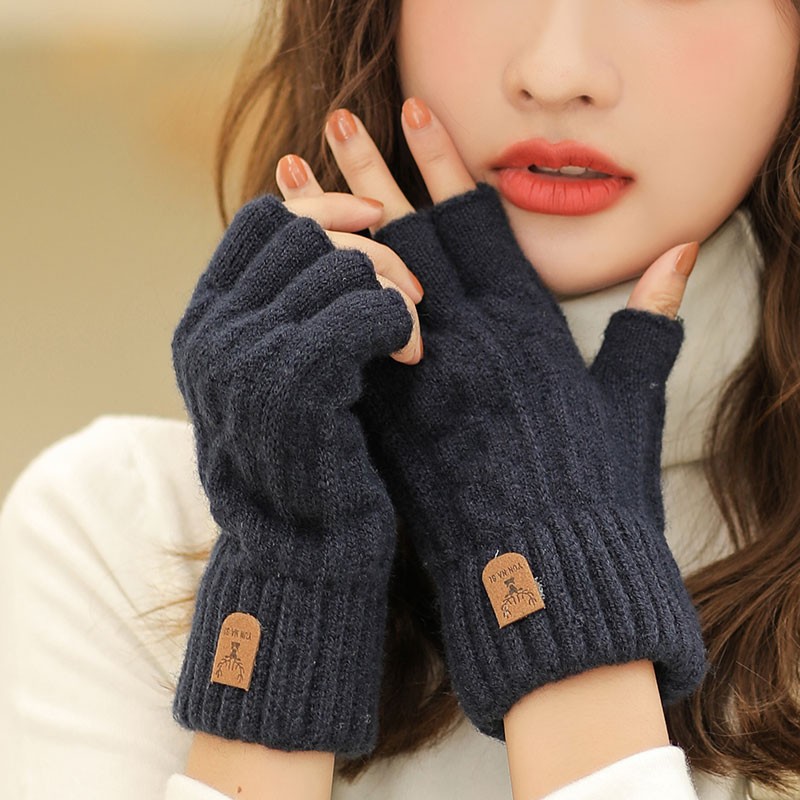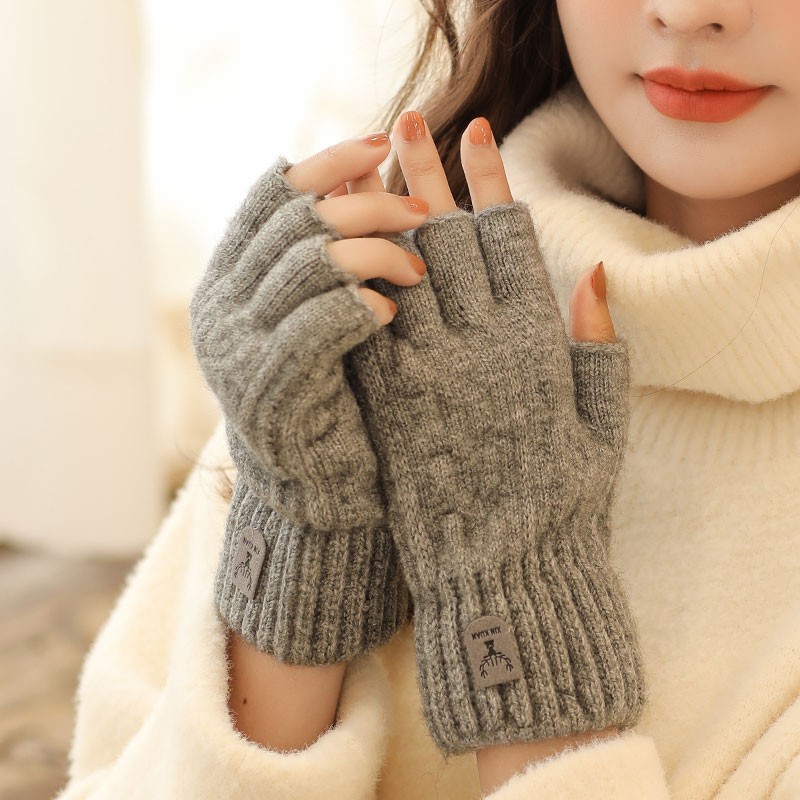 장갑 여성의 겨울 패션 두꺼운 학생 글쓰기 반 손가락 플립 커버 장갑 따뜻한 니트 가을과 겨울 귀여운 올 매치