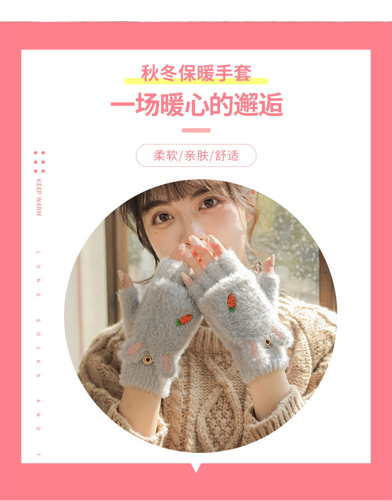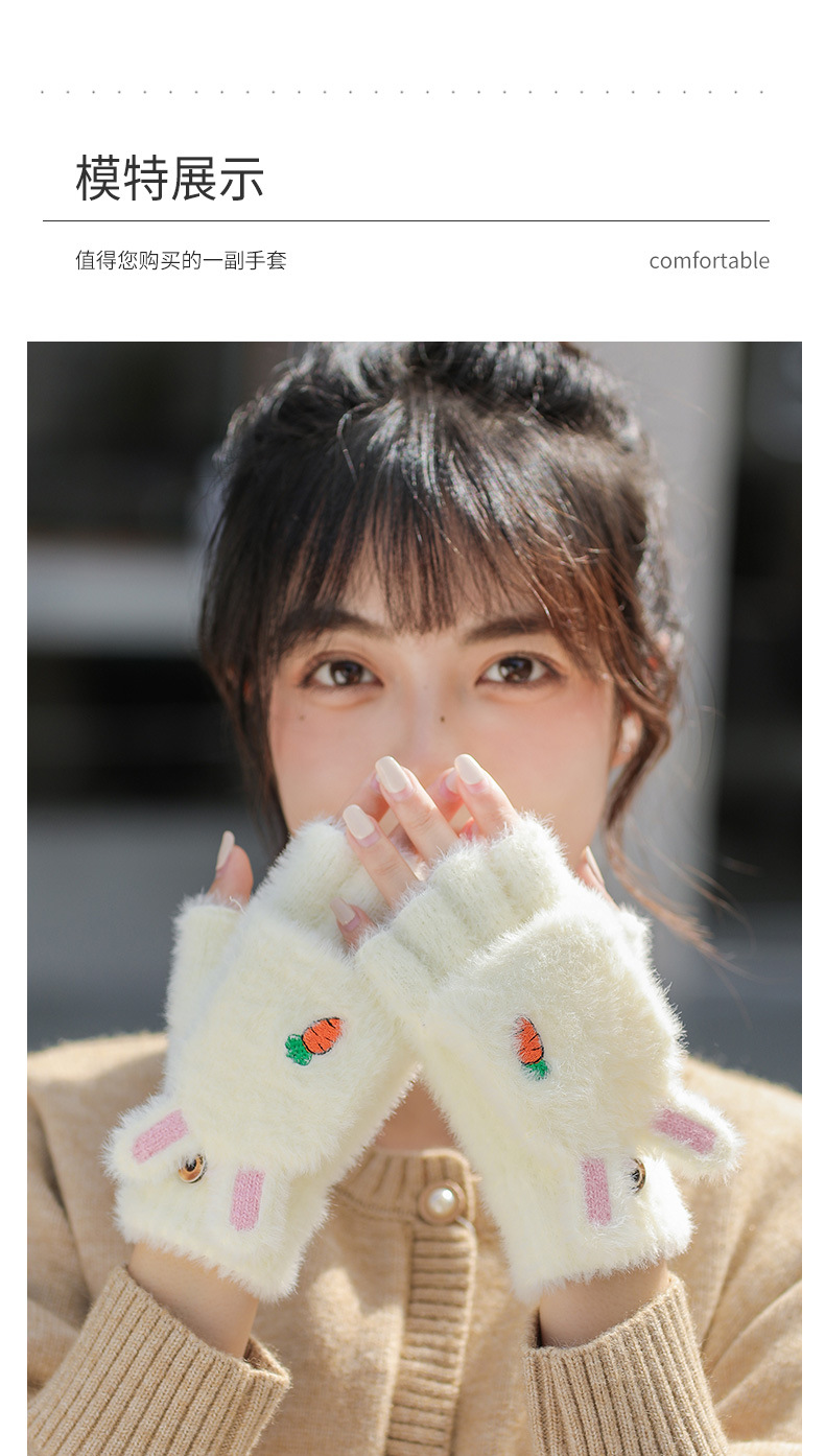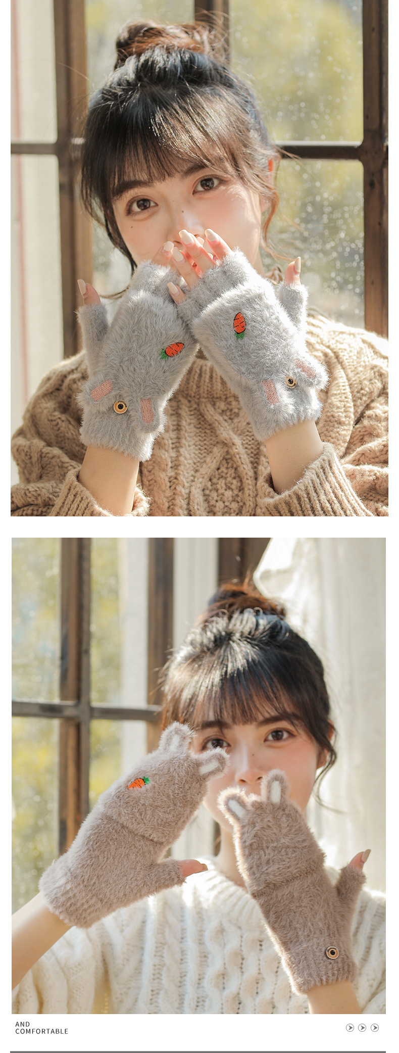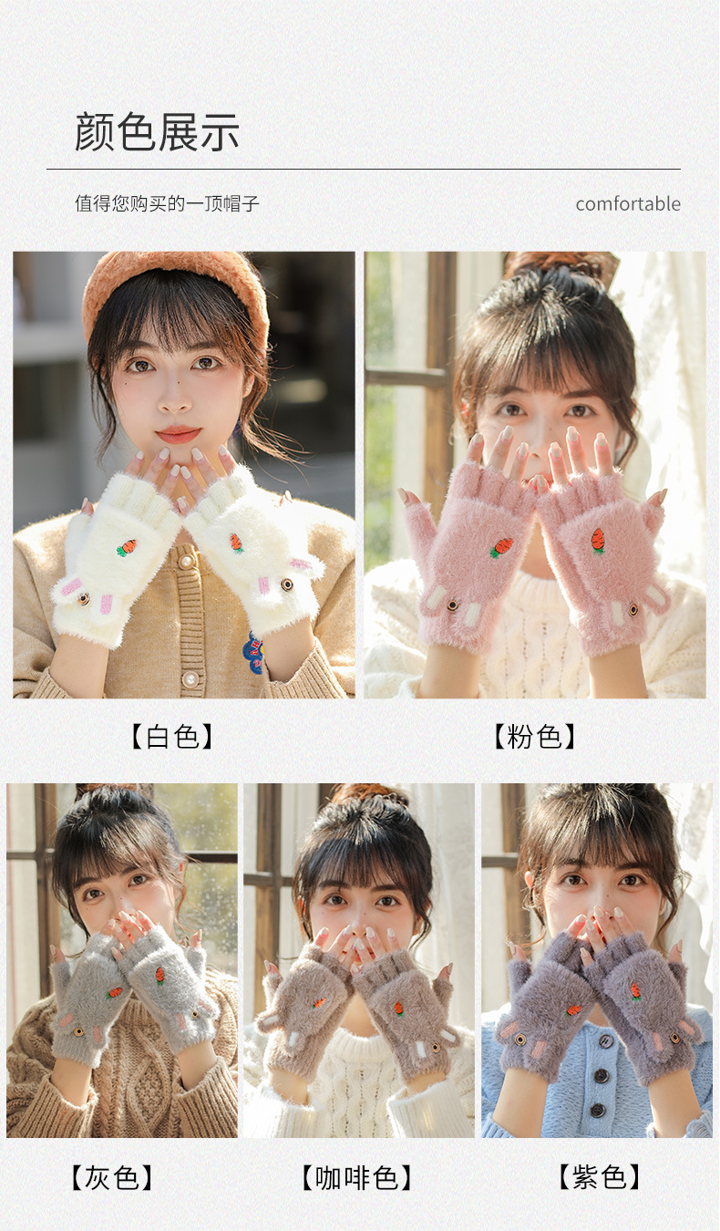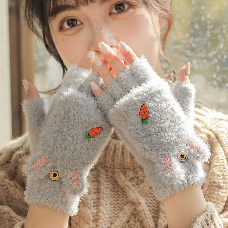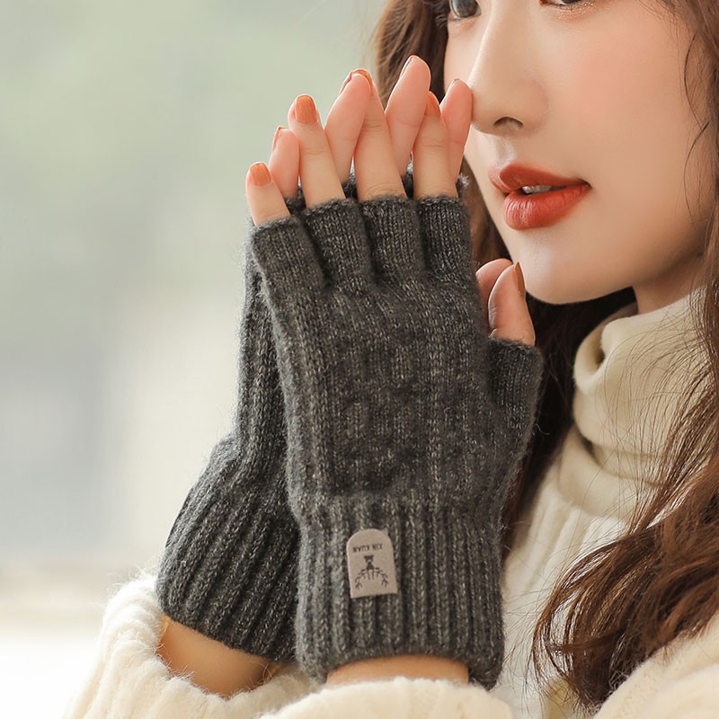 장갑 여성의 겨울 패션 두꺼운 학생 글쓰기 반 손가락 플립 커버 장갑 따뜻한 니트 가을과 겨울 귀여운 올 매치스토어 가기