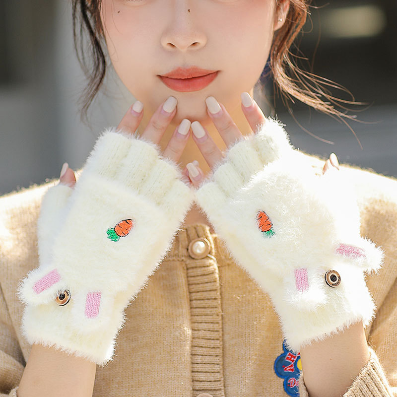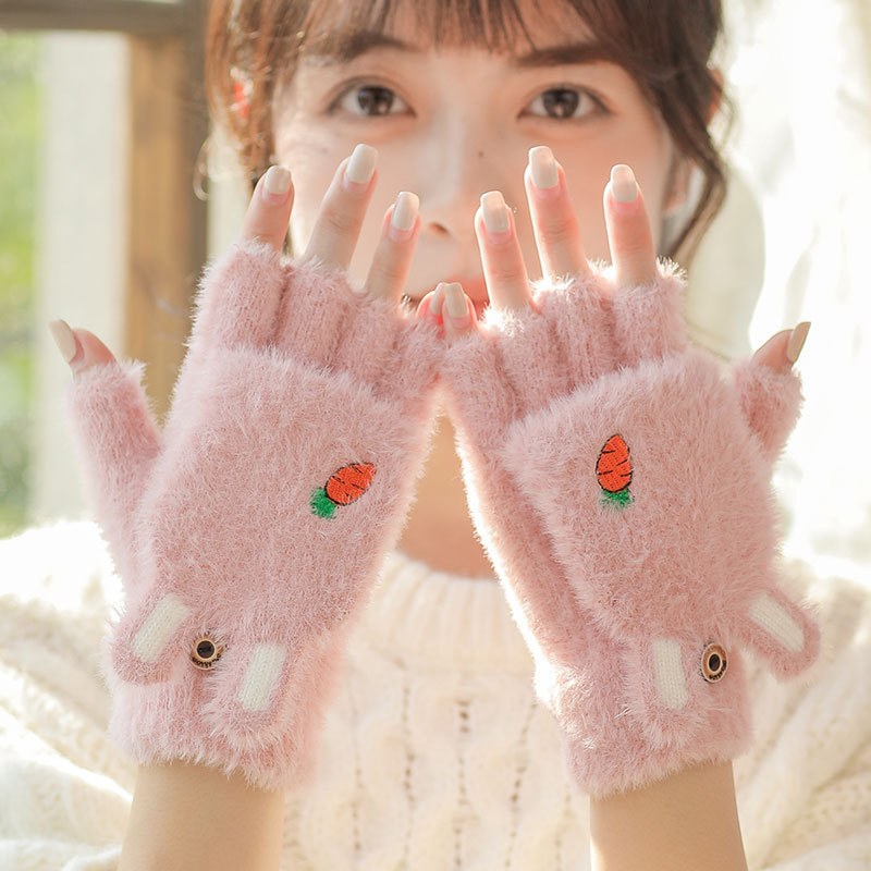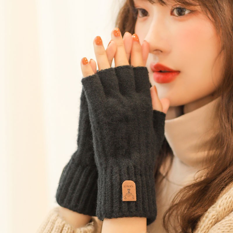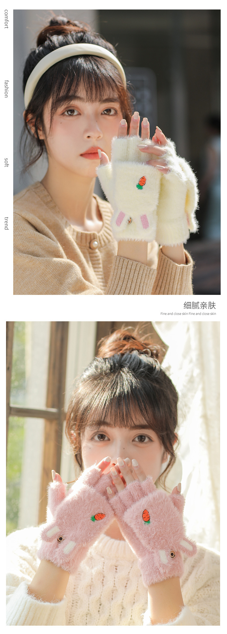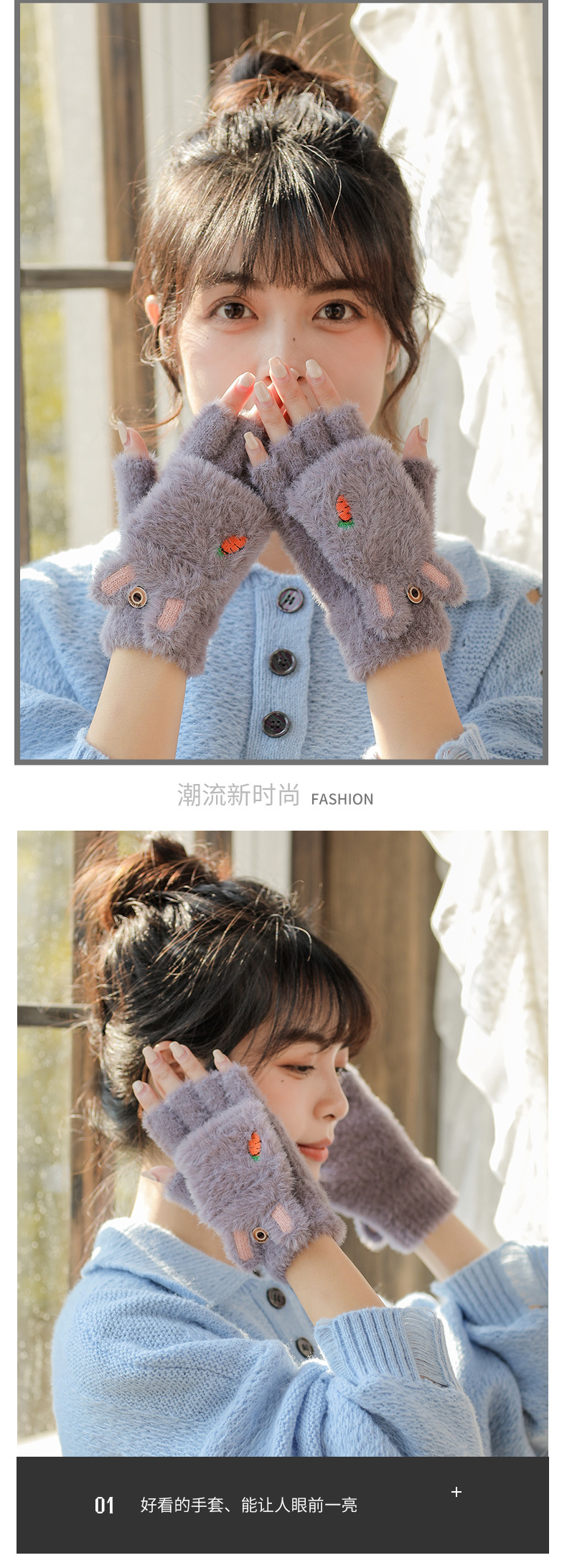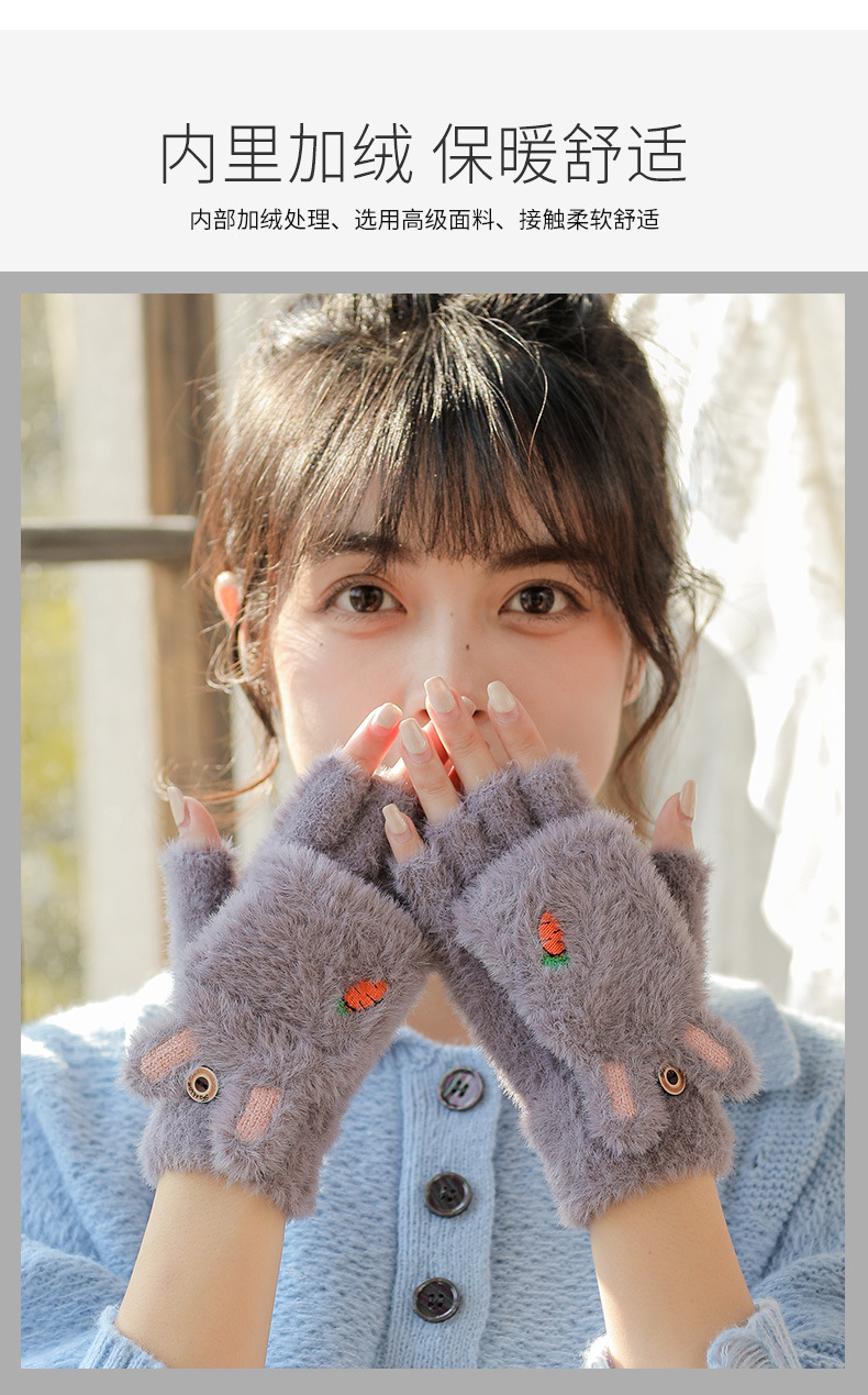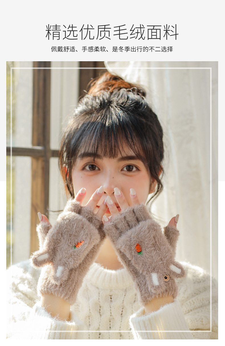 장갑 여성의 겨울 패션 두꺼운 학생 글쓰기 반 손가락 플립 커버 장갑 따뜻한 니트 가을과 겨울 귀여운 올 매치스토어 가기