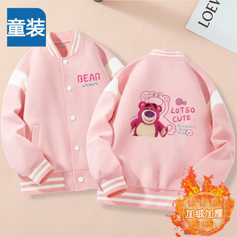 딸기 베어 걸스 재킷 코트 가을과 겨울 어린이 야구 세트 새로운 버튼 카디건 크루 넥 코트 쿨로 미