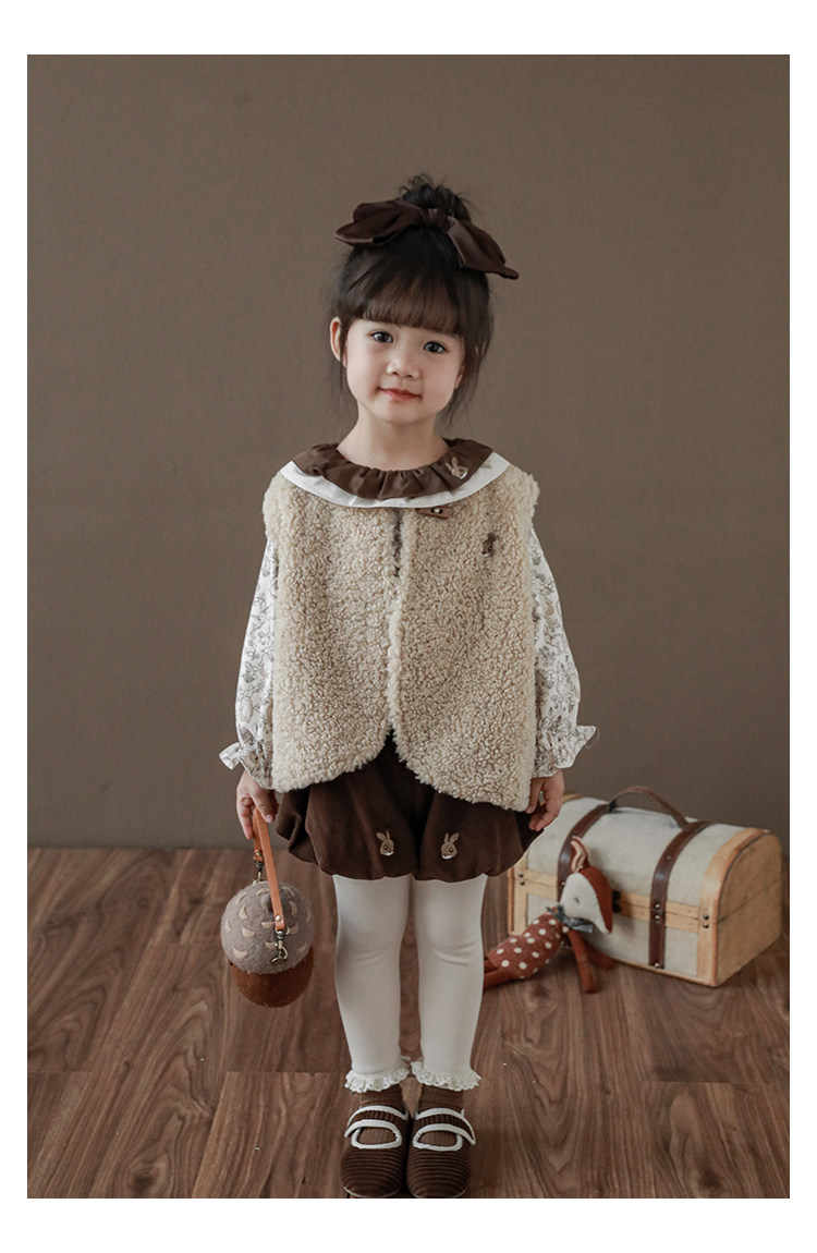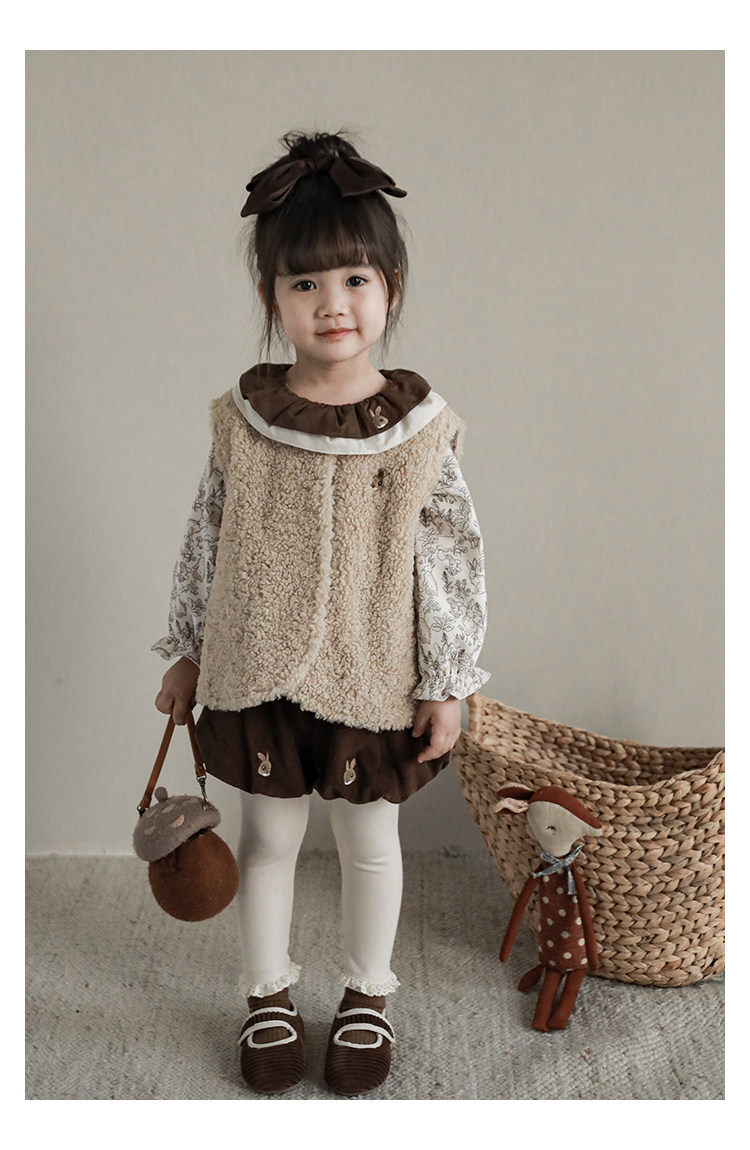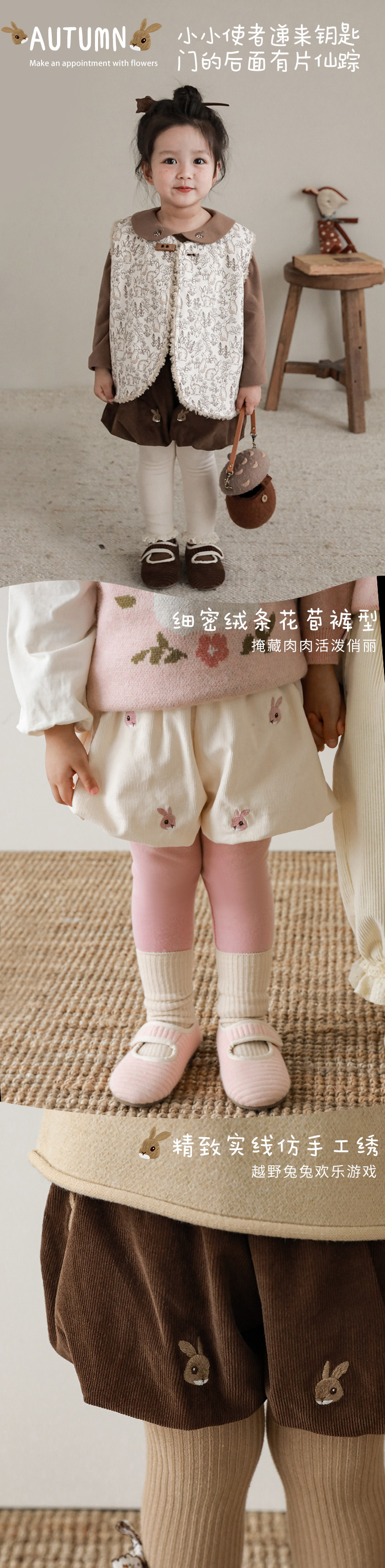 Wurib 소녀의 고급 벨벳 새싹 반바지 가을 어린이 장난기 귀여운 섬세한 솔리드 라인 편안한 바지스토어 가기