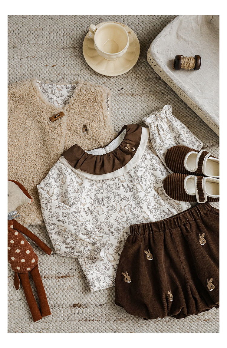 Wurib 소녀의 고급 벨벳 새싹 반바지 가을 어린이 장난기 귀여운 섬세한 솔리드 라인 편안한 바지