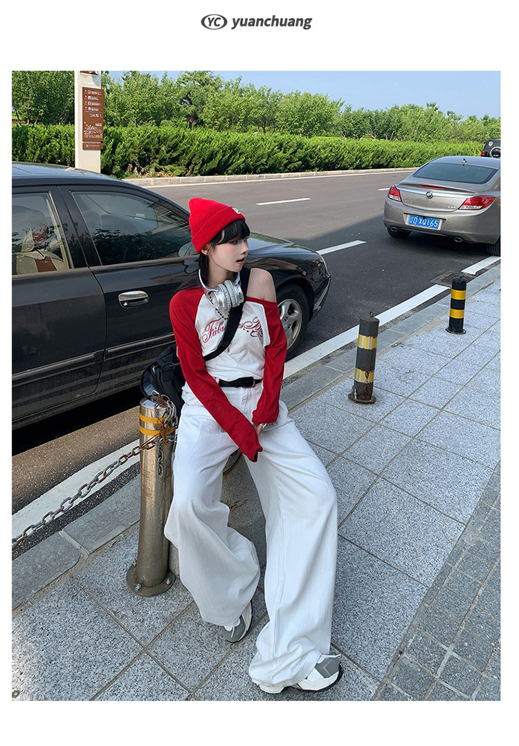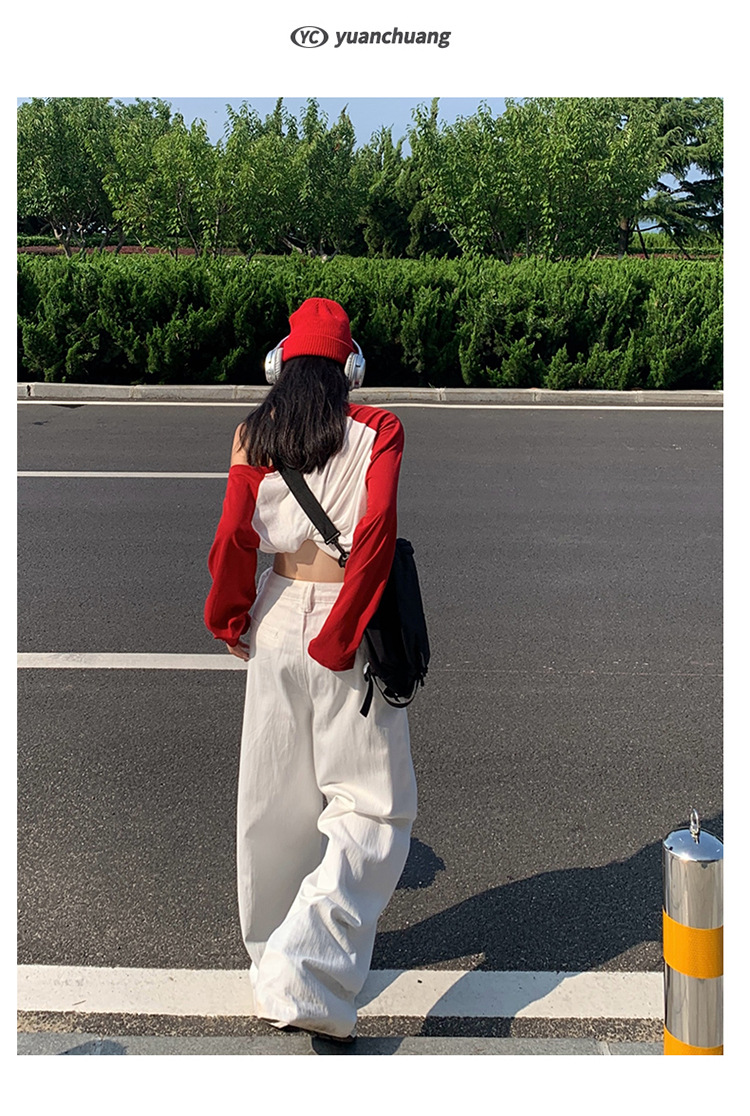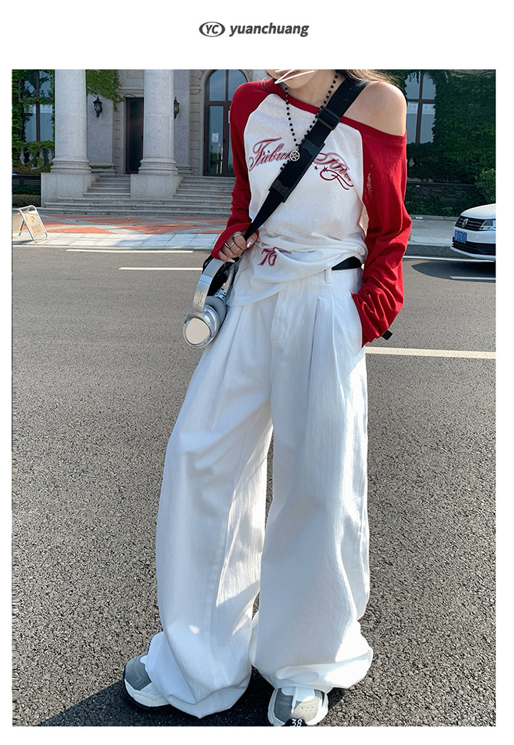 YC & 2 컬러 레트로 높은 허리 느슨한 넓은 다리 바지 드레이프 주름 조커 슬림 스트레이트 청바지 여성 초가을스토어 가기