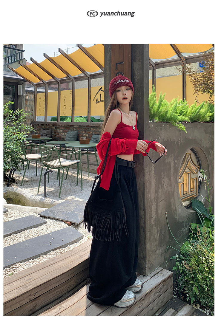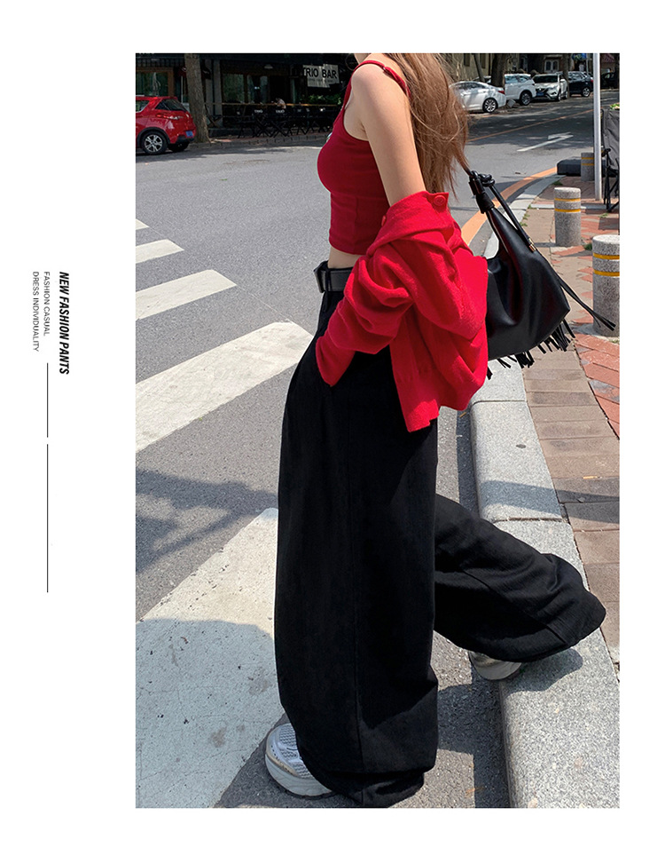 YC & 2 컬러 레트로 높은 허리 느슨한 넓은 다리 바지 드레이프 주름 조커 슬림 스트레이트 청바지 여성 초가을