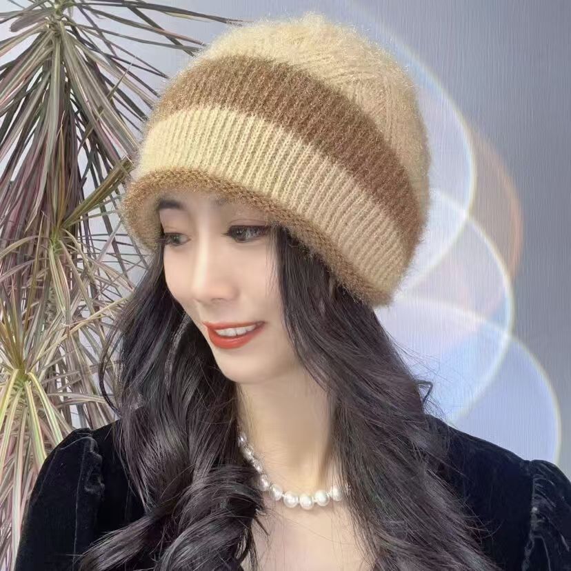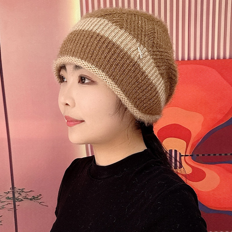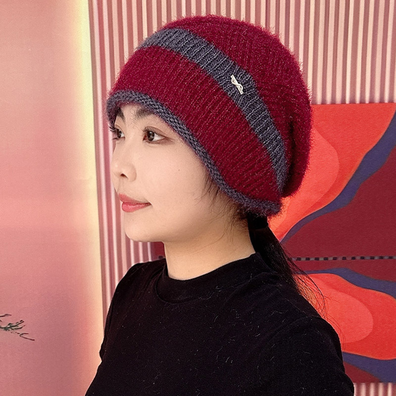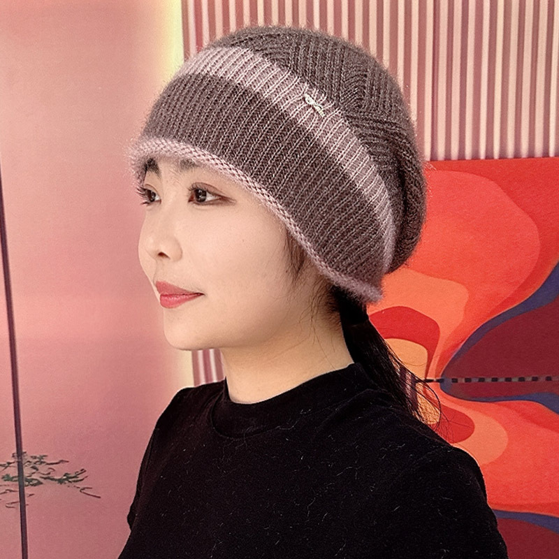 겨울 새로운 두꺼운 따뜻한 탄성 여성의 니트 모자 다람쥐 벨벳 흰 머리카락을위한 중년 양모 모자스토어 가기