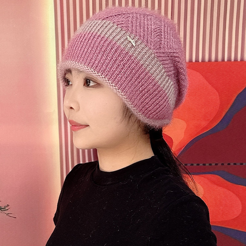 겨울 새로운 두꺼운 따뜻한 탄성 여성의 니트 모자 다람쥐 벨벳 흰 머리카락을위한 중년 양모 모자