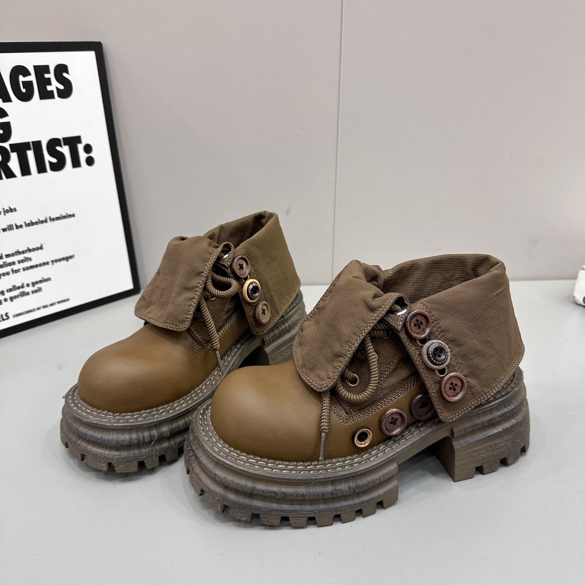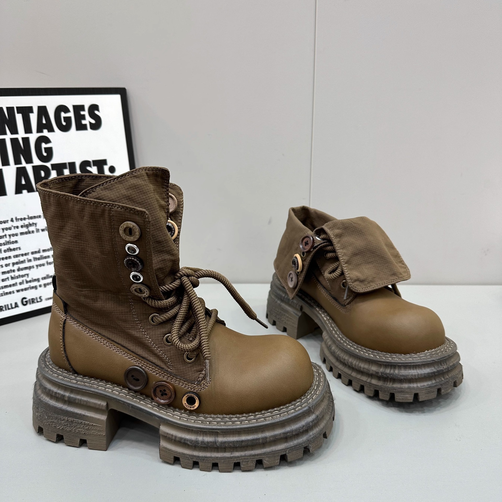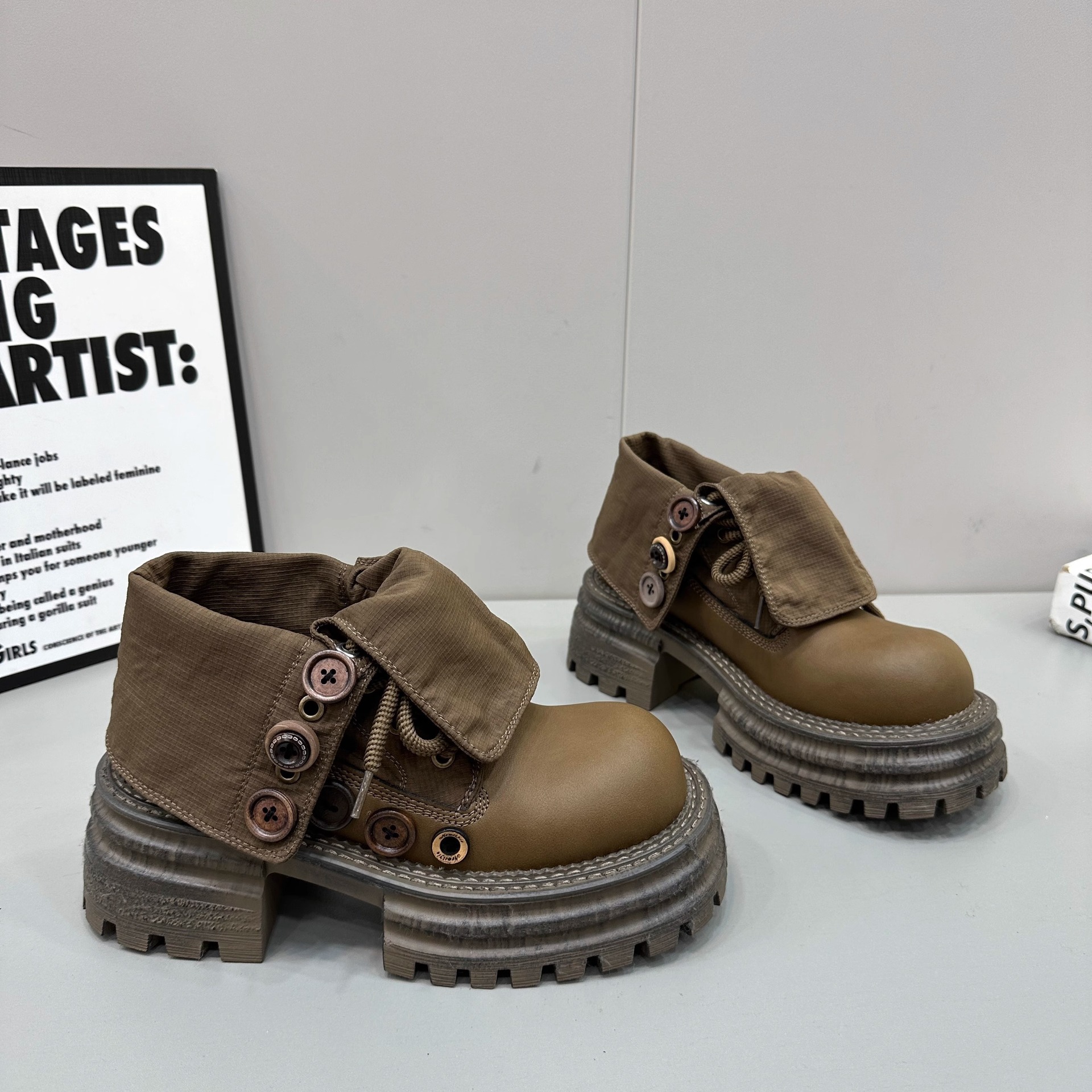 2024 년 가을 새로운 영국 스타일 마틴 부츠 여자 유럽 역 두꺼운 밑창 독특한 올 매치 캐주얼 첼시 발목 부츠