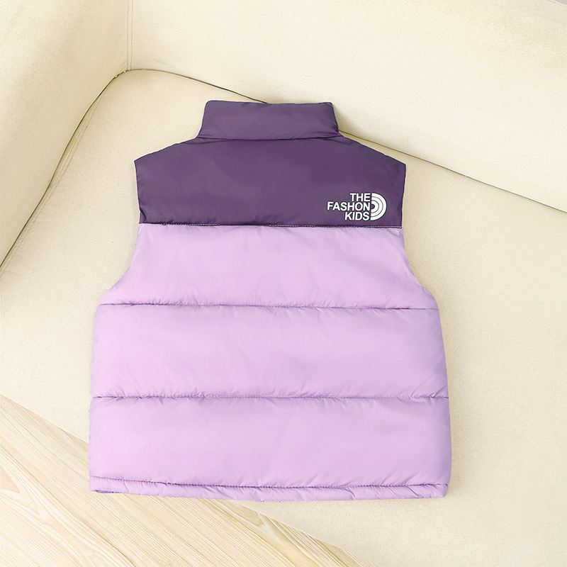 25 새로운 가을, 겨울 어린이 컬러 블록 다운 코튼 스탠드 업 칼라 조끼 소년과 소녀 중형 및 대형 어린이 베이비 다용도 조끼스토어 가기