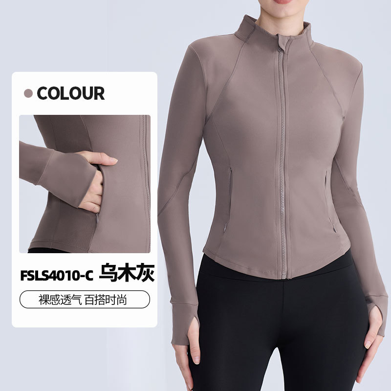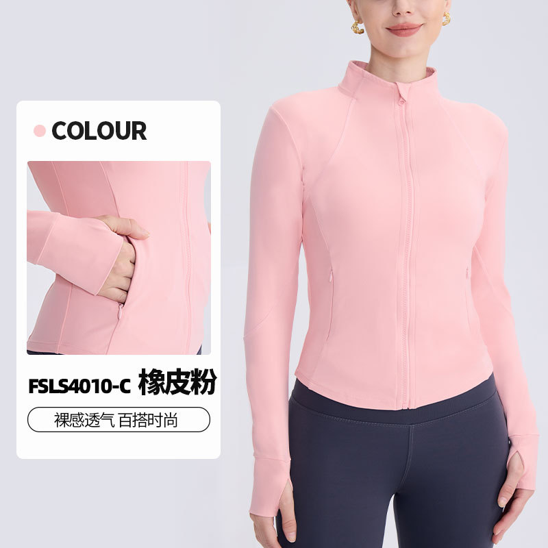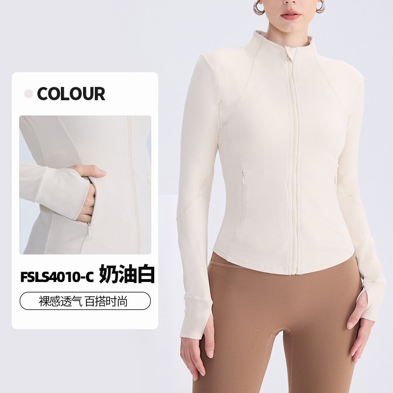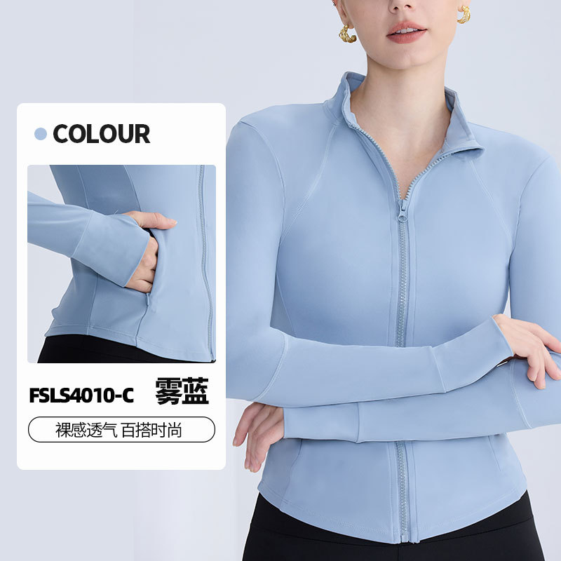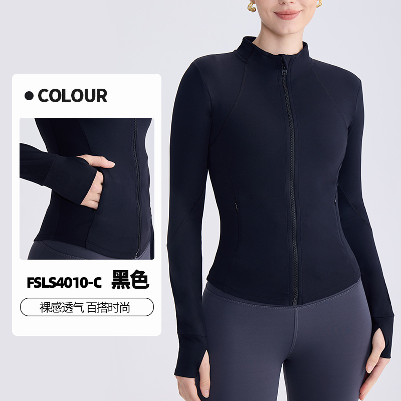 LULU 동일 스타일 벌거 벗은 칼라 지퍼 요가 세트 여성 슬리밍 통기성 타이트 퀵 건조 탑 러닝 피트니스 재킷스토어 가기