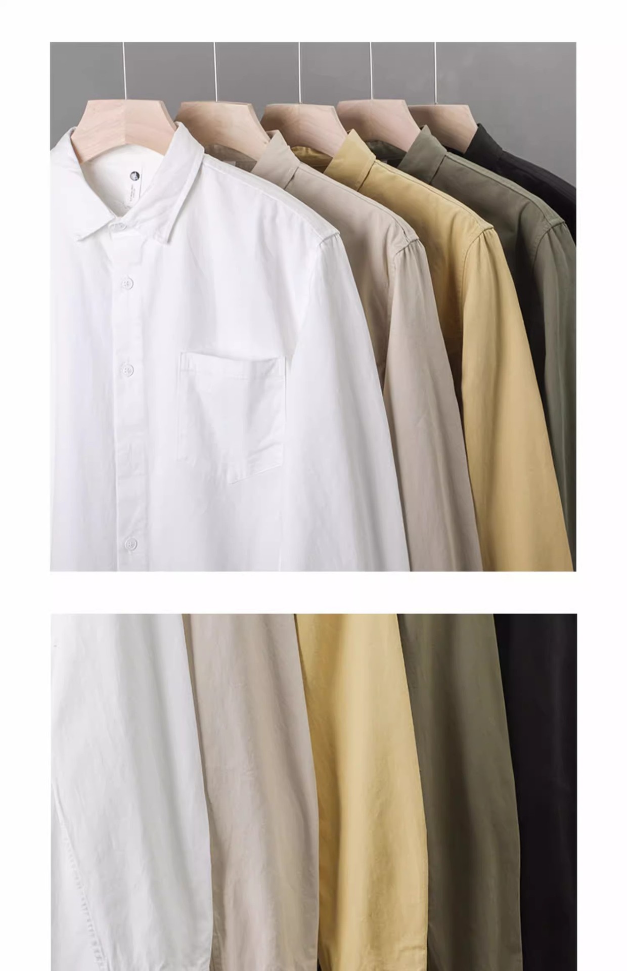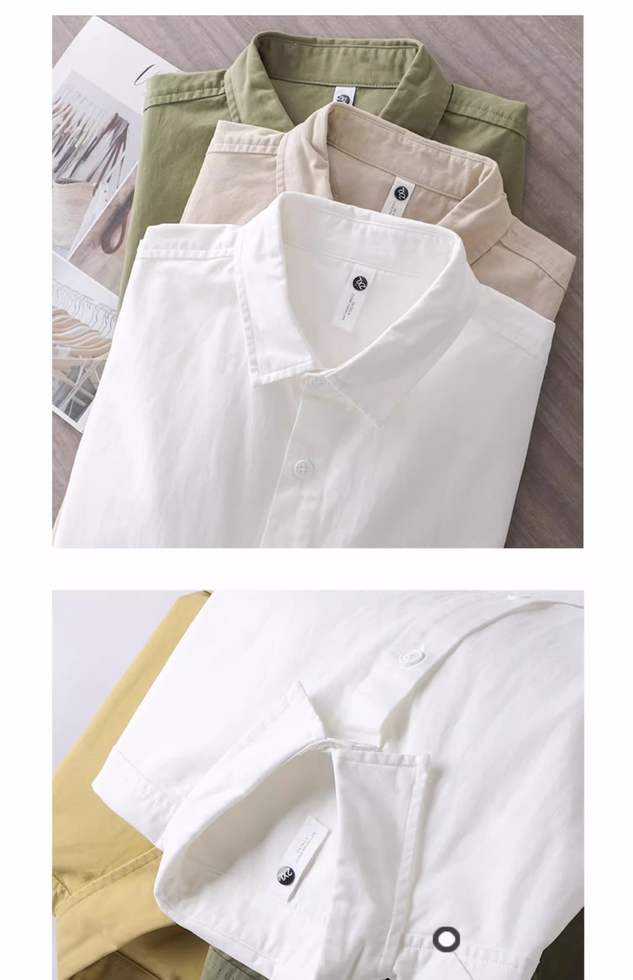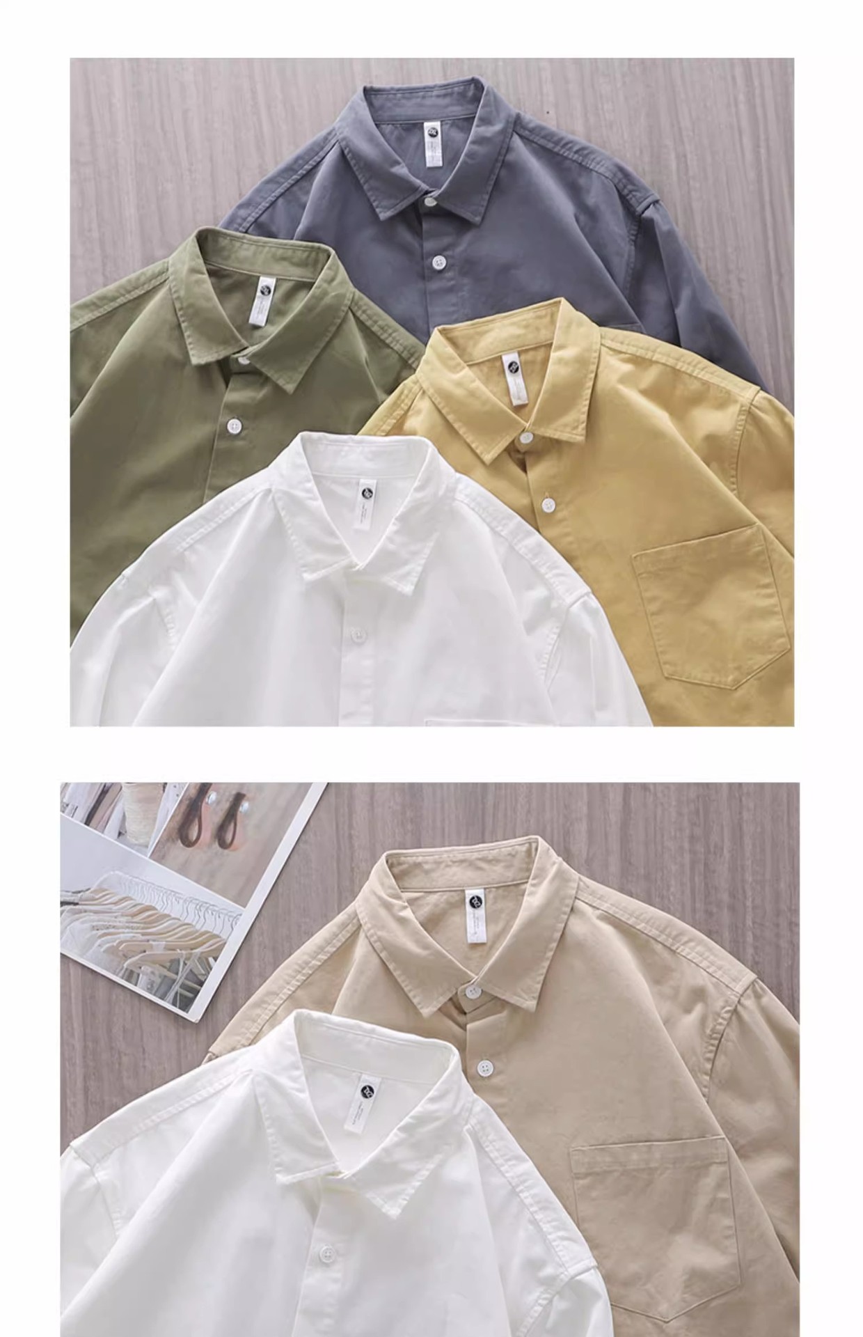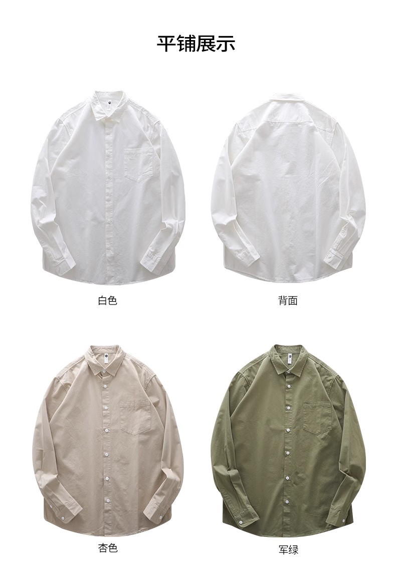 가을 남성용 미국 헤비급 긴팔 셔츠, 루즈하고 고급스러운 순면 인치 셔츠, 단색 흰색 라펠 셔츠 재킷스토어 가기