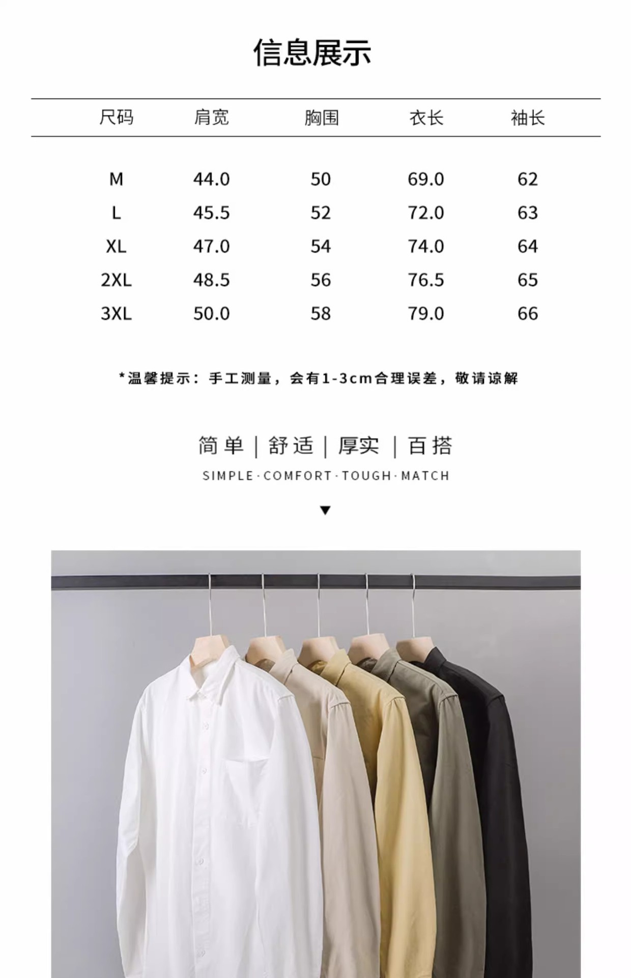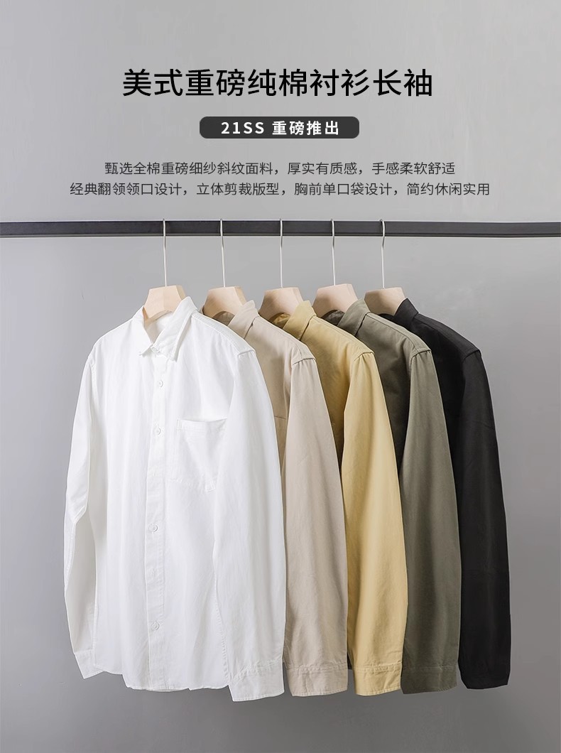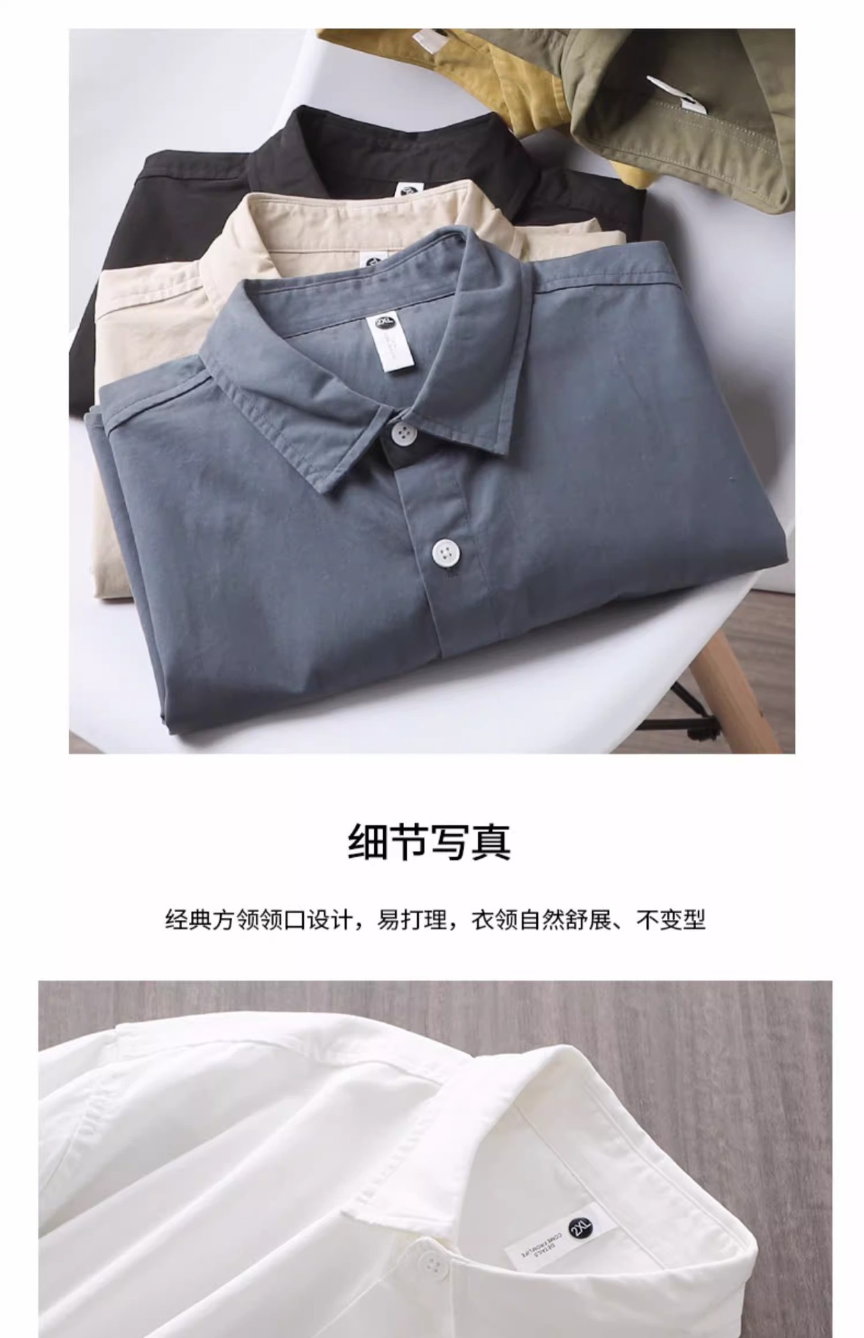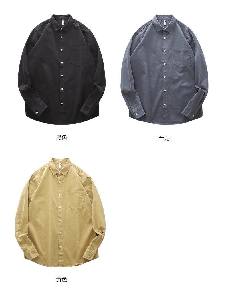 가을 남성용 미국 헤비급 긴팔 셔츠, 루즈하고 고급스러운 순면 인치 셔츠, 단색 흰색 라펠 셔츠 재킷스토어 가기