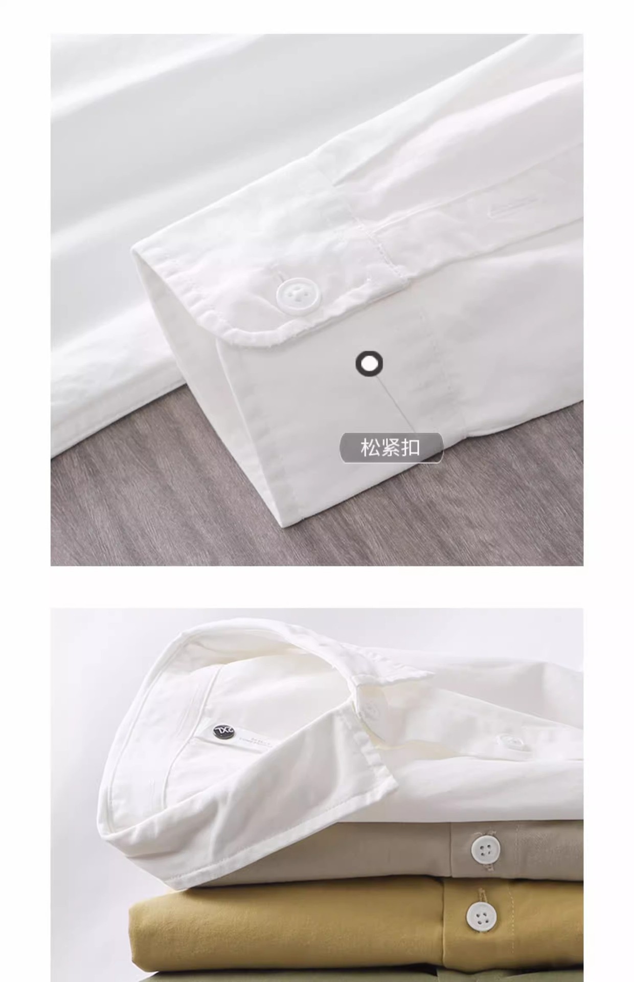 가을 남성용 미국 헤비급 긴팔 셔츠, 루즈하고 고급스러운 순면 인치 셔츠, 단색 흰색 라펠 셔츠 재킷