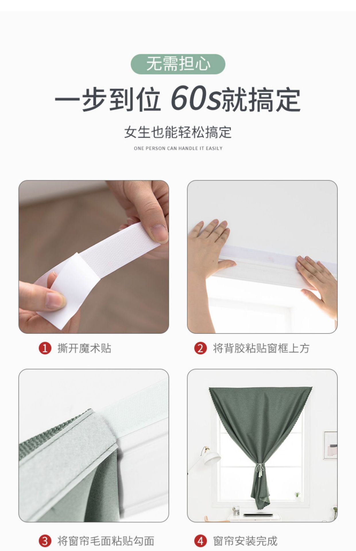 벨크로 커튼 자체 접착 펀치 무료 간단한 설치 전체 음영 침실 베이 창 음영 2024 새로운스토어 가기