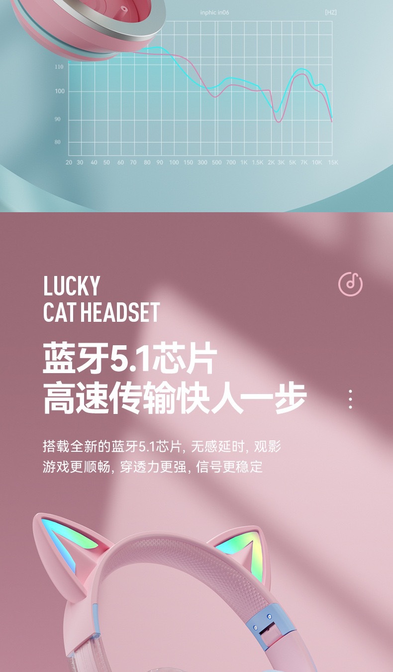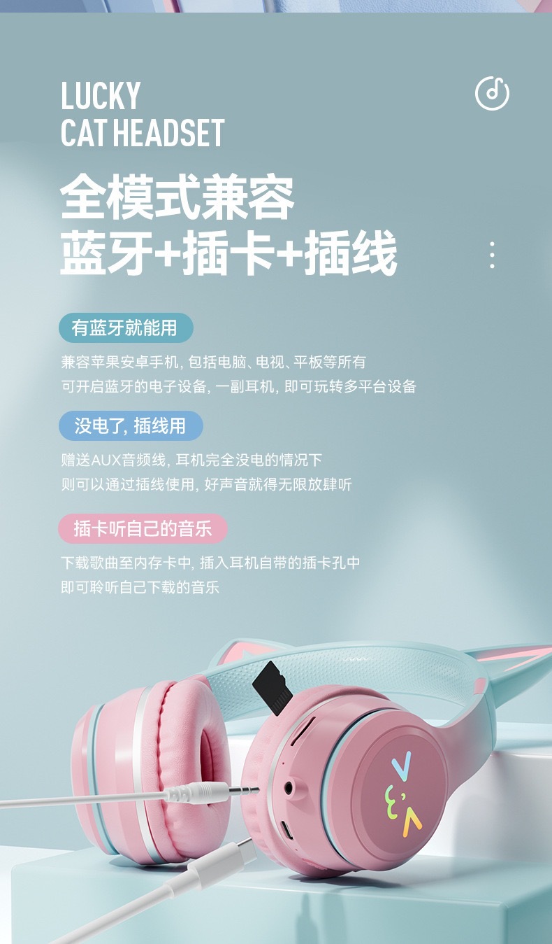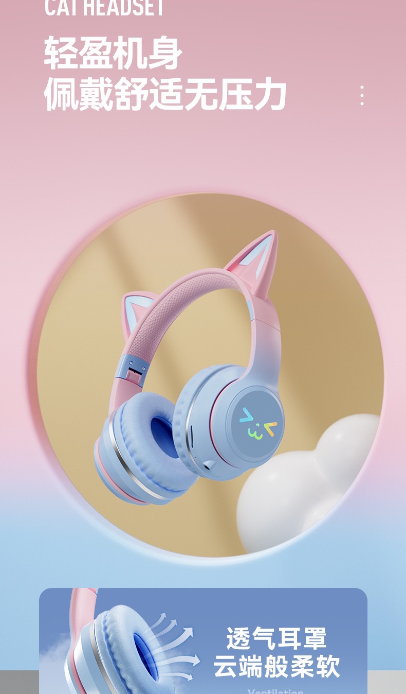 국경 간 새로운 개인 모델 그라디언트 고양이 귀 블루투스 헤드셋 휴대 전화 무선 게임 음악 헤드셋