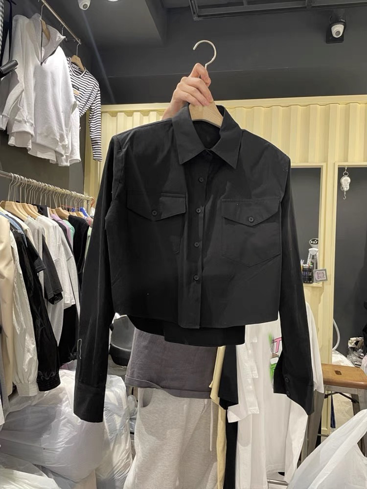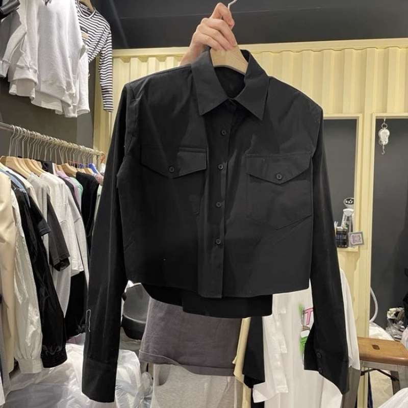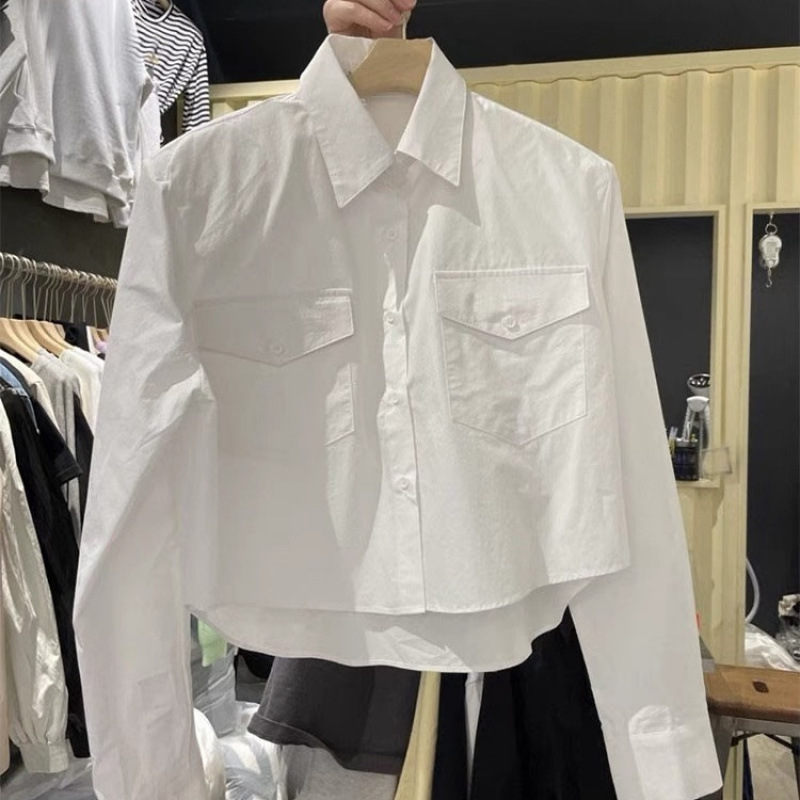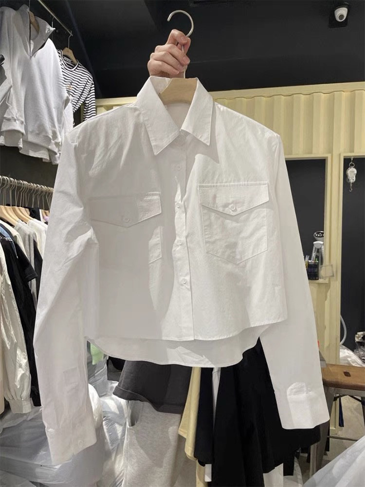 셔츠 여자 2024 년 이른 봄 새 싱글 브레스트 폴로 칼라 솔리드 컬러 올 매치 캐주얼 긴팔 셔츠 여성용 쇼트 탑