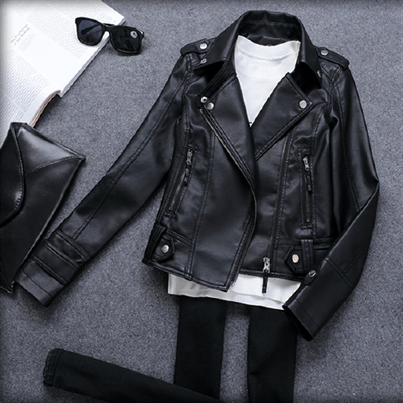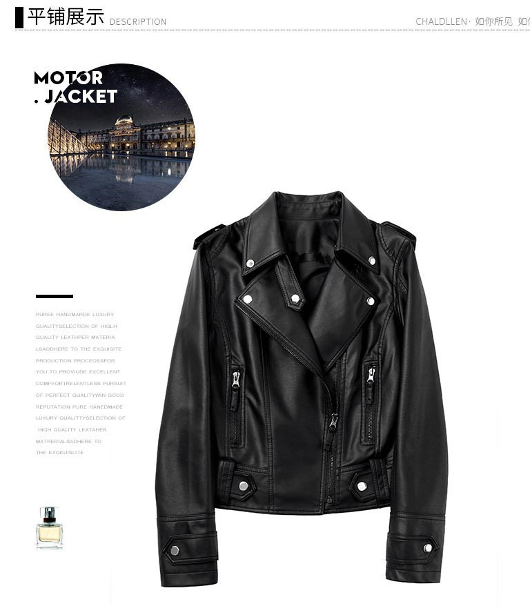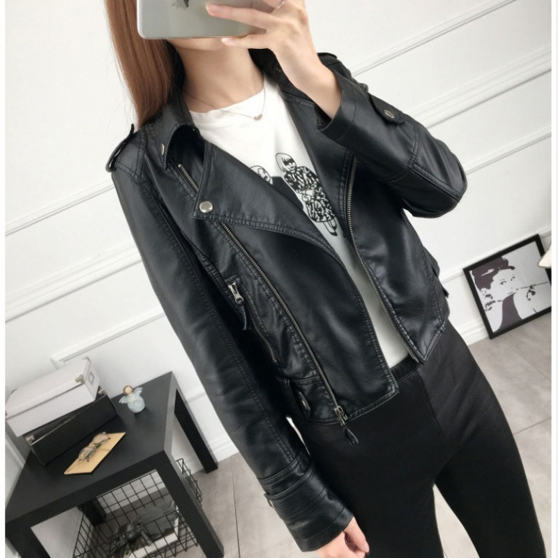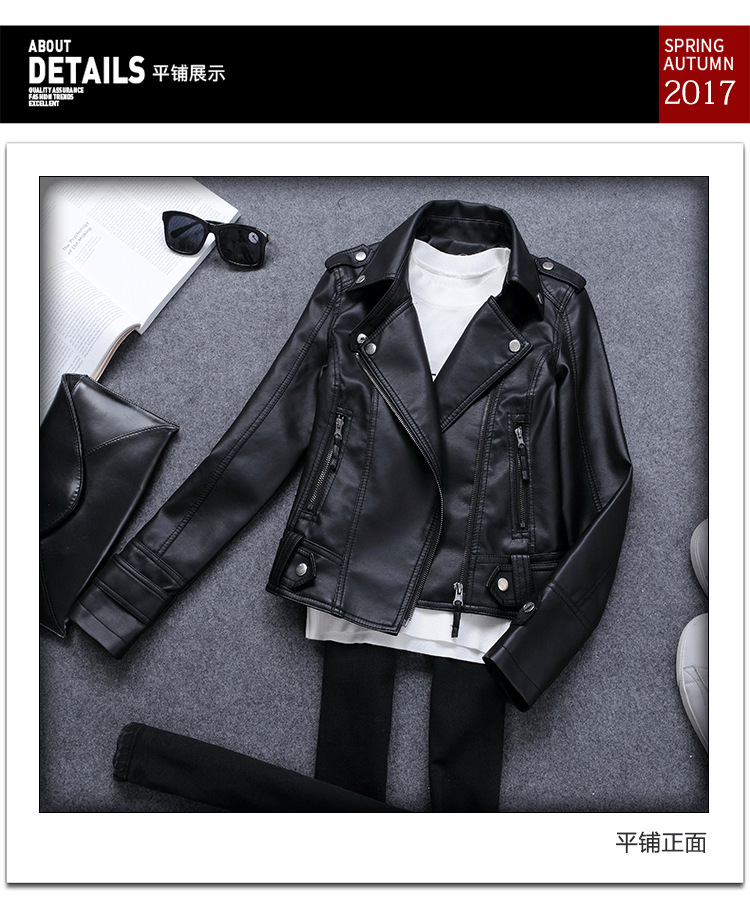 가죽 여성의 짧은 봄과 가을 한국 스타일 슬림 핏 오토바이 PU 가죽 자켓 플러스 사이즈 학생 작은 옷깃 자켓스토어 가기