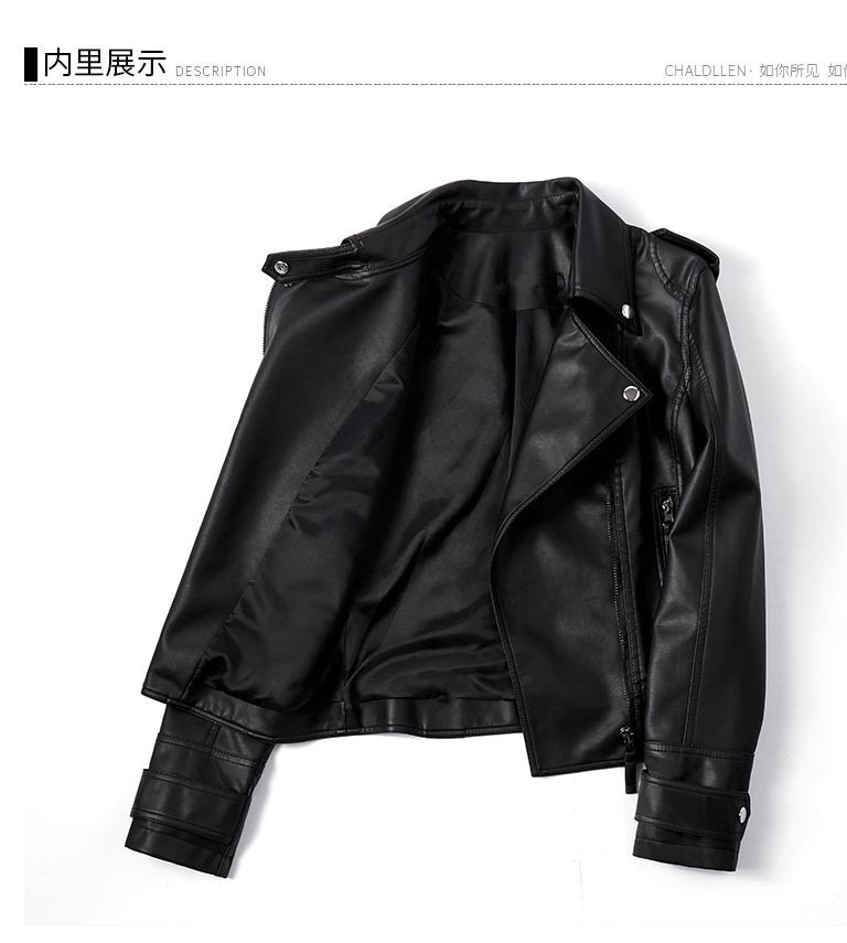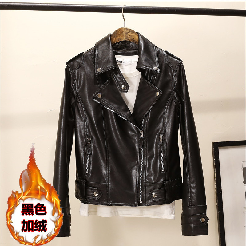 가죽 여성의 짧은 봄과 가을 한국 스타일 슬림 핏 오토바이 PU 가죽 자켓 플러스 사이즈 학생 작은 옷깃 자켓