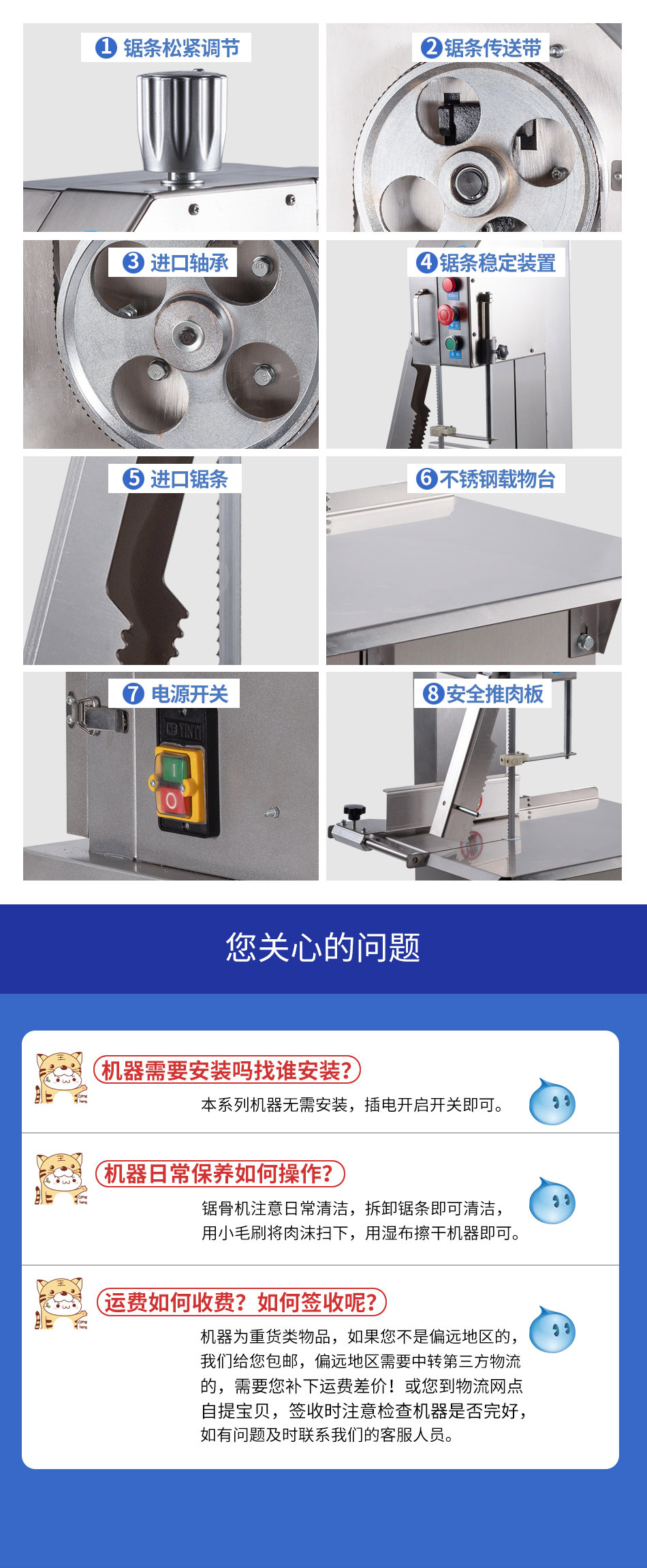 • 수직형 J210B 안전 슬라이딩 테이블에는 톱 3개가 포함되어 있습니다.
