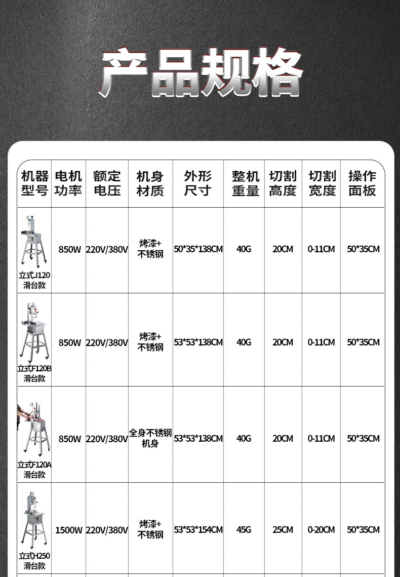 • F250A 전체 스테인레스 스틸 + 특허 플립업 테이블에는 톱날 4개가 포함되어 있습니다.