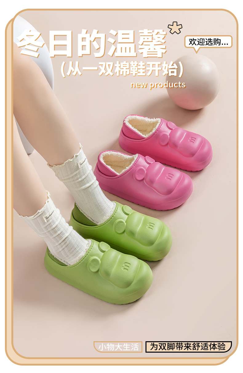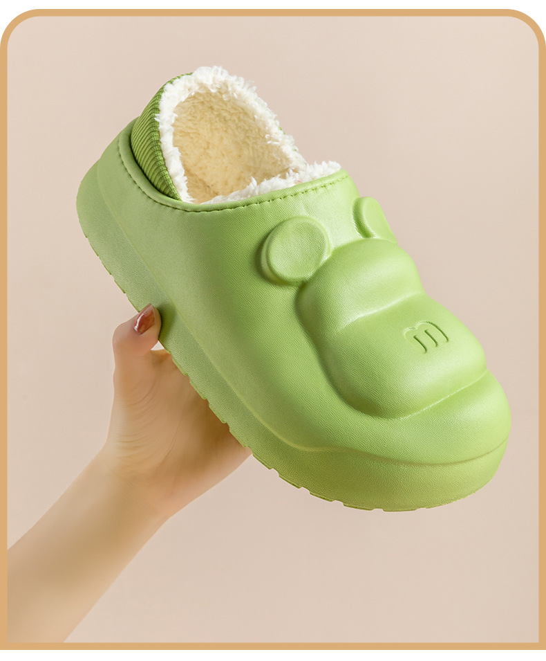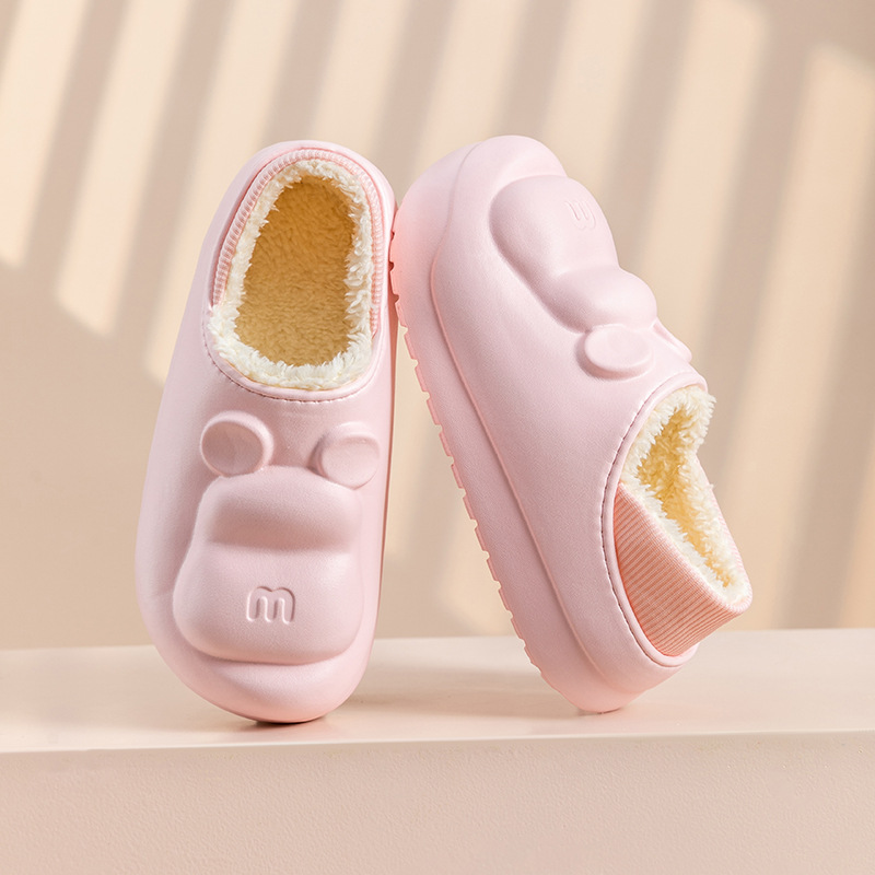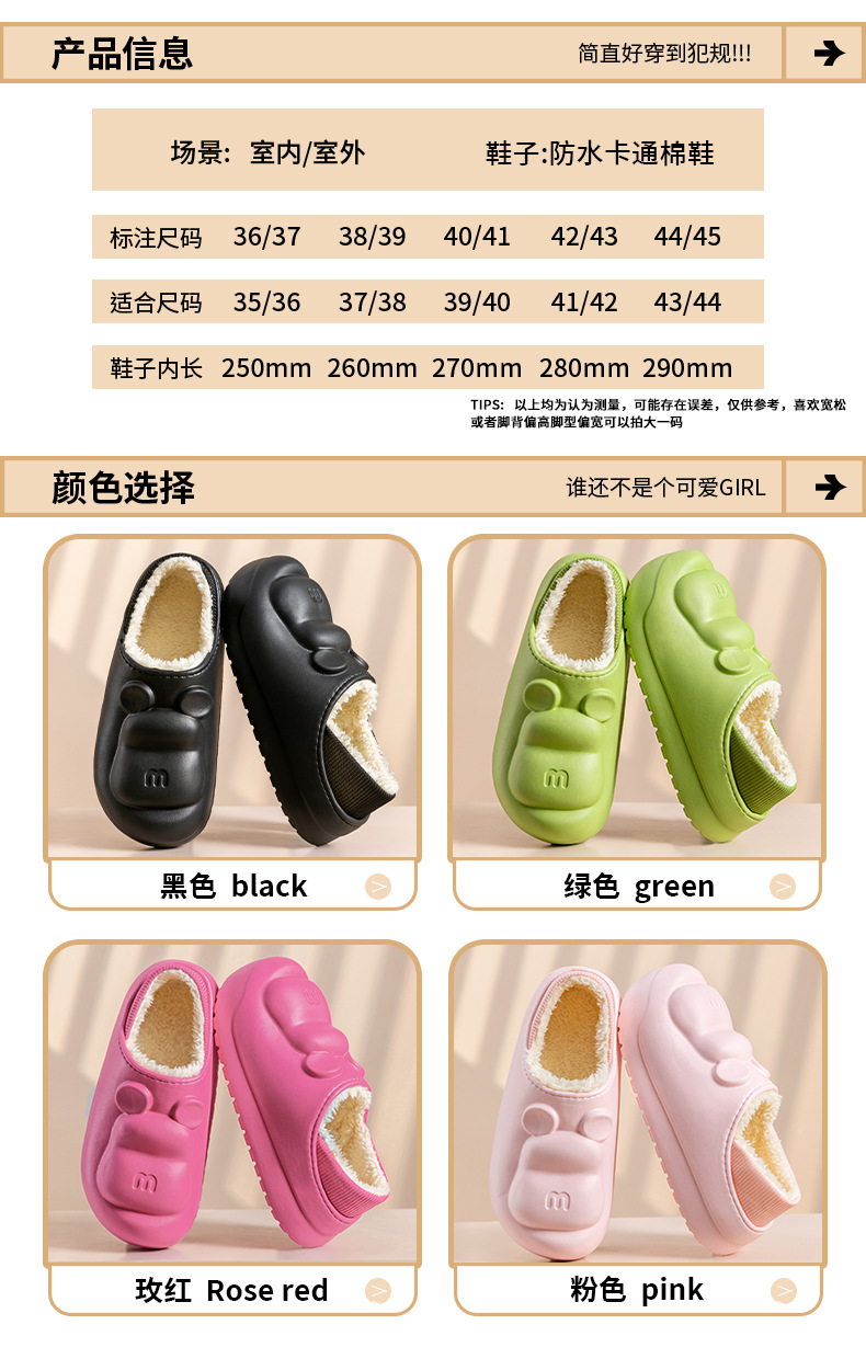 새로운 만화 면화 슬리퍼 방수 및 더러운 저항하는 가정용 면화 신발 여성 두꺼운 밑창 기모 코튼 신발 겨울 따뜻하고 미끄럼 방지 외부 착용스토어 가기
