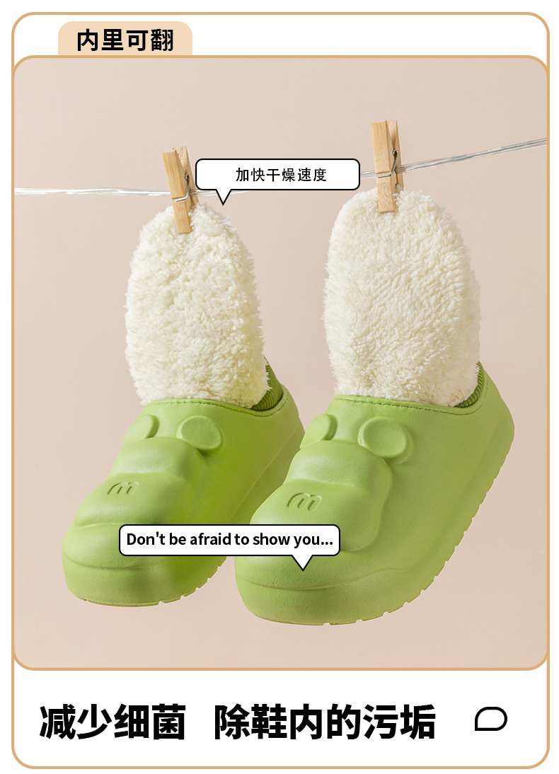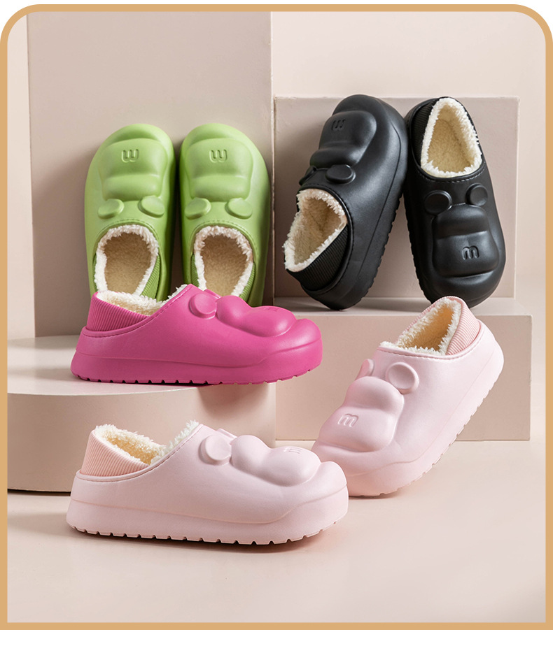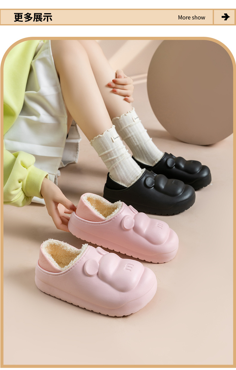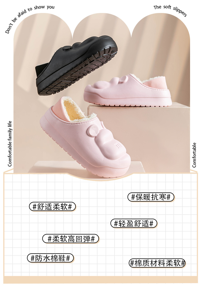 새로운 만화 면화 슬리퍼 방수 및 더러운 저항하는 가정용 면화 신발 여성 두꺼운 밑창 기모 코튼 신발 겨울 따뜻하고 미끄럼 방지 외부 착용스토어 가기