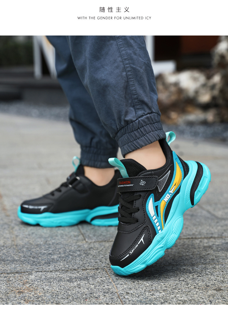 Di Zi Mi Xiong 어린이 신발 운동화 2024 새로운 가을 가죽 방수 소년 운동화 트렌디스토어 가기