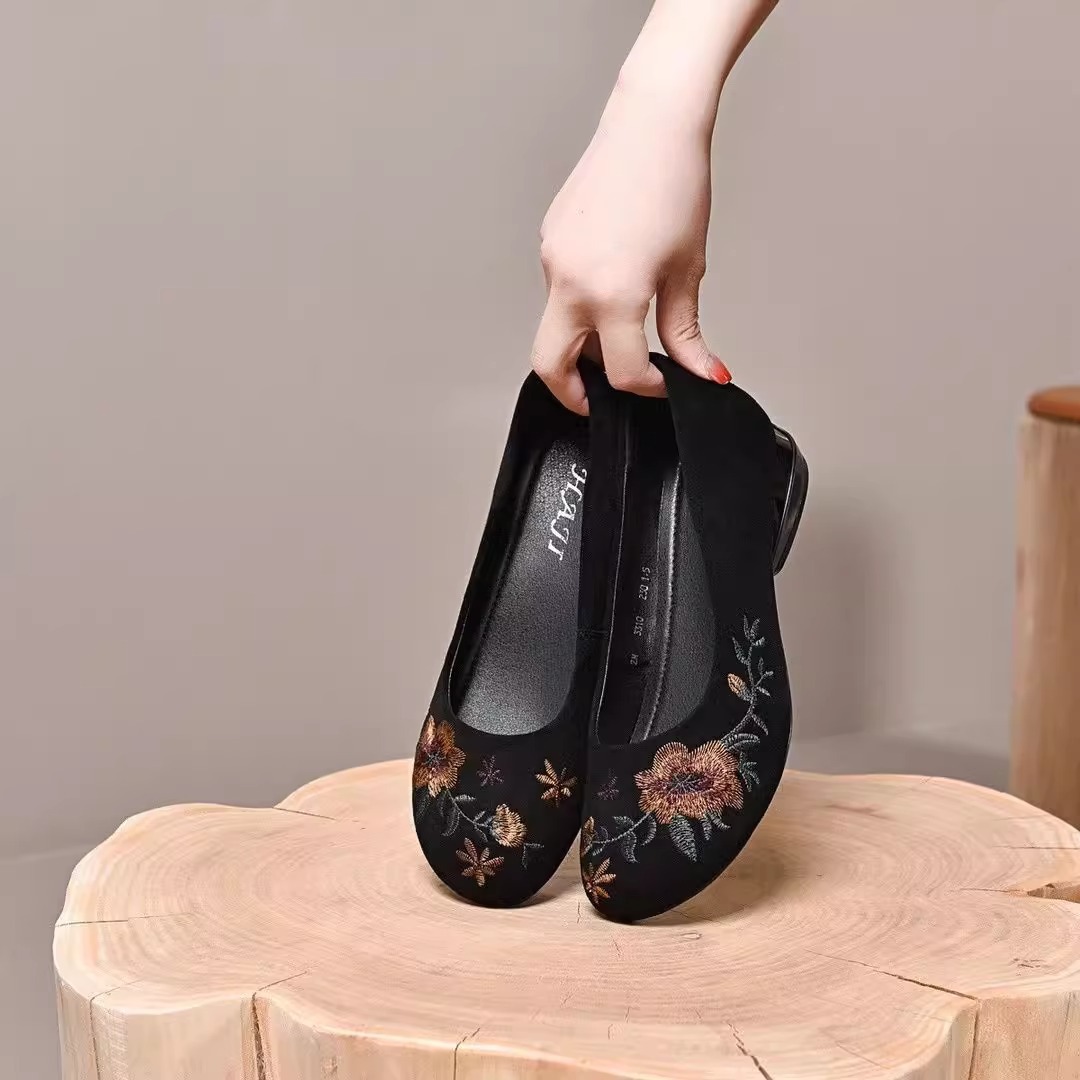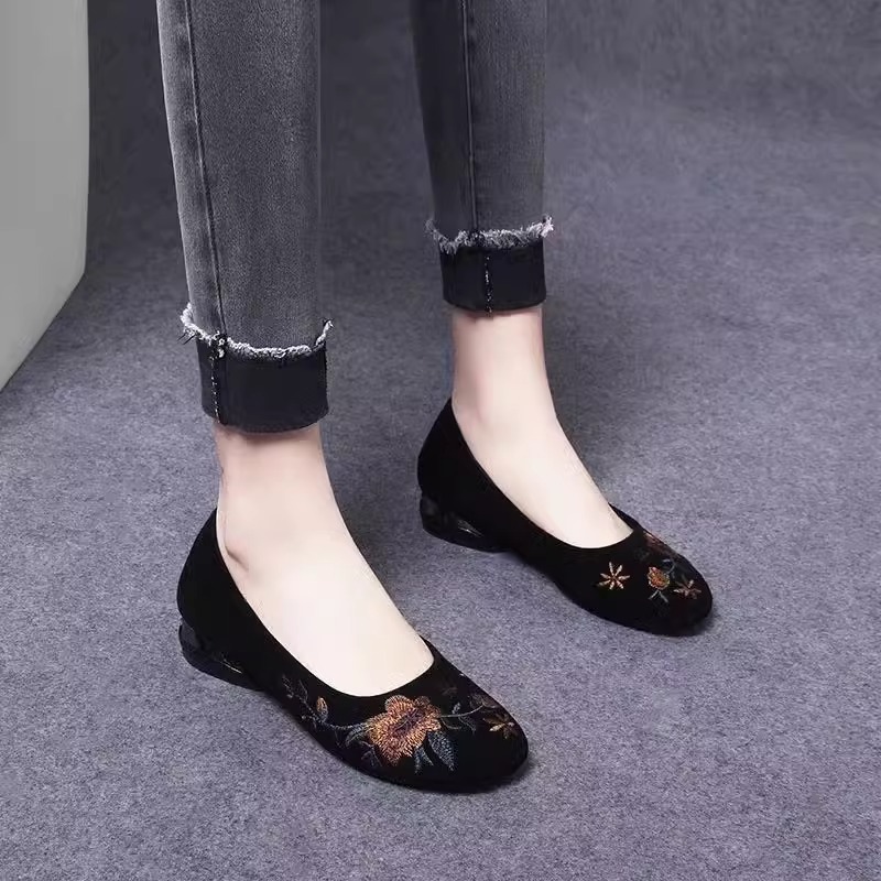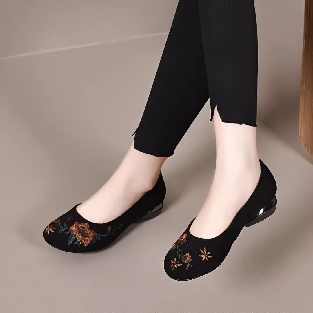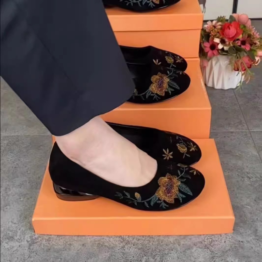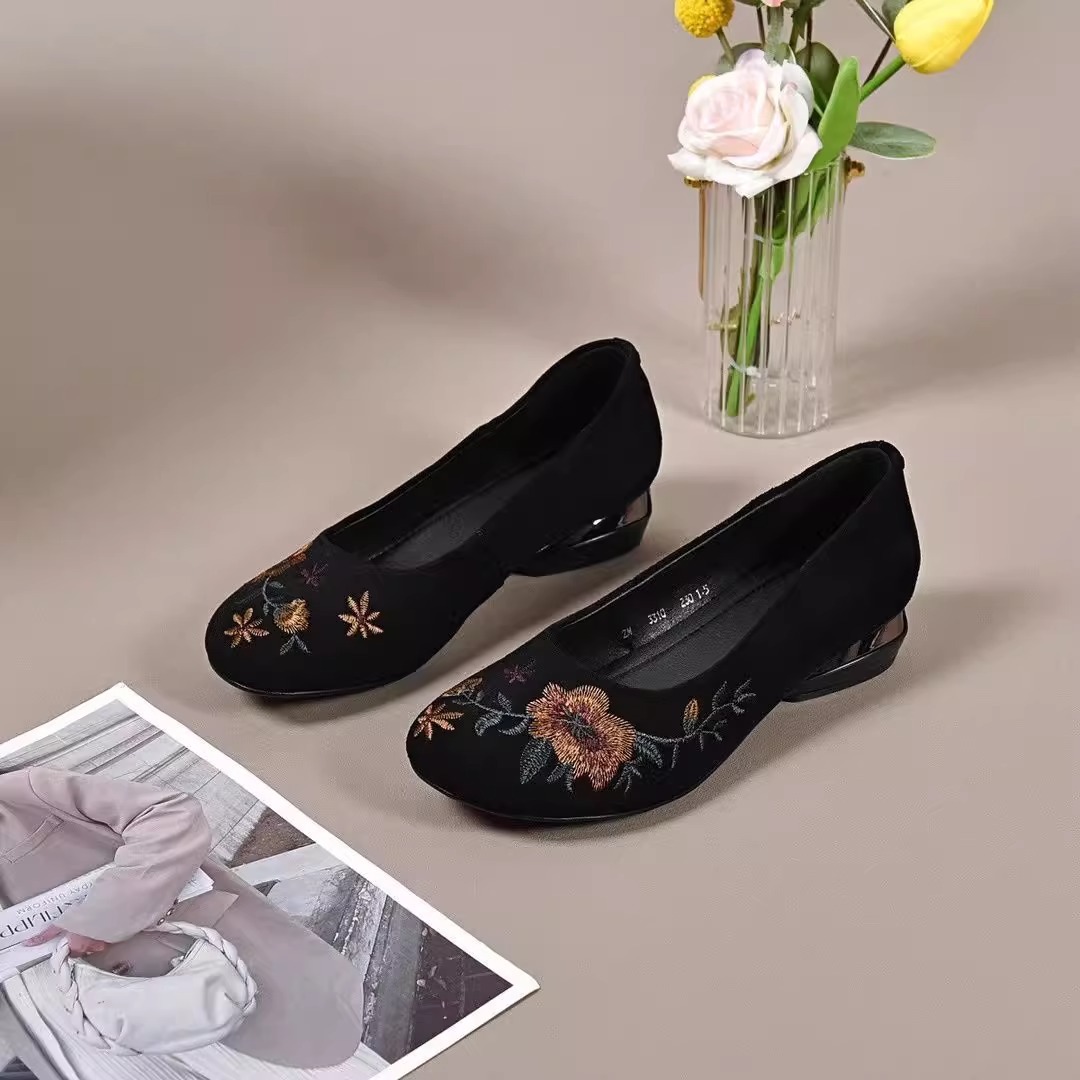2025년 봄 여름 신상 여성 민족풍 단화, 낮은 굽의 레트로 자수 슬립온 편안한 여성화스토어 가기
