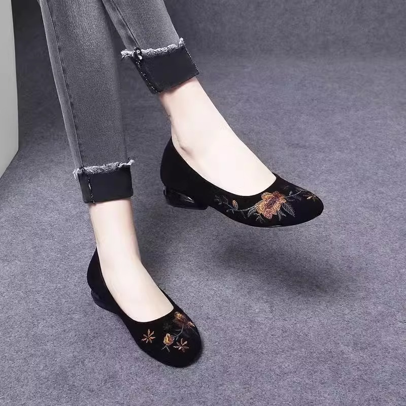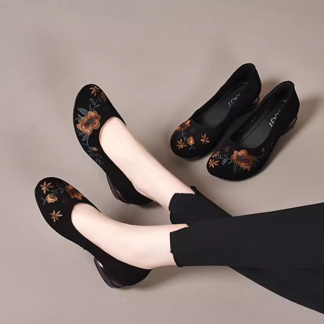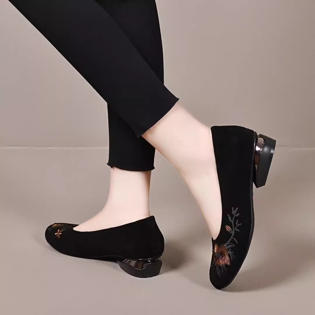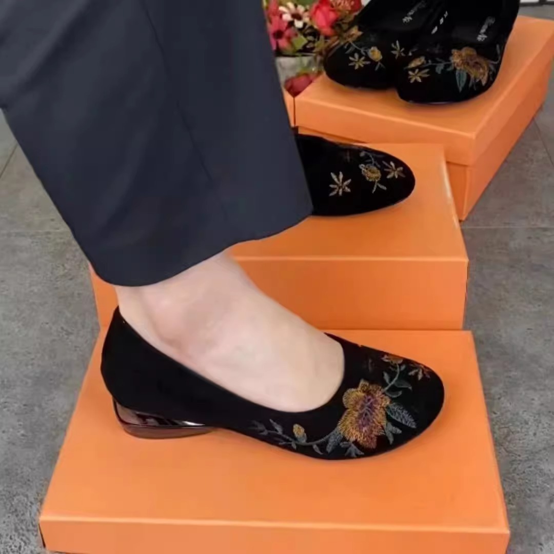 2025년 봄 여름 신상 여성 민족풍 단화, 낮은 굽의 레트로 자수 슬립온 편안한 여성화스토어 가기
