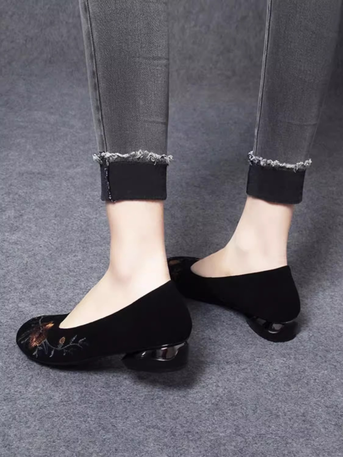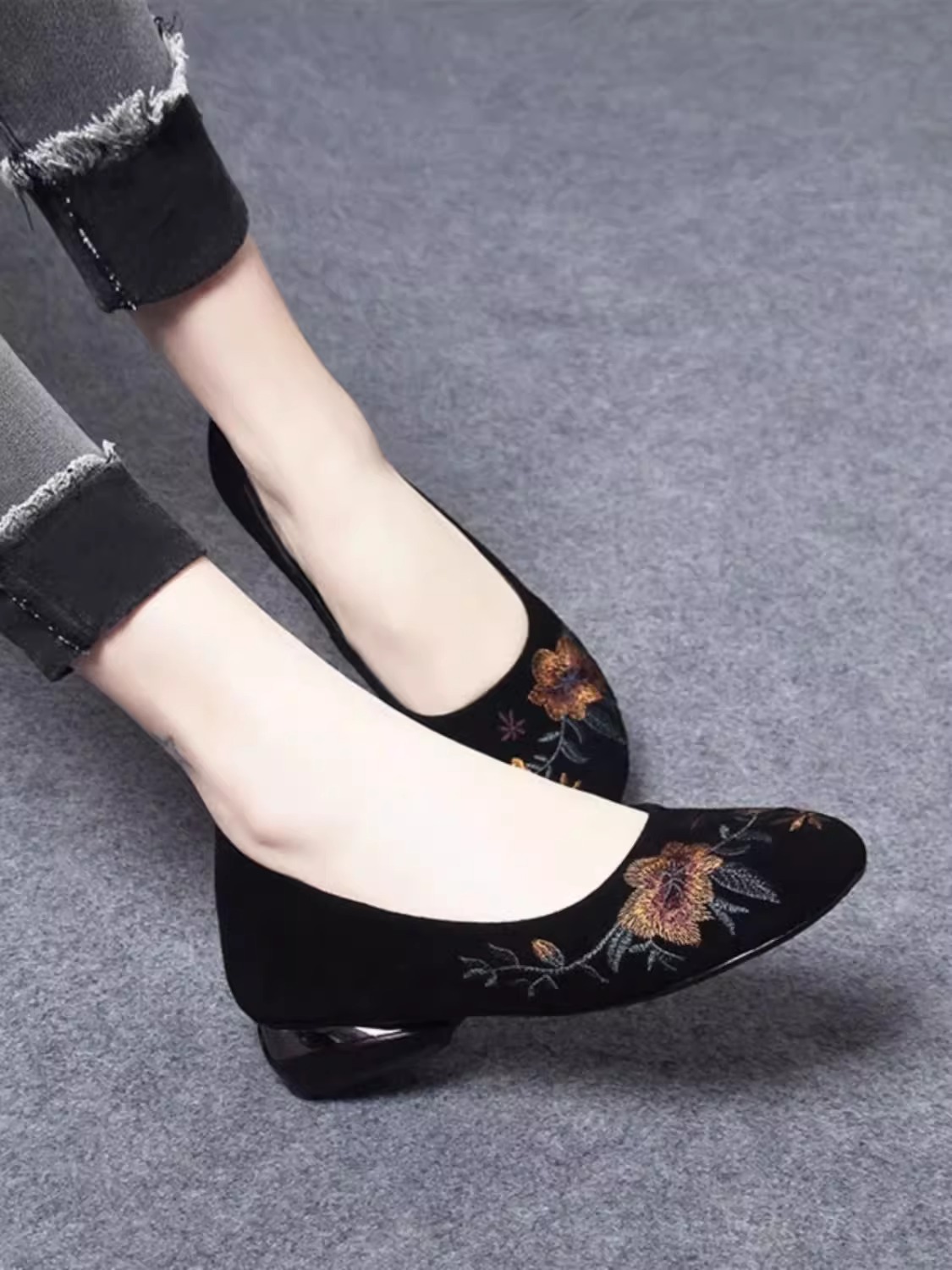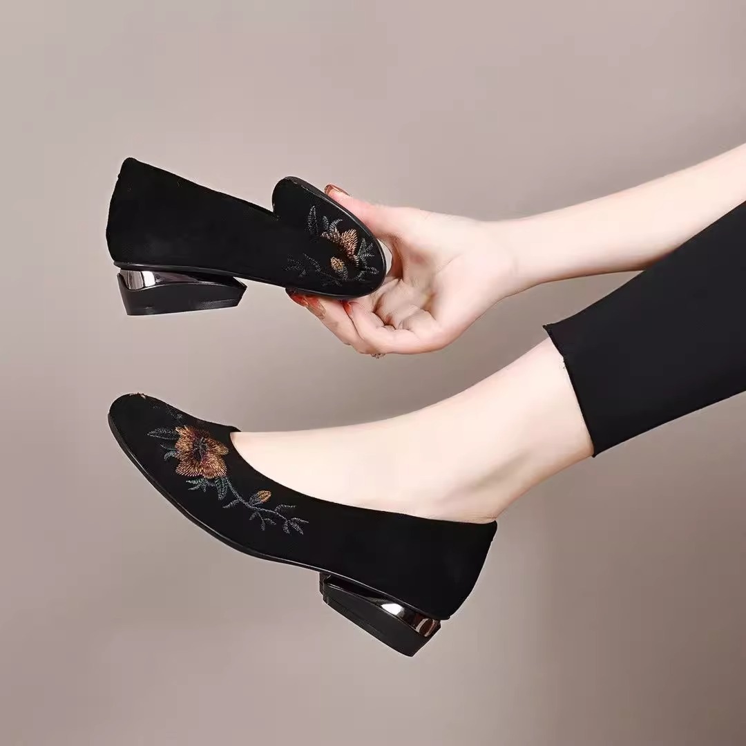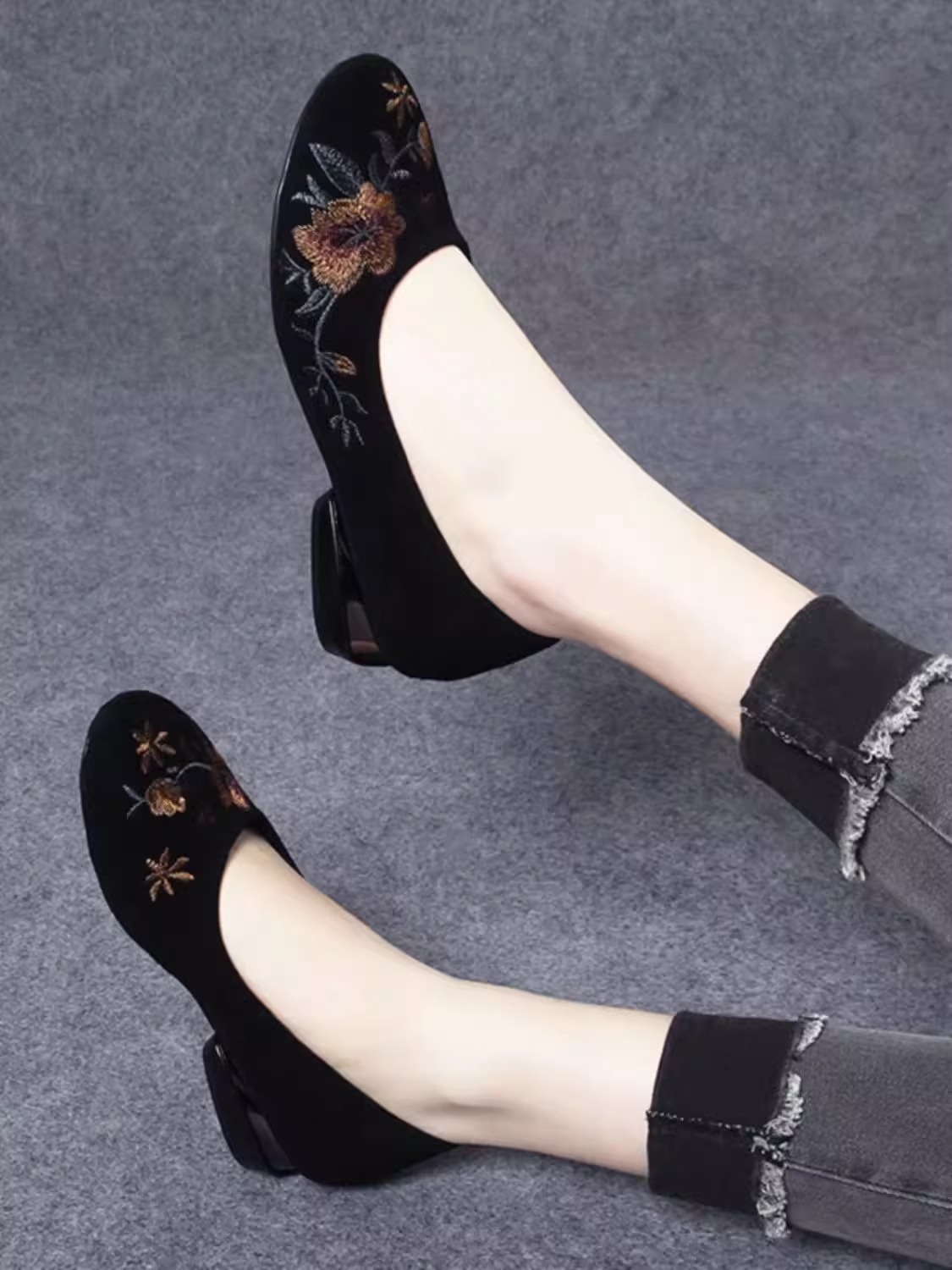 2025년 봄 여름 신상 여성 민족풍 단화, 낮은 굽의 레트로 자수 슬립온 편안한 여성화스토어 가기