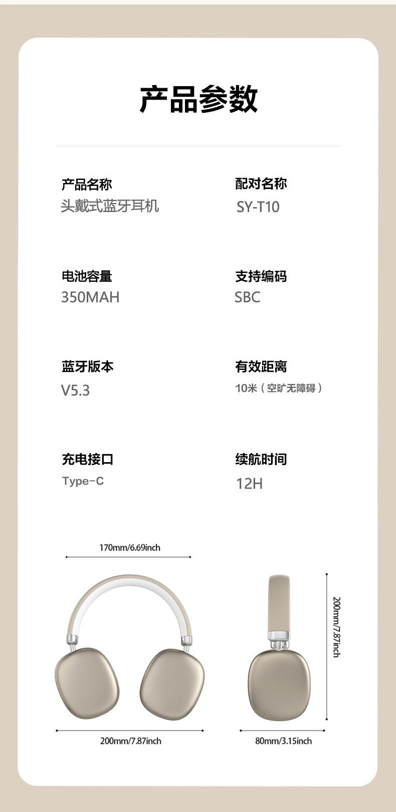 국경을 넘는 신제품 SY-T10 헤드셋 블루투스 이어폰, 매우 긴 배터리 수명, 게임 및 스포츠용 무선 헤드셋, 공장 도매