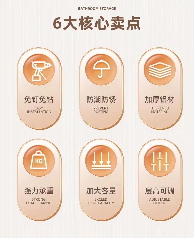 펀치없는 화장실 보관 랙 욕실 선반 화장실 화장실 세면대 공급 벽걸이 벽 보관 랙