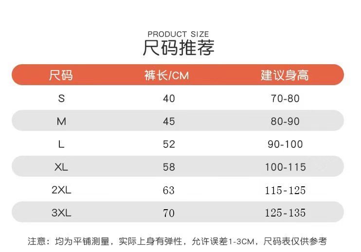 • 3XL 바지 길이 70, 신장 125-135에 적합