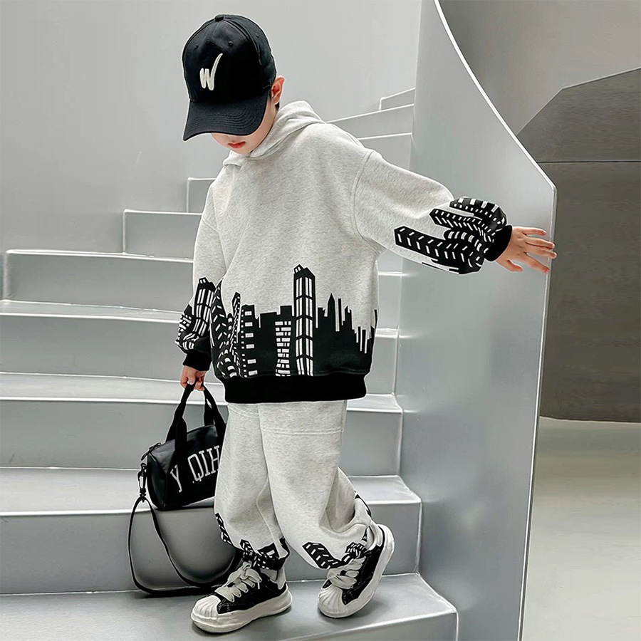 2024 뉴 보이즈의 봄과 가을 스포츠 스웨트 셔츠 바지 세트 중 큰 소년 가을 패션 투피스 세트스토어 가기